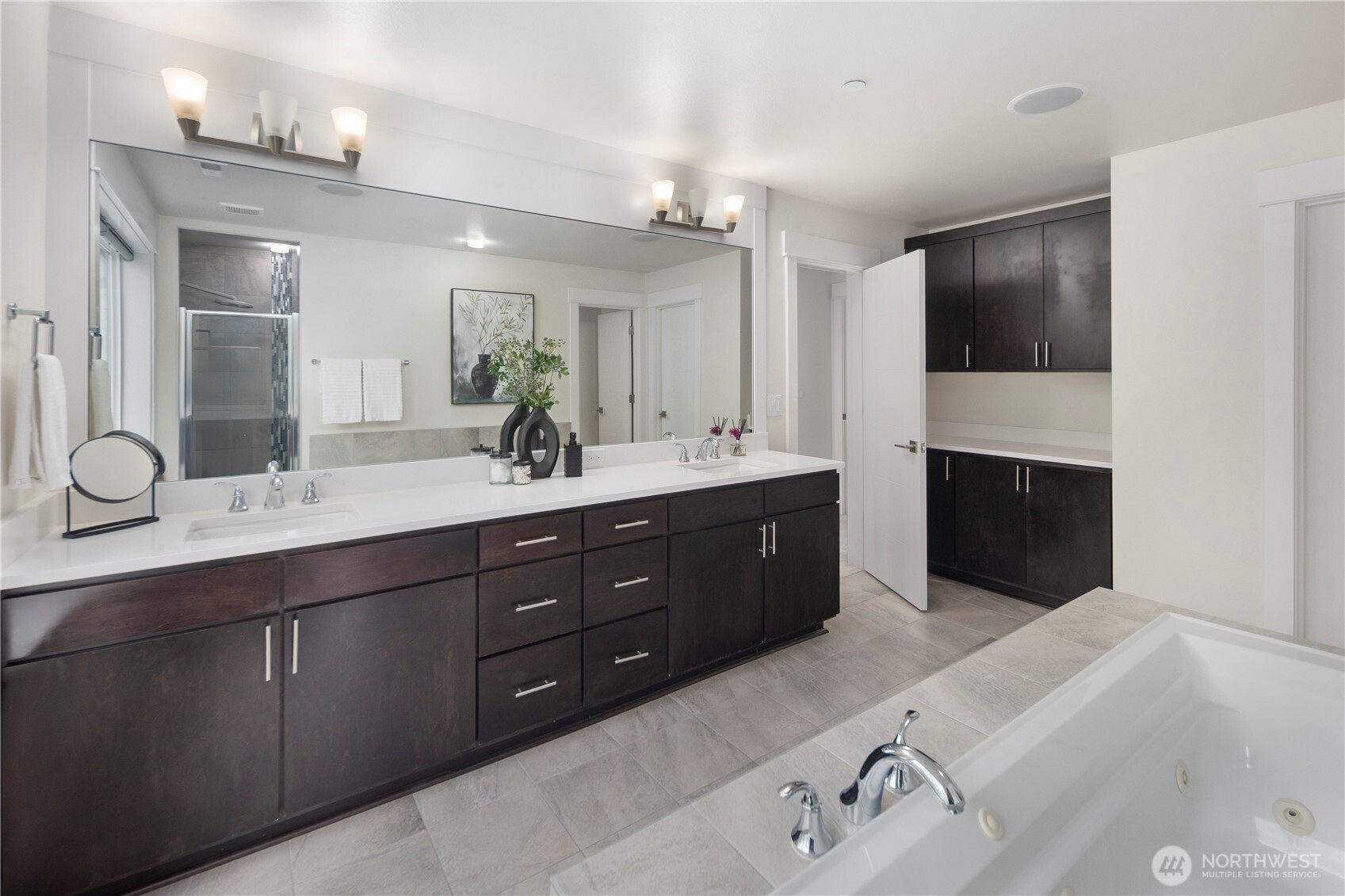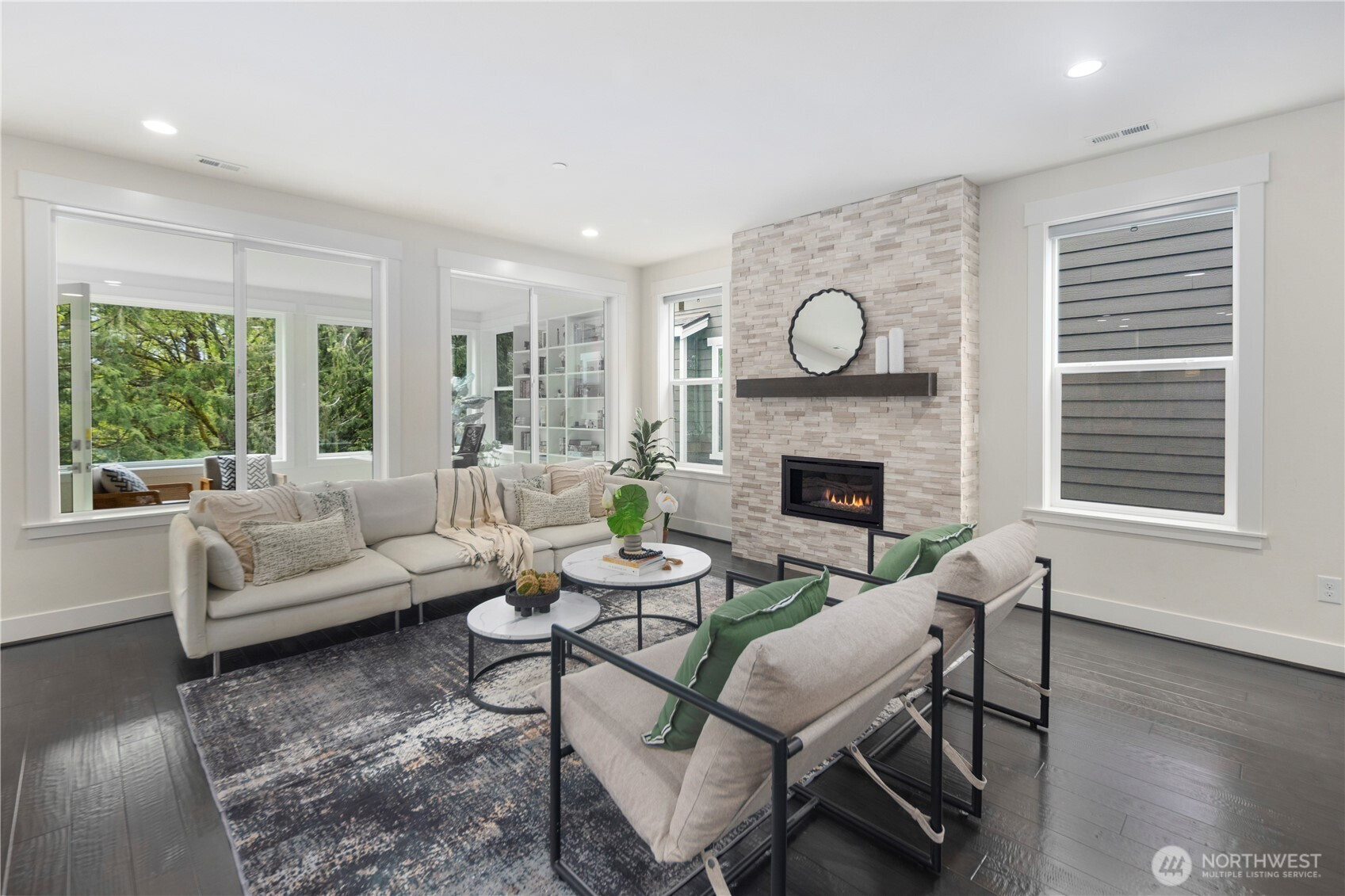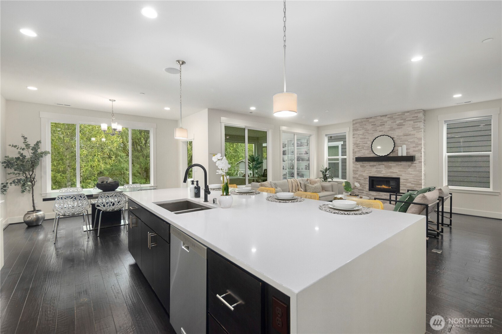 NORTH FACING. Tucked on the Sammamish Plateau, this home blends a calm, residential setting with standout improvements that elevate everyday living—featuring over $150K in upgrades. A permitted sunroom addition creates a light-filled retreat for morning coffee, plants, or a peaceful reading lounge, while the main living spaces offer an easy, welcoming flow for gatherings. The heart of the home is anchored by a sleek linear fireplace with a floating mantle and dramatic full-height surround, adding warmth and designer appeal. Thoughtful builder enhancements add polish throughout, including upgraded cabinetry, countertops, tile, and flooring, plus a canopy-style vent hood that gives the kitchen a clean, elevated look. Comfort and convenience are dialed in with air conditioning, a zoned heating system, and smart-home features. The garage is EV-ready with a 220V charging outlet, and a rear gas line makes outdoor hosting effortless. Storage is exceptional thanks to professionally installed Creative Closets organizers and a custom coat closet that keeps daily life beautifully streamlined. Enjoy quick access to Evans Creek Preserve, Pine Lake Park, and Lake Sammamish State Park, plus nearby groceries, cafés, fitness studios, and shopping/dining around Sammamish, Redmond, and Issaquah. Located in Lake Washington School Disctric Inglewood Junior High (9/10), Eastlake High School (10/10).