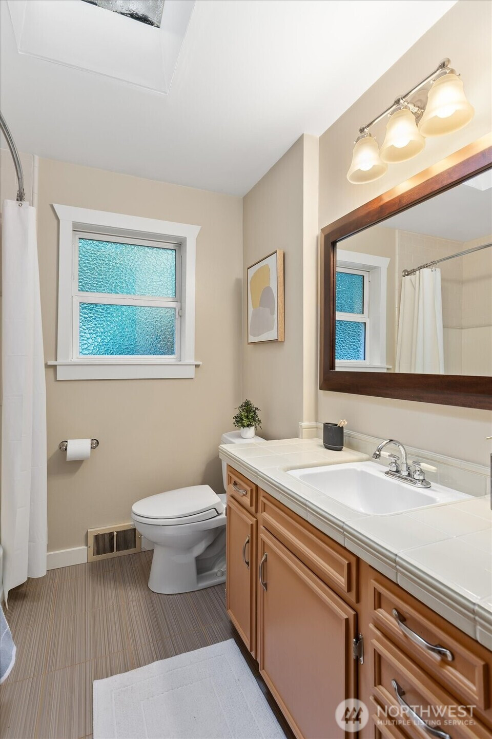 North Beach rambler with finished, daylight basement has been lovingly maintained and updated. Located on a quiet dead end street surrounded by beautiful PNW trees and shrubs. Mid century style offers open living/dining rooms with wood fireplace and hardwood floors. The nice sized kitchen has butcher block counters and cozy eat in nook overlooking the tranquil setting to relax amongst evergreens/ravine. Main floor includes 2 bedrooms and updated full bath. Lower level features 3rd bedroom with cedar lined walk in closet and remodeled 3/4 bath. Huge rec room with projector, office space and excellent storage. 1 car garage with attic storage. Minutes to beaches, Ballard and downtown!