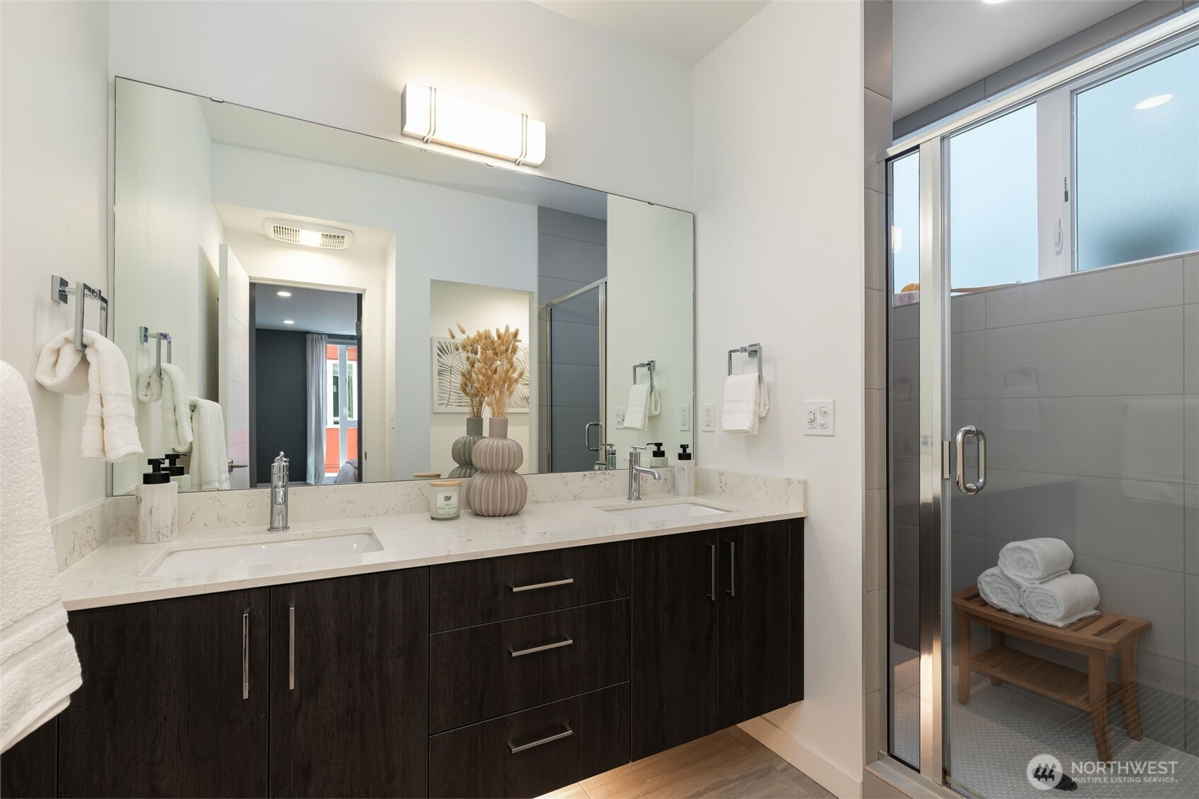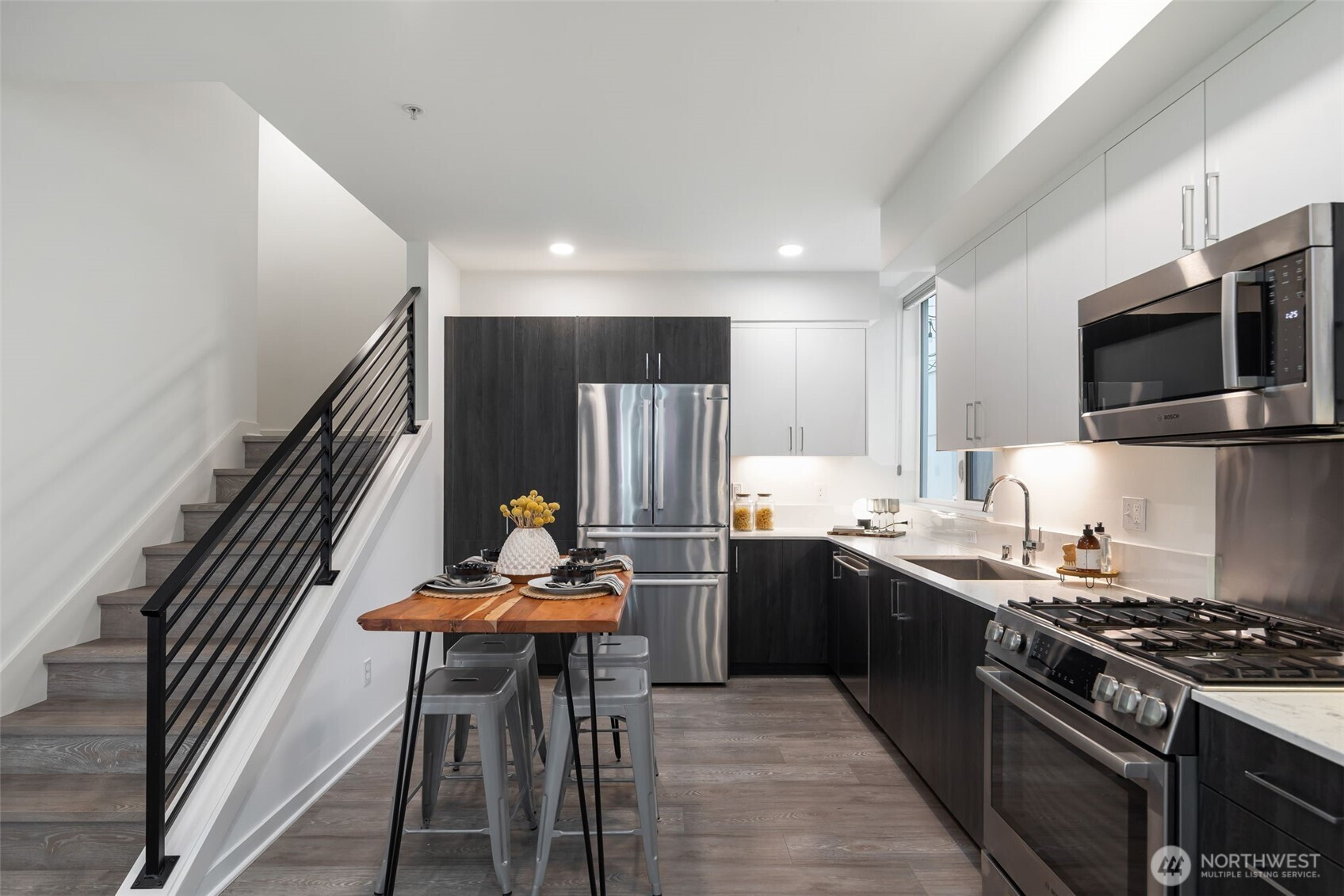 Not your average townhouse! It's the unicorn you've been looking for: condo-level security & professional mgmt w/ the independence of a single-family TH. HOA handles the chores. Your plant babies will thrive w/ S&W facing windows, your fur babies (all sizes!)welcomed, wired for EV in the secure garage, your bike gets a spot too. Gated access to your front door & the communal courtyard. Fresh paint, new carpet, blackout blinds, gas cooking, vaulted ceilings, an actual laundry room w/ W/D incl & more square footage than the competition. Met Mkt is literally next door. Grocery Outlet, Swanson's Nursery, Frankie & Jo’s, Chuck’sHopShop, GoldenGardens all w/in mins! 1-yr lender rate buy-down. Inspection avl.86 WlkScore. I promise its not a dream!