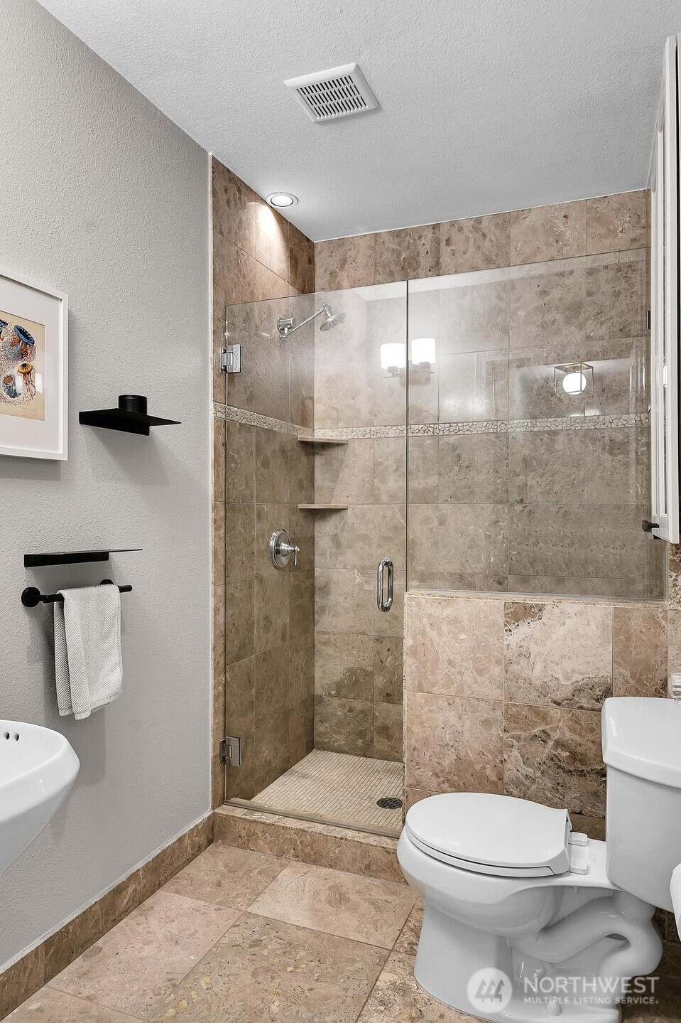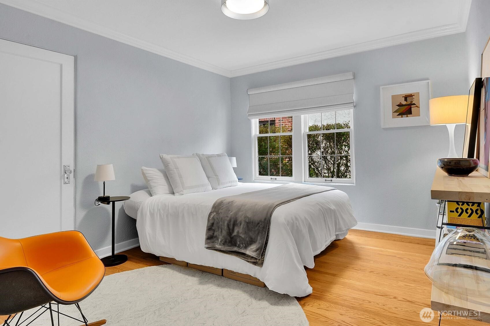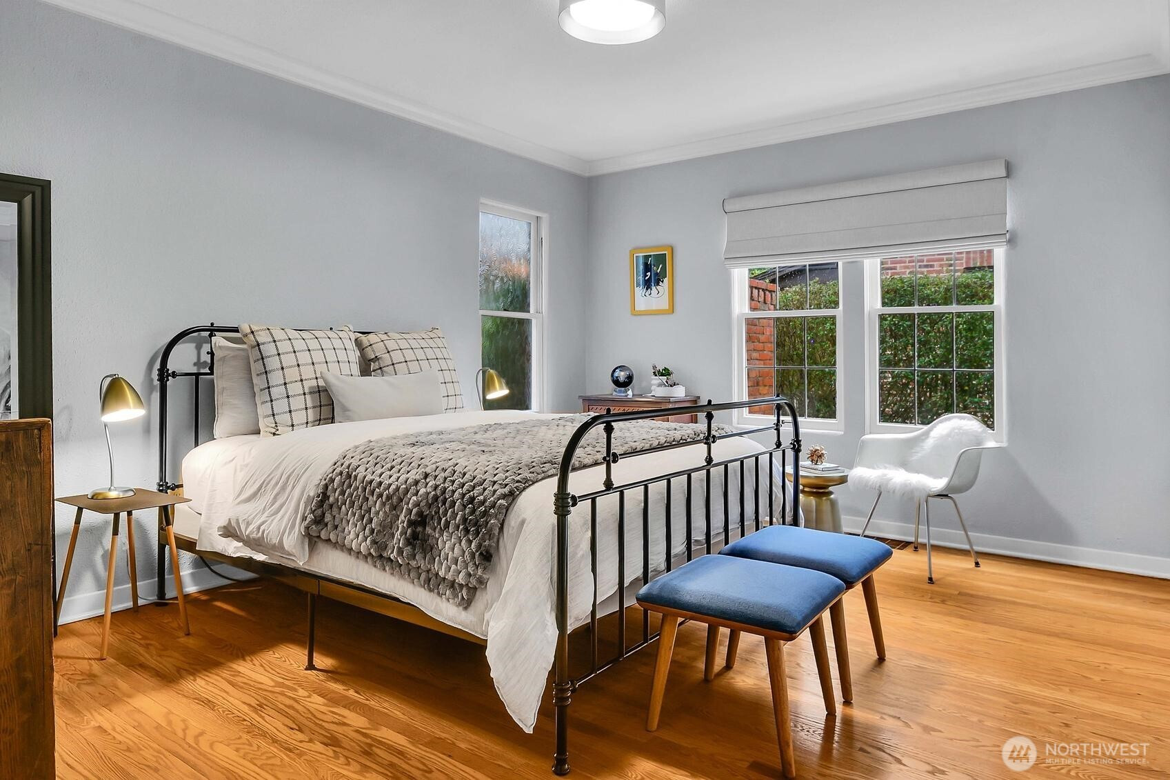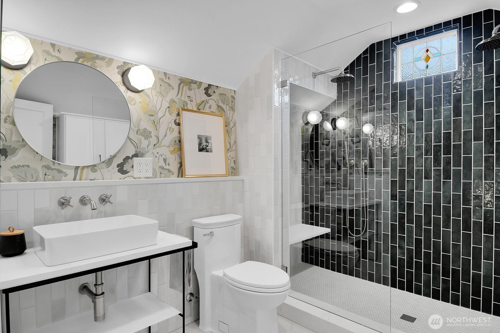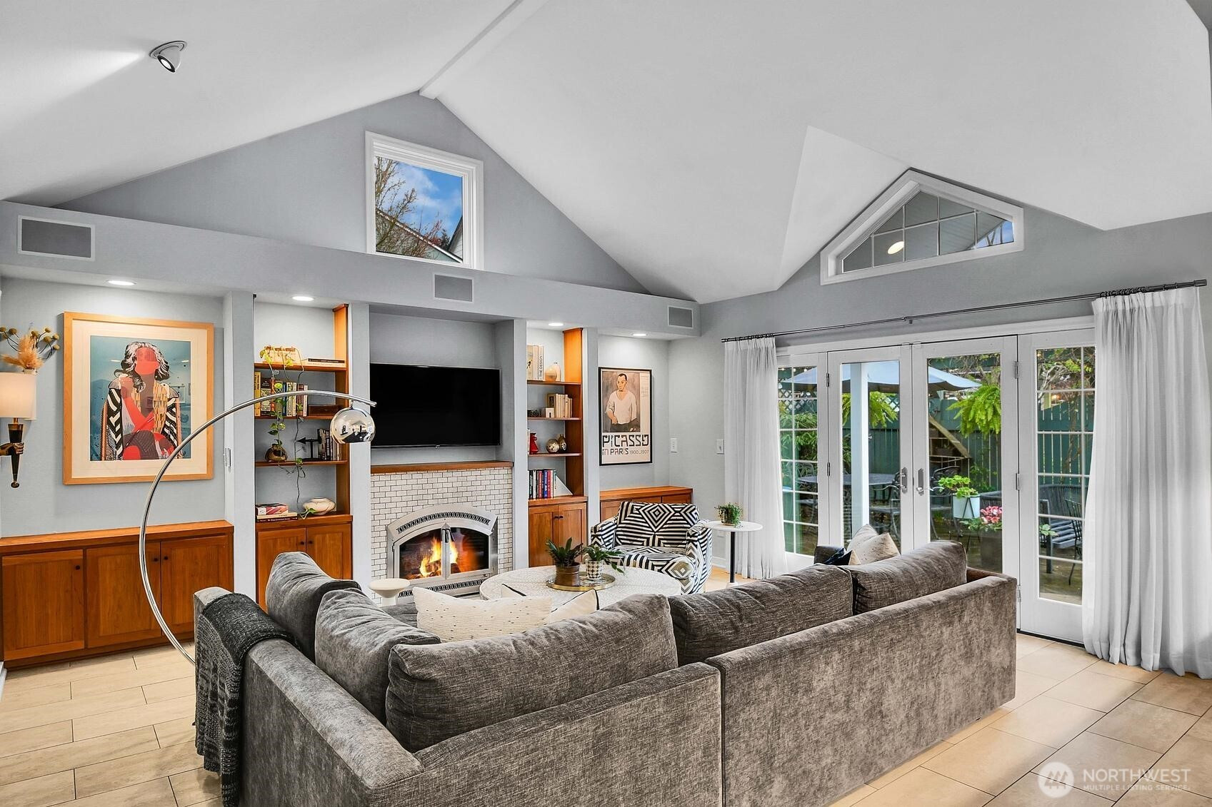 Ideally located just steps from 135-acre Lincoln Park and the beach, this 1931 Tudor blends enduring character with thoughtful, impeccably curated updates. Leaded windows, a bay window and fireplace anchor the formal living room. Beyond, a bright formal dining room captures views of passing ferries on Puget Sound. A custom family room unfolds with vaulted ceilings, heated tile floors and a thoughtfully designed bar with sink and refreshed counters. French doors open seamlessly to a private patio courtyard, creating an easy indoor-outdoor connection. The kitchen has been carefully updated for both everyday living and gathering, with custom-painted cabinetry complemented by new countertops, tile flooring and backsplash, high-end lighting and updated fixtures.Upstairs, a fully reimagined primary suite features rebuilt stairs, new flooring, a custom closet system, venting picture window to admire the Sound views, sitting room or office, and a tastefully appointed bath with custom cabinetry, tile and a spacious walk-in shower. Secondary bedrooms and the guest bath have also been refreshed. Outdoors, professionally redesigned landscaping surrounds inviting entertaining spaces, including a garden sanctuary with brick fireplace and Viking grill. Additional amenities include a wine cellar, sauna, workout area, ample storage throughout the home and parking for three cars. A rare combination of classic Tudor architecture and modern livability in an exceptional West Seattle location.