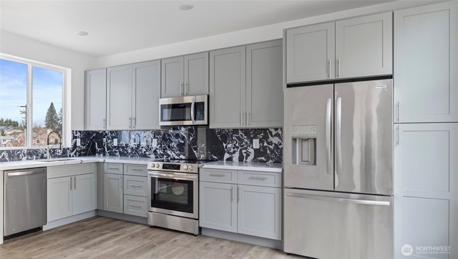 Modern new construction townhome in Beacon Hill featuring 3 bedrooms and 2.5 baths. Enjoy open-concept living with vaulted ceilings, stainless steel appliances, and elegant finishes throughout. The spacious primary suite offers a walk-in closet and full bath. Energy-efficient mini-split A/C ensures year-round comfort, heat pump and a recirculation water line. Take in beautiful mountain views and enjoy the convenience of being just minutes from light rail, parks, dining, and shopping. Perfect blend of luxury, style, and location!