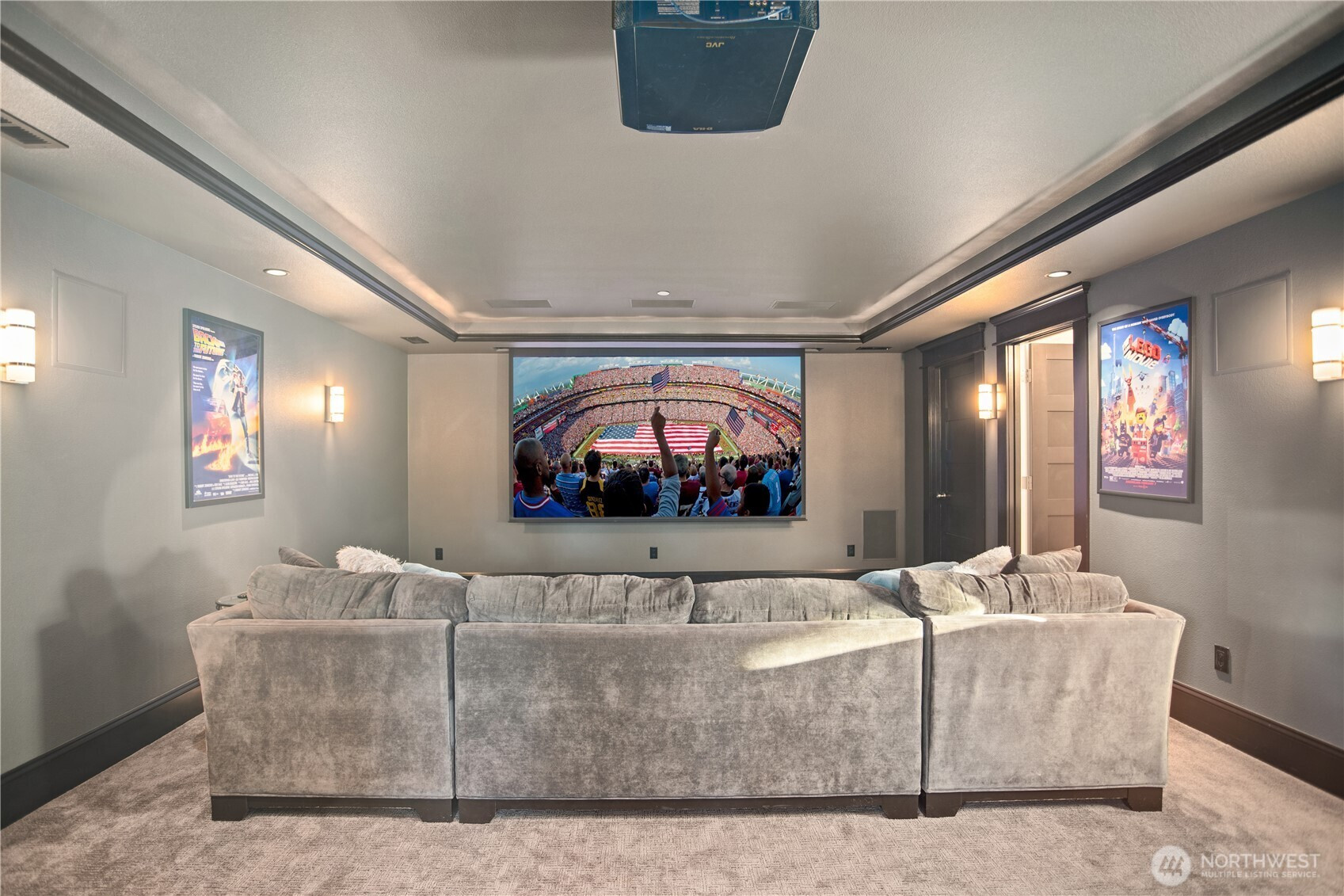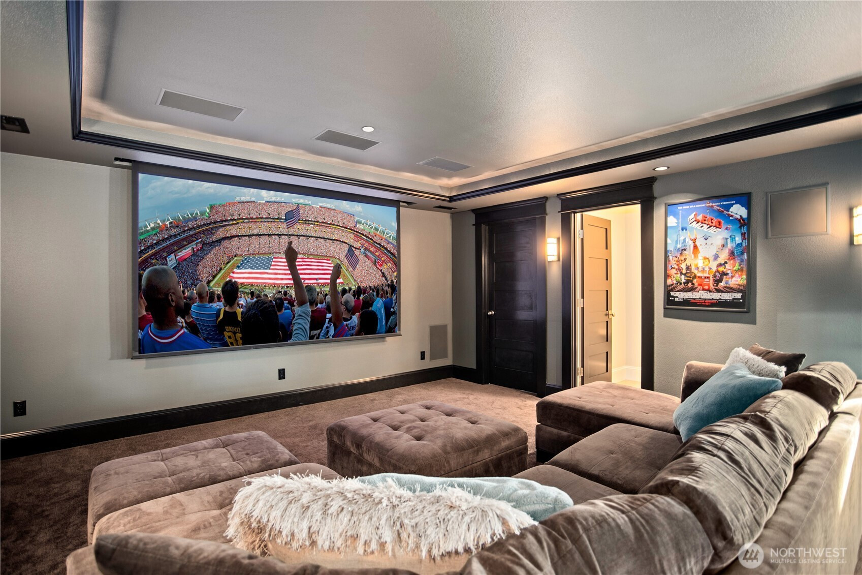 Tucked away in complete privacy, this custom-built retreat offers a peaceful, secluded setting surrounded by natural beauty. At the heart of the home is the chef’s kitchen, showcasing quartz countertops and top-of-the-line stainless steel appliances, including a Sub-Zero fridge and a professional-grade Wolf range with 6 burners, double griddle, and dual ovens. A convenient pot filler and massive center island complete the space, creating the perfect spot for gathering and entertaining. The open living spaces create an effortless flow for everyday living and hosting. Step outside to your private backyard oasis and enjoy PNW summers around the built-in gas fire pit. The spacious primary suite offers a true retreat, complete with a large walk-in closet and a spa-inspired 5-piece ensuite bath featuring a jetted soaking tub. Every bathroom is elevated with under-cabinet lighting for a clean, modern touch. Additional standout features include a massive private gym, a dedicated movie theater, and a versatile laundry room that doubles as a craft or hobby space. Thoughtfully designed for both comfort and functionality, the home features real hardwood flooring and is filled with abundant natural light throughout. This custom craftsman-style home offers an incredible PNW living experience.