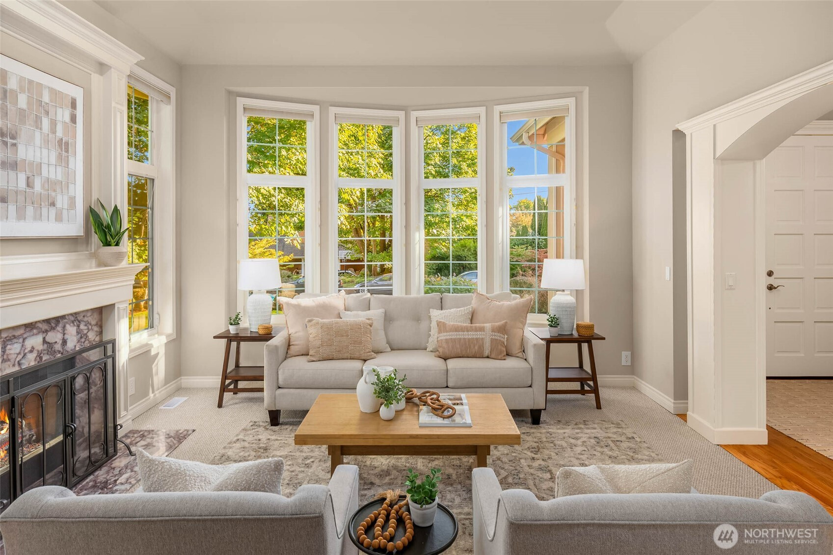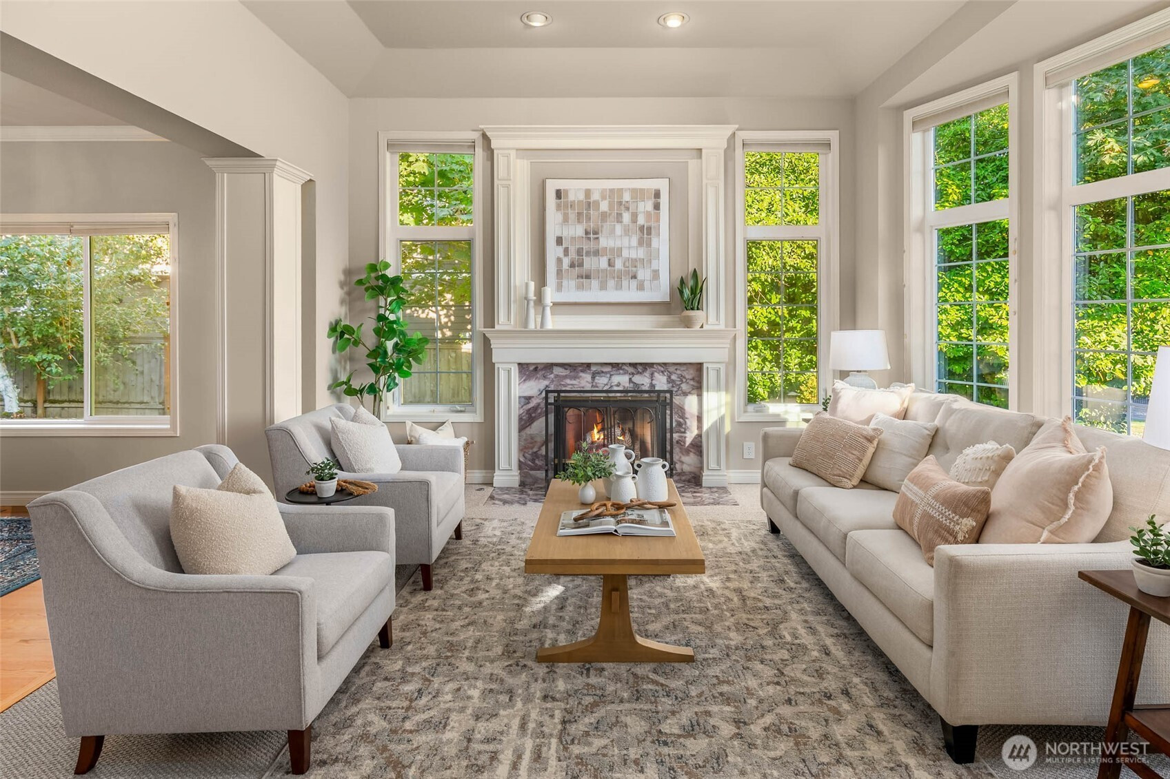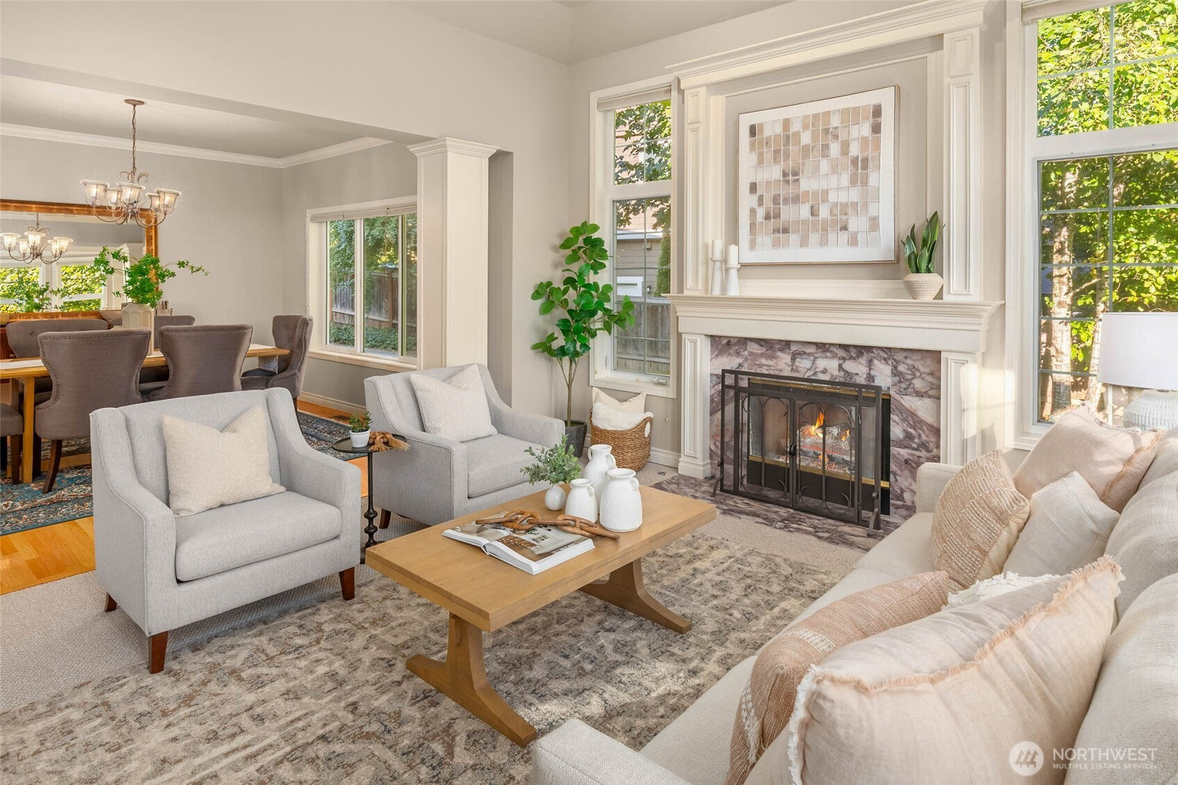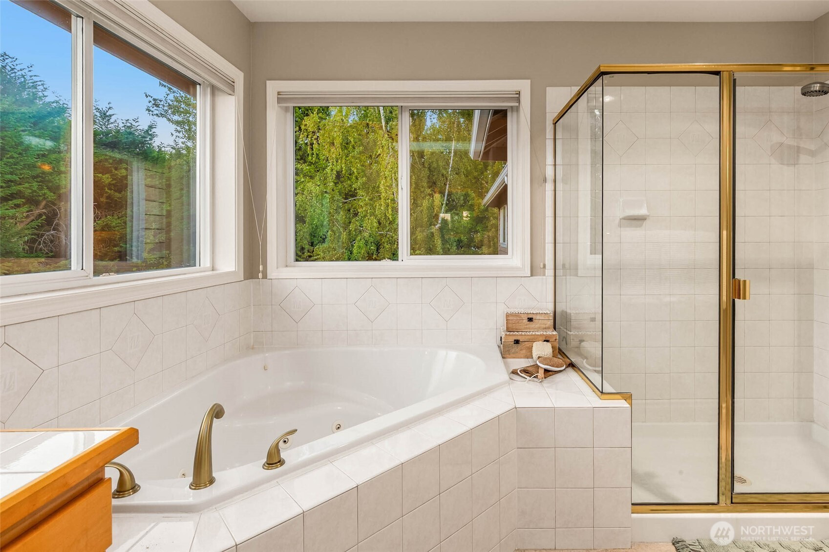 Beautifully maintained Juanita home combines timeless style with everyday comfort. Gorgeous views of Mt. Rainier, and tucked on a quiet street just steps from top-rated schools and parks - completely move-in ready with A/C, roomy 3-car garage, new roof & fresh interior/exterior paint. Enjoy a private deck + lush backyard framed by mature landscaping. The main level offers bright and light-filled living spaces, an eat-in kitchen w/walk-in pantry, formal dining, two fireplaces, and a versatile office. Upstairs features an oversized peaceful primary suite with walk-in closet and jetted tub, three additional bedrooms, one of which is oversized and could be a great bonus room - many possibilities! Pre-inspected & ready to welcome you!