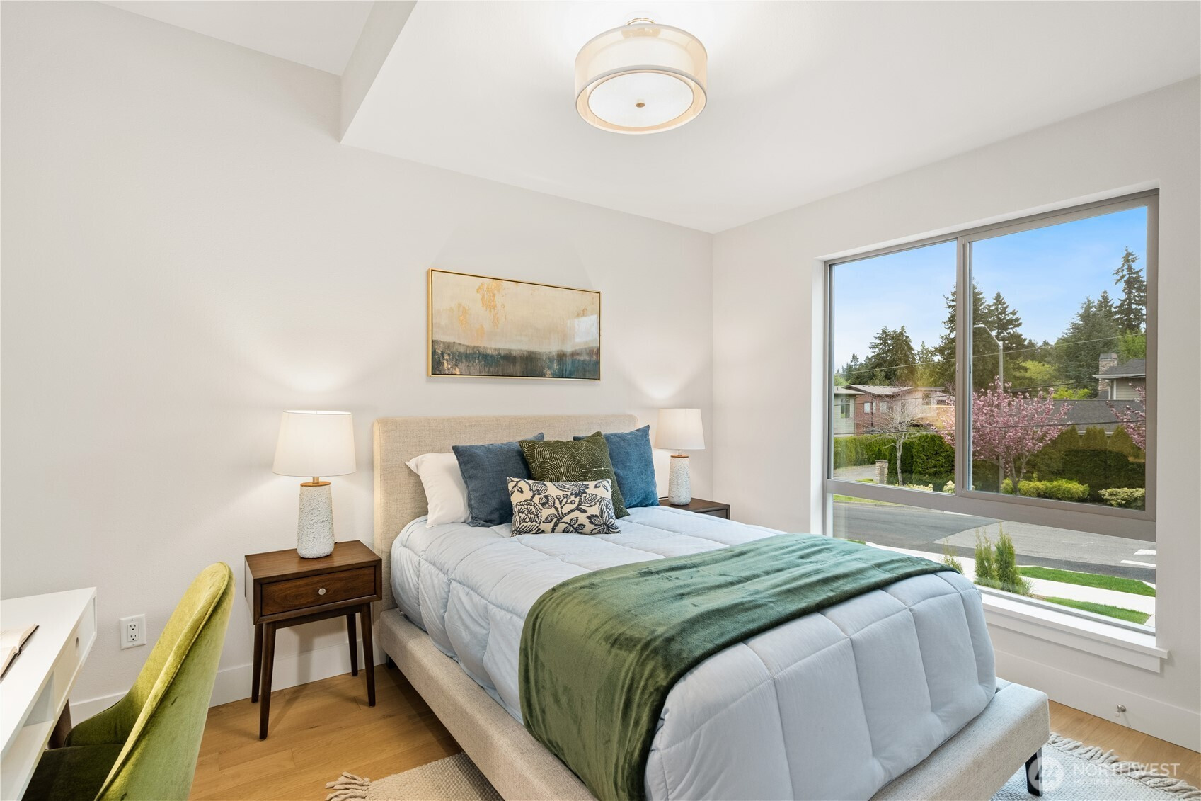 Merit Homes presents Wilder Lot 2! The 4-home community in desirable rose hill offers this thoughtfully designed two-story floorplan offering a reduced footprint without sacrificing luxury or livability. This home features 3 bedrooms, 2.5 bathrooms, a bright, open layout, and an attached EV-ready garage. Step inside to a light-filled open-concept main level ideal for both everyday living and entertaining. The gourmet kitchen showcases a quartz slab island with bar seating, custom soft-close cabinetry, dual-zone wine chiller, and a premium appliance package highlighted by an induction range. The great room is warm and inviting with a sleek contemporary linear electric fireplace and seamless access to the outdoor patio. A stylish powder bath completes the main floor, perfect for guests. Upstairs, the primary suite is a true retreat, filled with natural light and featuring a spa-inspired walk-in shower with bench seating and dual shower heads, plus a walk-in closet with custom shelving. Two additional bedrooms provide ample space, complemented by a full secondary bathroom and a well-appointed laundry room with quartz countertops and upper and lower cabinetry. Ideally located for effortless commuting with quick access to major employers including Microsoft, Meta/Facebook, Amazon, and EvergreenHealth. Enjoy close proximity to Kirkland Costco, The Village at Totem Lake, parks, walking trails, and top-rated schools.