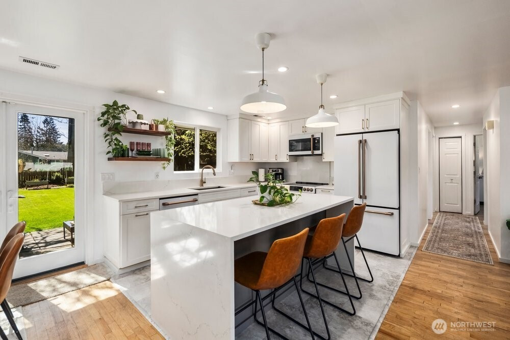 Welcome to 8711 NE 140th St, nestled in the heart of Kirkland's coveted Juanita neighborhood. This beautifully updated home combines modern convenience with timeless comfort. Step into the renovated kitchen, a chef's dream equipped with cutting-edge Smart Technology appliances—perfect for both everyday meals and entertaining. The home offers not one, but two spacious and inviting family rooms, ideal for relaxing or gathering with loved ones. Experience year-round comfort with the updated HVAC system featuring split zoning, designed for energy efficiency and personalized climate control. Situated on a generous 0.24-acre lot, this property offers ample space to create your own outdoor oasis. Don't miss your chance to live in one of Kirkland's most desirable areas, with easy access to parks, top-rated schools, and vibrant local amenities. Come see it today—your next chapter starts here!