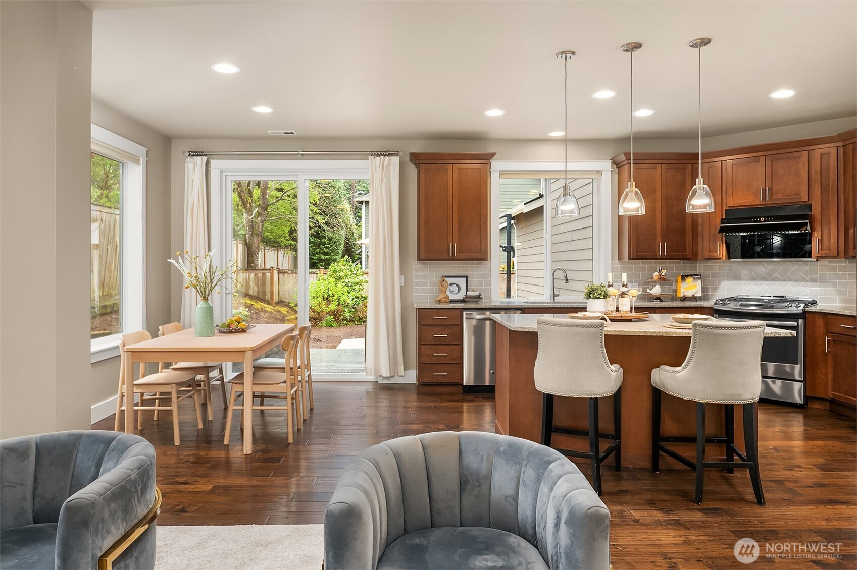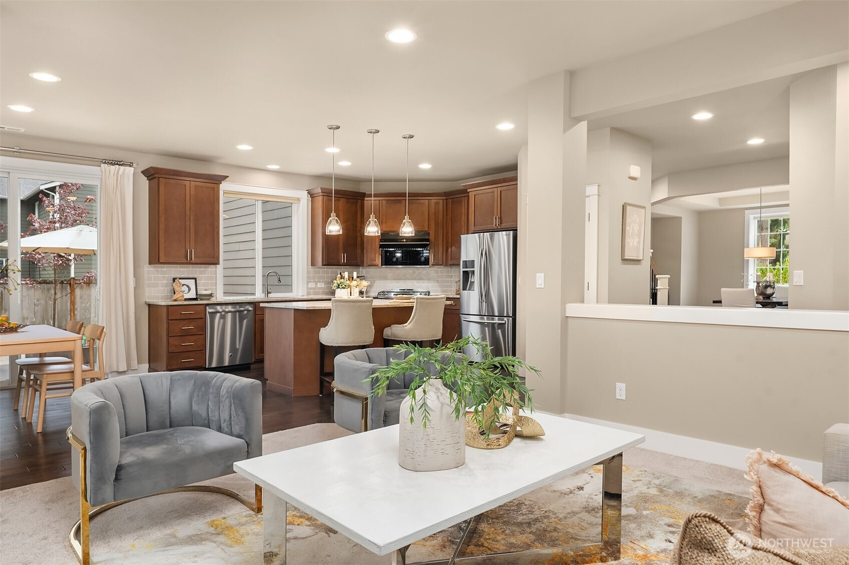 Elevated Luxury in Kirkland: The Masterpiece by Terrene Home. Welcome to Lake Crest, an enclave of four boutique residences perfectly positioned in the heart of Rose Hill. Experience the epitome of modern living in the "Ville de Storia" floorplan—a sprawling, open-concept design crafted for sophisticated entertaining and effortless daily life. The main level invites you in with a stunning living room that flows seamlessly into a gourmet kitchen and breakfast nook with sliding door to the well designed backyard. The main floor also features a formal dining room, a dedicated home office with custom built-ins, and a versatile guest suite. Stepping upstairs to your private primary retreat, boasting a spa-inspired 5-piece bath and dual walk-in closets. Three additional bedrooms, a massive family room, and a convenient utility room complete the upper level. Situated on a quiet cul-de-sac with a spacious yard and a 3-car wide garage with electric car charging. Upgraded features include:Central A/C, Designer Hunter Douglas window blinds throughout. Custom-built closet in the primary bedroom and home office. Brand-new, plush carpeting across the entire home. Premium Huntwood kitchen cabinetry for a timeless finish. Award winning Lake Washington School District. This home combines privacy with ultimate "walk-to-everything" convenience. A MUST SEE!