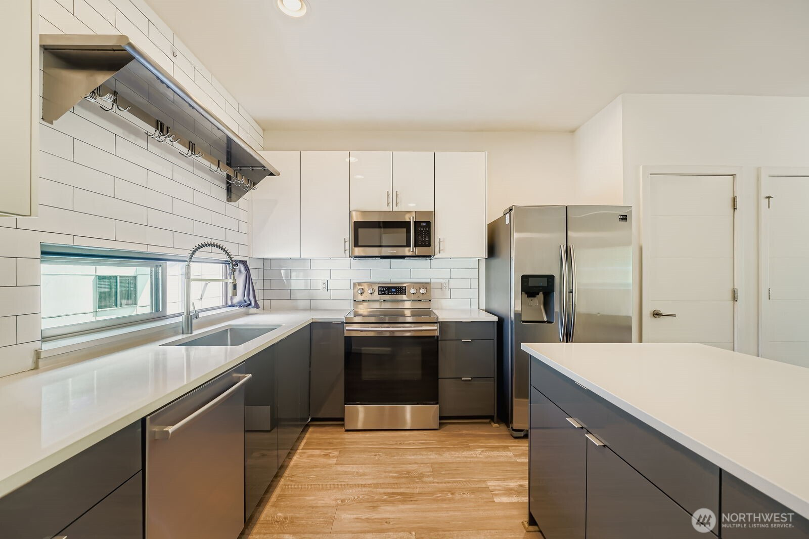 Spacious and modern townhome featuring 3 bedrooms and 2.5 bathrooms. Two bedrooms, each with their own full bath, are located on the top floor; the third bedroom is on the lower level. The main floor offers an open kitchen with eating space, a bright living room, and a convenient half bath. Enjoy the oversized garage with easy rear access. Front area can be fully fenced and currently is a perfect place to lounge and relax outside. Located just 2 blocks from the light rail, providing quick connections south to Federal Way (past the airport) and north to Lynnwood (past downtown Seattle and UW). No rental cap—ideal investment opportunity!