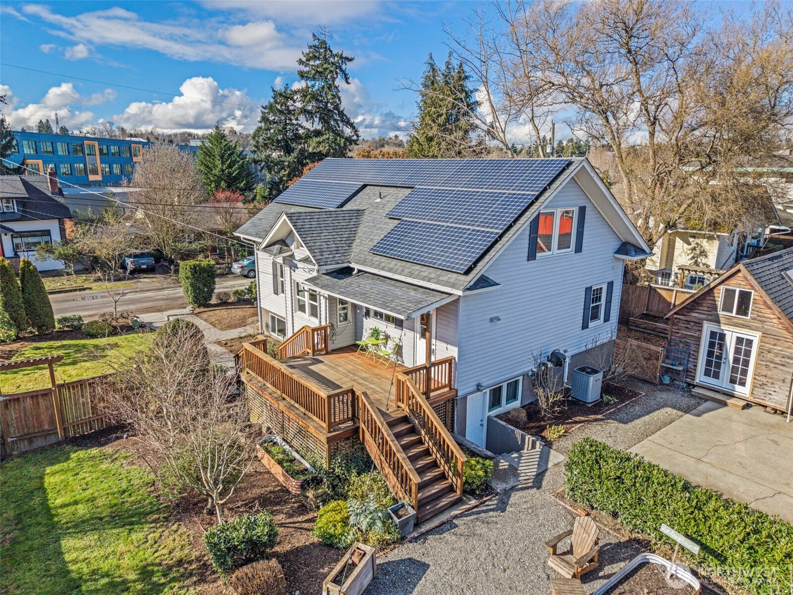 Welcome home to this spacious 5 bed 3 bath Craftsman gem on a huge oversized lot that offers alley access, privacy and room to play. Step up through the front arch and inside to find 9' ceilings, open concept living with tons of natural light filling the main level. Large front living room flows to dinning and kitchen that features gas cooking, quartz counter tops, island, walk-in pantry and SS appliances. Full bath, Washer/Dryer and bedroom on main level. Upstairs you will find the primary bedroom with walk-in closet, 5 piece bath with claw foot tub, double sink vanity and an additional bedroom and sitting area. Basement has income potential with two sperate entrances, full kitchen, full bathroom, two bedrooms, living room with roll down movie screen and laundry space. Enjoy the long summer days on the deck that over looks the yard that includes, mature landscaping, fire pit, garden spaces, patio, fenced side yard for dog run and work shed with loft. Solar panels added to home help keep utilities down. Has central heat pump/AC. One car garage with off street parking space. Home underwent top to bottom remodel in 2012. Fresh carpet and interior paint just completed! Close to Lake Washington, Seward park, schools, marina, shopping and freeway.