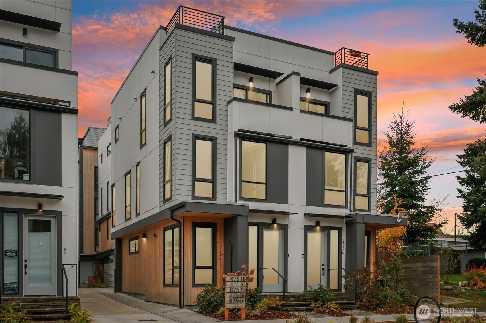 Modern 2022 Crown Hill townhome by local builder Blackwood Homes, featuring a private rooftop deck with mountain and territorial views, dedicated parking with EV charger, and no HOA or dues. This 3-bed, 2-bath home blends design, comfort, and efficiency with light-filled interiors, sleek finishes, and tall ceilings. The gourmet kitchen offers stainless steel appliances, quartz counters, custom tile, and a walk-in pantry. The primary suite includes a spa-like bath and private balcony. Two additional bedrooms and a full bath complete the layout. Enjoy sunsets from the rooftop deck and smart features like Hunter Douglas blinds, a security system, and smart exterior lighting. Walk to parks, cafes, and shops with quick freeway access.