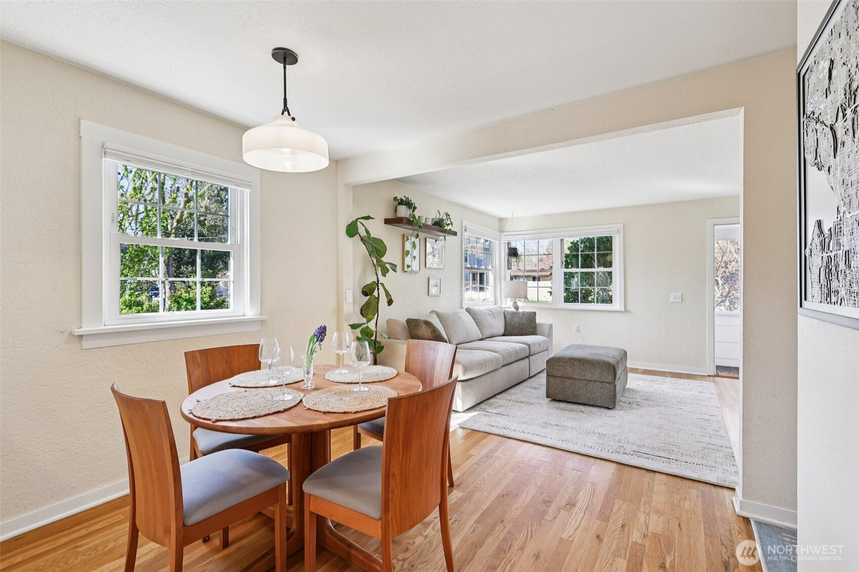 This well maintained and beautifully updated Craftsman blends timeless charm with modern comfort. A welcoming front porch opens to a sunlit, airy layout with rich hardwood floors and inviting living spaces. The spacious kitchen features a gas cooktop, shaker-style cabinetry, PaperStone countertops, and under-cabinet lighting—ideal for everyday living and entertaining. The generous primary suite offers a peaceful retreat with a walk-in closet, cozy sitting or office area, and direct access to the back deck. A well-sized second bedroom and a spacious, updated bathroom add comfort and flexibility. Thoughtful updates continue throughout, including a functional mudroom with laundry and ample storage. Outside, the expansive, level lot is a true highlight with a lush yard and gardens, an oversized entertainment deck, and a 220V-wired flex space perfect for a gym, workshop, or hobby area—all enclosed by extra tall privacy fencing. Alley access adds flexibility with potential for a gate, plus opportunities for a DADU, detached garage, or future expansion. An extra-long driveway provides ample parking. Pre-inspected and sewer scoped for peace of mind. Prime location — half a block from Sandel Park, walking distance to Trader Joe's, and easy access to Green Lake, Carkeek Park, and Golden Gardens. Top-rated schools include Greenwood Elementary & Robert Eagle Staff.
