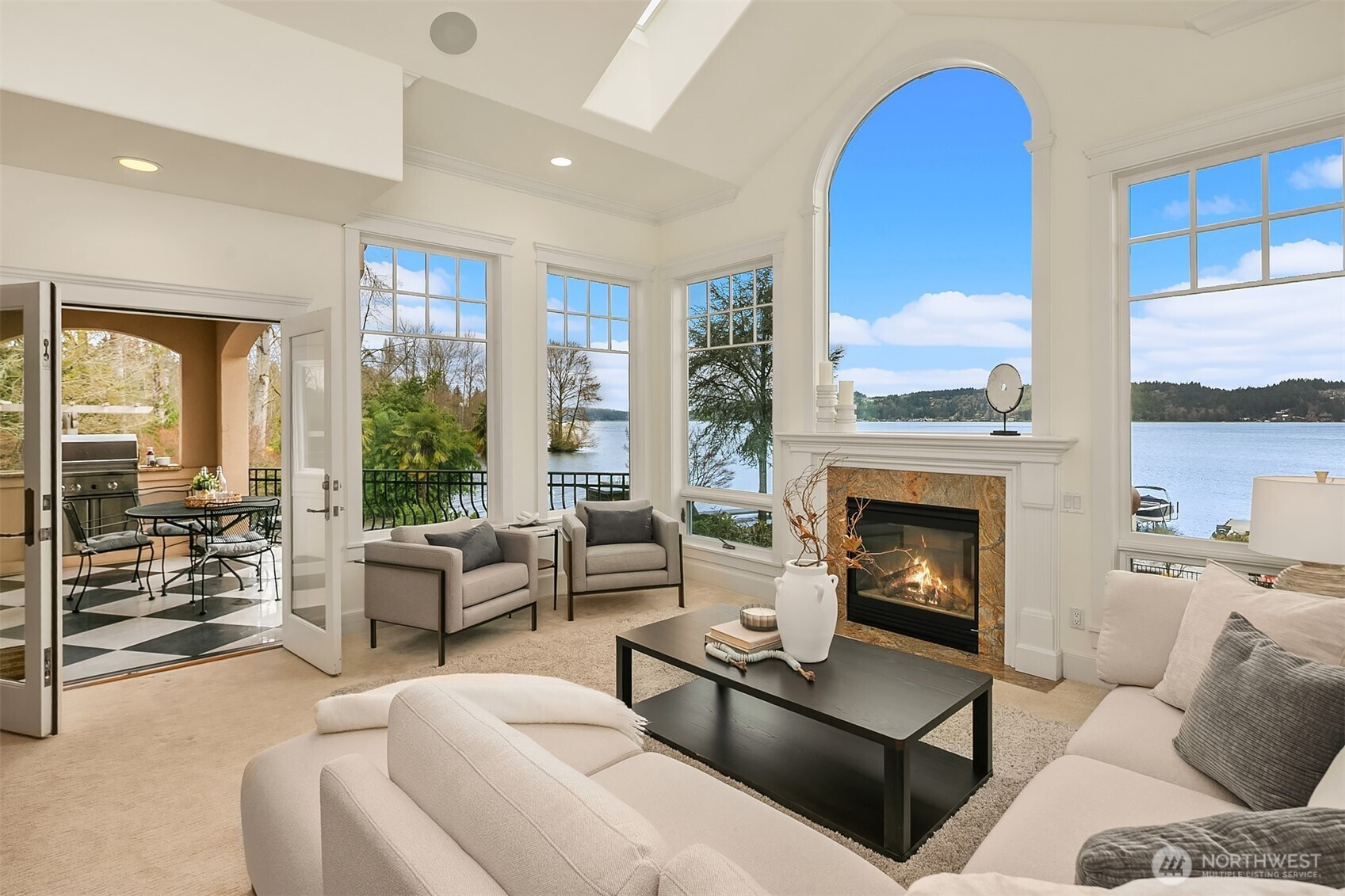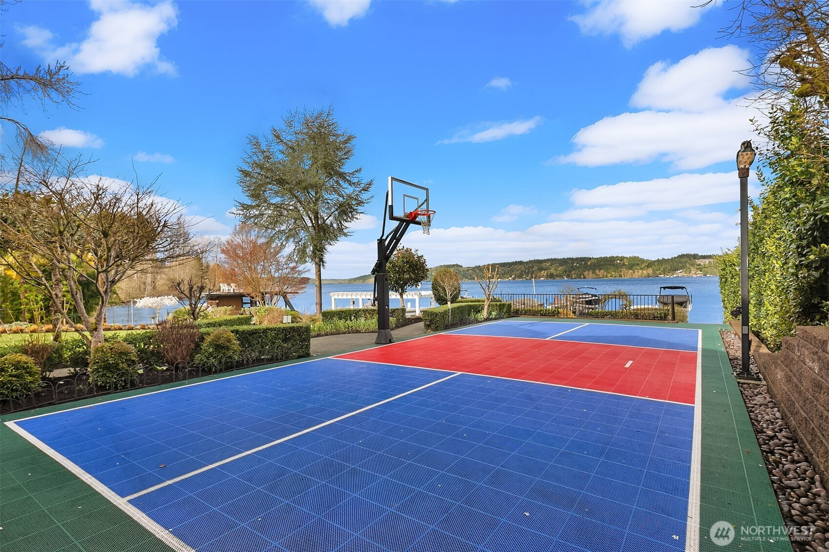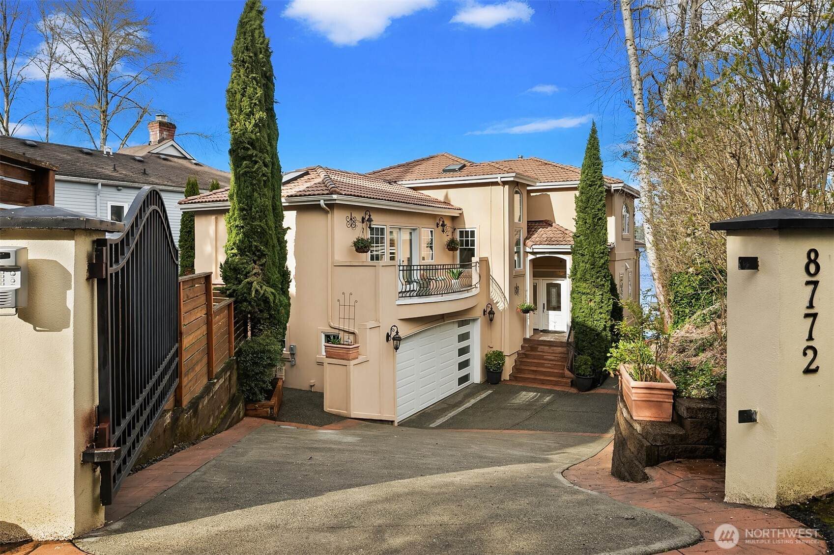 A regal Tuscan-inspired waterfront retreat awaits at the end of a private gated drive on the shores of Lake Washington. Graceful archways, vaulted ceilings, intricate tile mosaics, and radiant-heated travertine floors create timeless elegance with just the right amount of Mediterranean drama. Set on a tranquil bay, this rare in-city sanctuary offers daily cameos from fish, herons, and soaring eagles—nature clearly approved the address. Flooded with natural light from expansive windows and skylights, the home is designed for both grand entertaining and effortless living. Highlights include a chef’s kitchen, home theatre, pickleball/basketball court, putting green, hot tub and an exceptional dock with jet ski and boat lifts. A remarkable layout places three private bedroom suites on three separate floors, offering comfort, privacy, and flexibility. Enjoy the sweeping water views and cozy fireplaces. With an additional guest room, 3.25 baths, dedicated office, lower-level kitchenette, and spacious two-car garage, this extraordinary residence is moments from Matthews Beach Park, Burke-Gilman Trail, University of Washington, University Village, and Seattle Children's Hospital—blending luxury, light, urban convenience and an unmatched waterfront lifestyle.