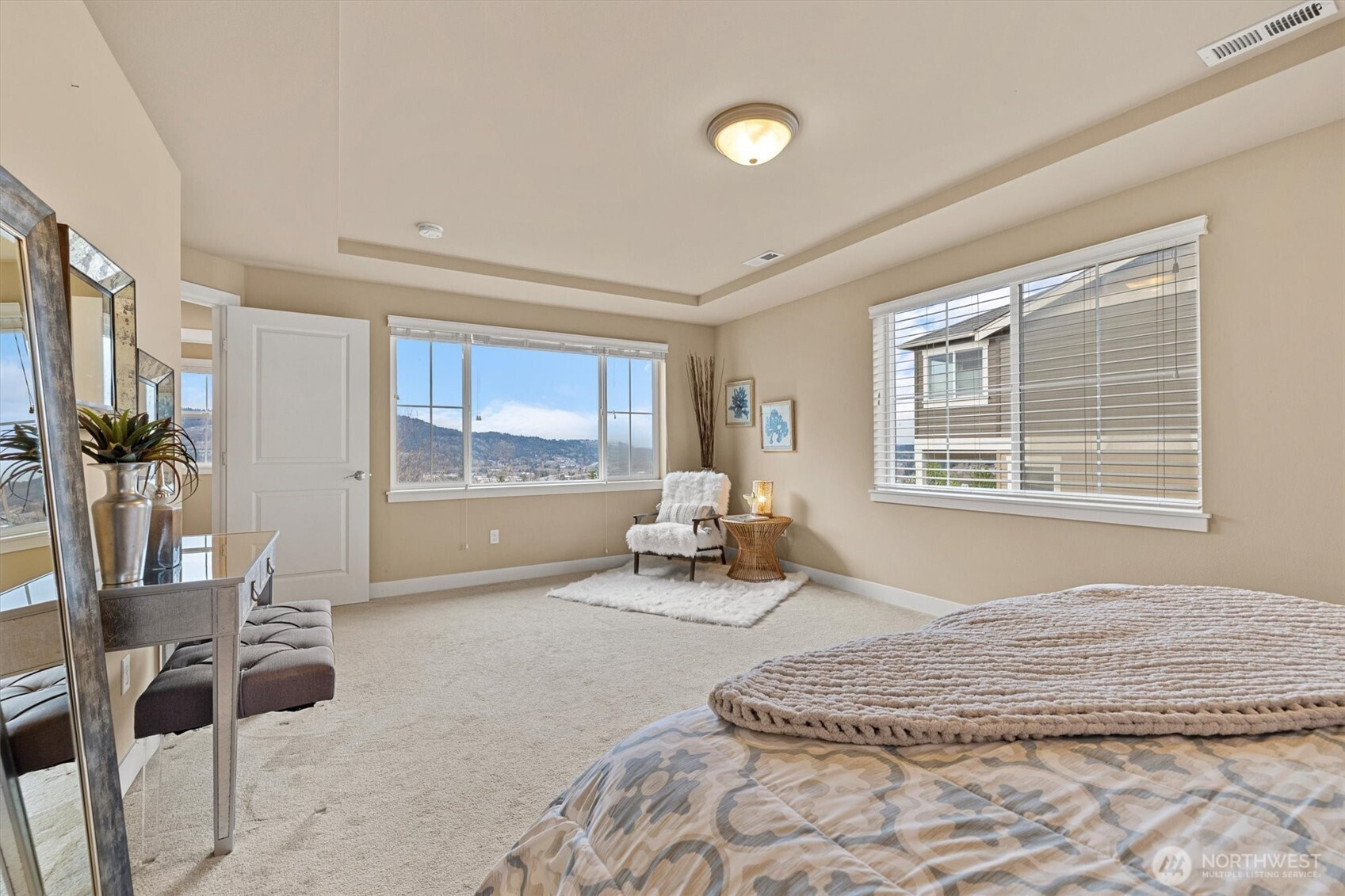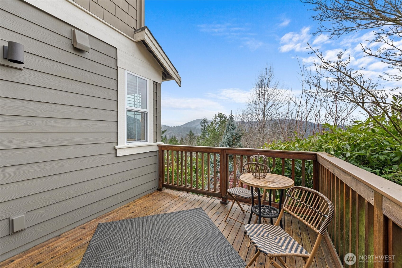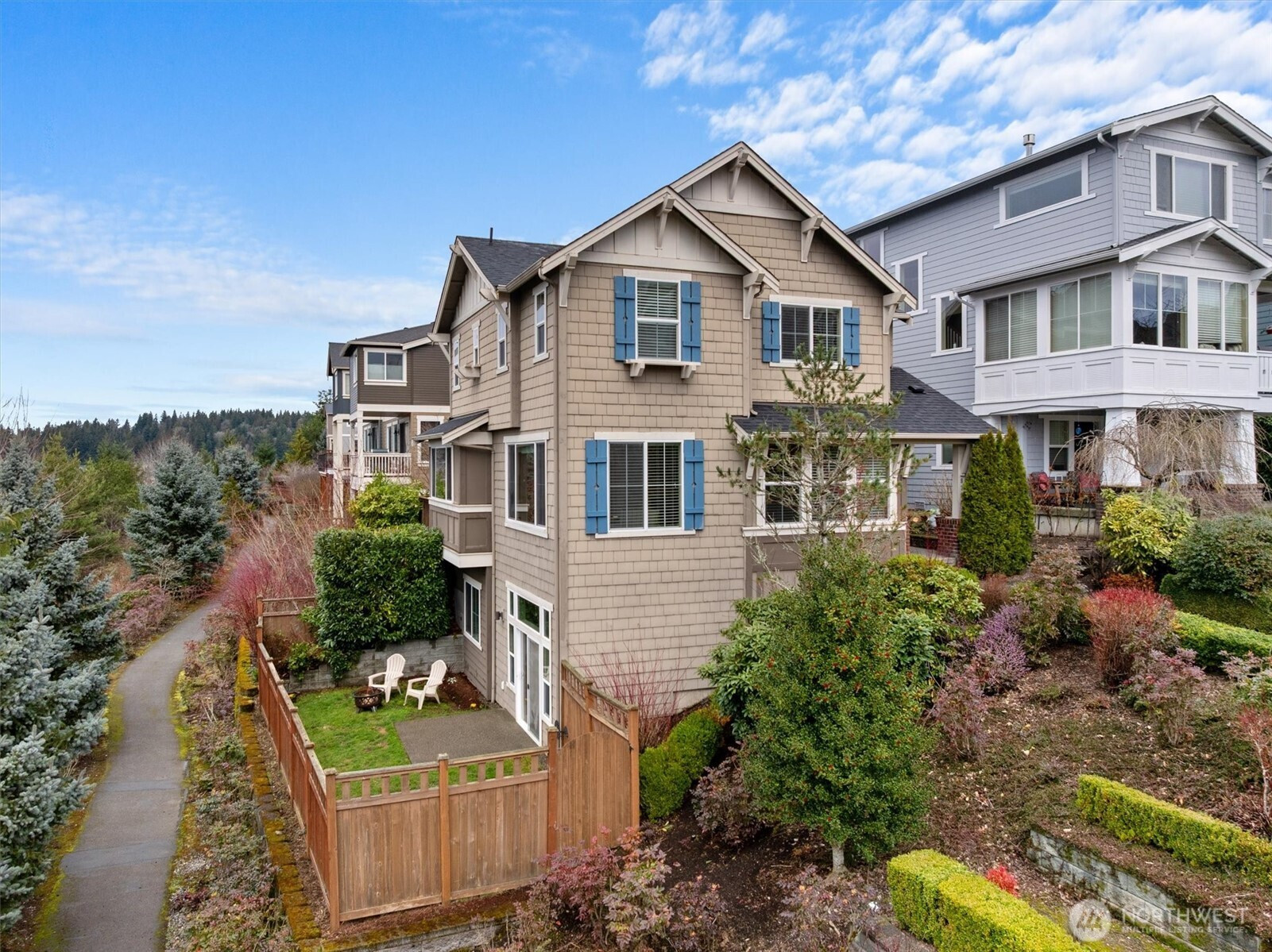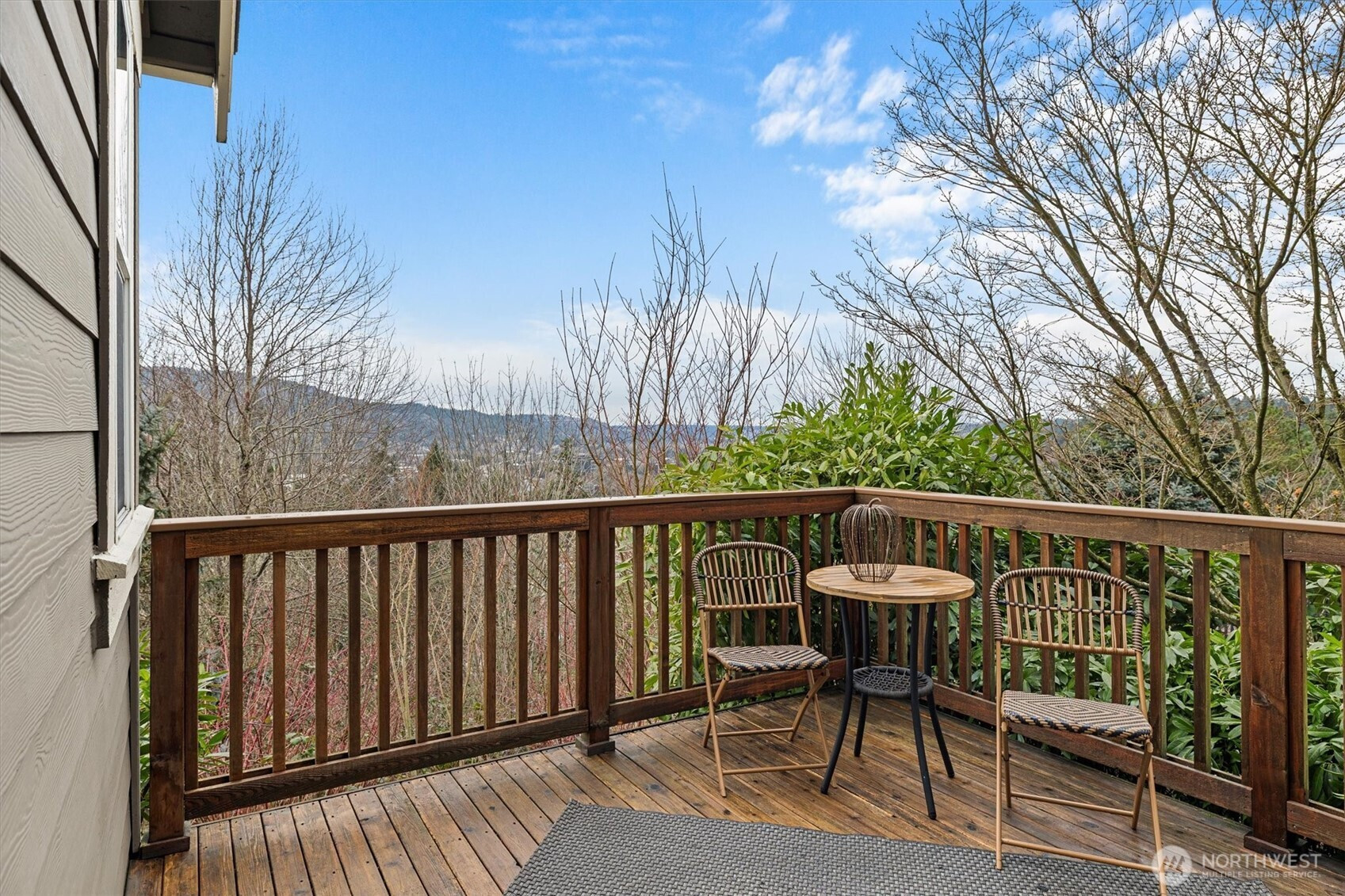 Welcome Home! Located on the Western Ridge of West Highlands Park and adjacent to walking trail is the VIEW home you've waited for! Located on the Greenbelt with no homes to the West! Enjoy Unparalleled views of Lake Sammamish, Olympic mountains, and downtown skyline from main and upper levels! Main Floor Entry opens to Full hardwoods, with great room concept opening to Full Granite Chef's Kitchen featuring stainless appliances. Entertain on your view deck located off kitchen. Upper Level features Primary Bed/Bathroom with full Soaking Tub and separate shower. 3 bedrooms and Laundry together on upper floor. Lower level features Family room, Bedroom and 3rd Full Bath. One of few homes with Fenced, level back yard. **Central AC!!** Don't miss the Best location West Highlands has to offer!