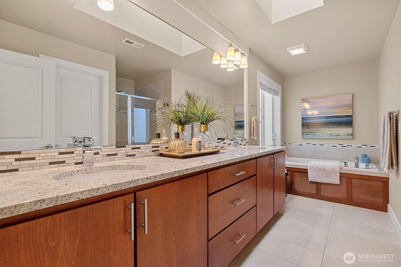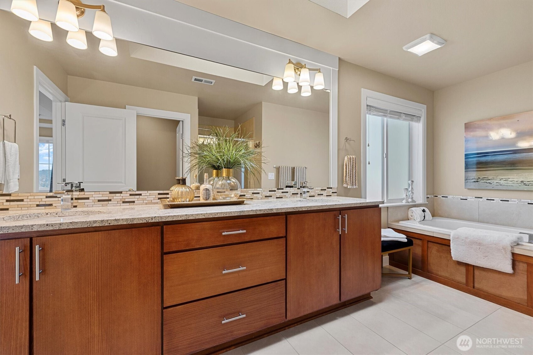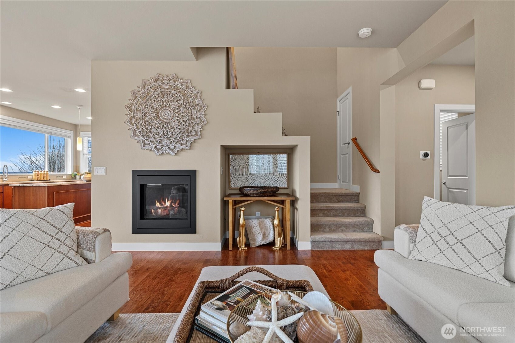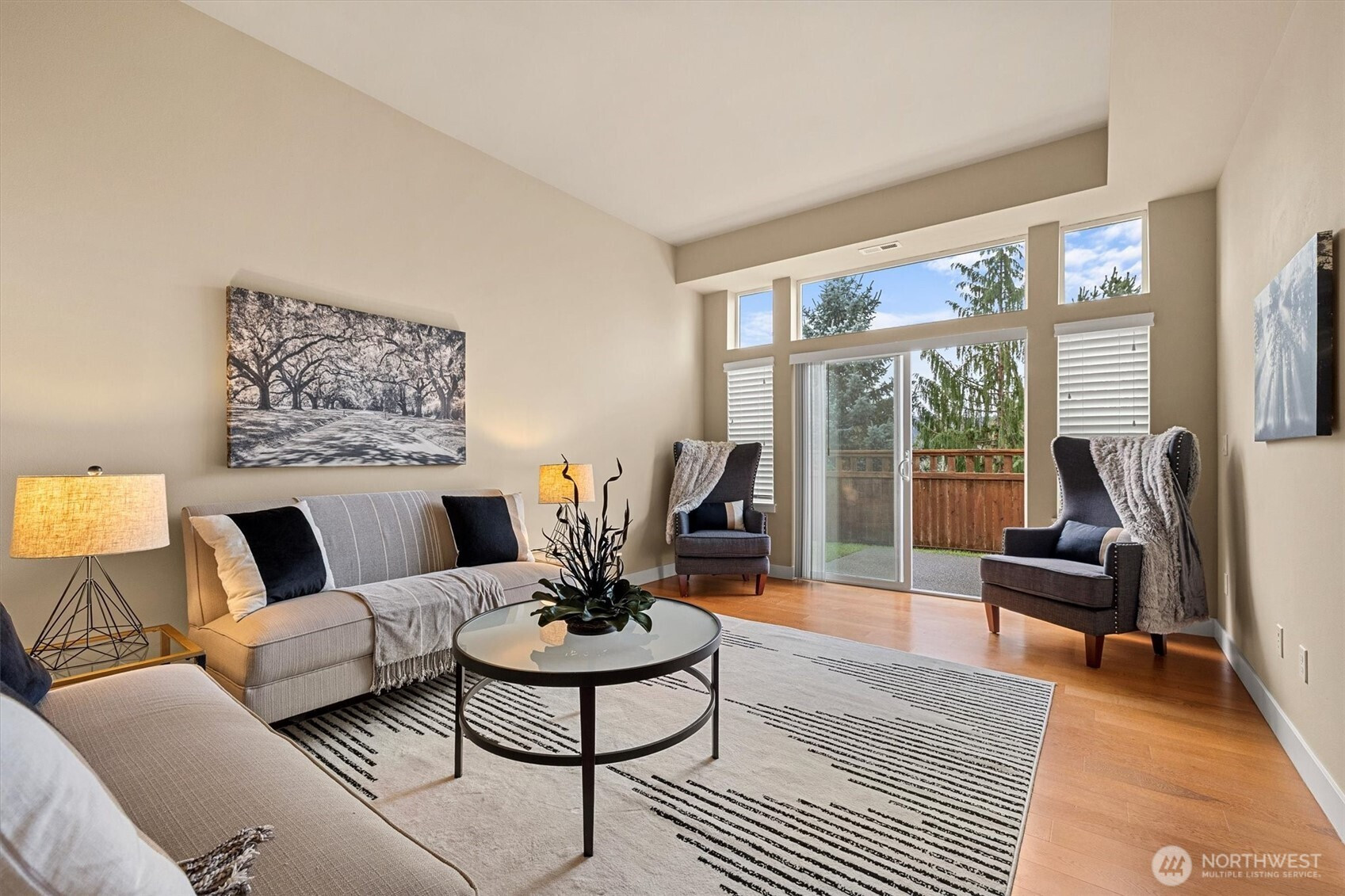Welcome Home! Located on the Western Ridge of West Highlands Park and adjacent to walking trail is the VIEW home you've waited for! Located on the Greenbelt with no homes to the West! Enjoy Unparalleled views of Lake Sammamish, Olympic mountains, and downtown skyline from main and upper levels! Main Floor Entry opens to Full hardwoods, with great room concept opening to Full Granite Chef's Kitchen featuring stainless appliances. Entertain on your view deck located off kitchen. Upper Level features Primary Bed/Bathroom with full Soaking Tub and separate shower. 3 bedrooms and Laundry together on upper floor. Lower level features Family room, Bedroom and 3rd Full Bath. One of few homes with Fenced, level back yard. **Central AC!!** Don't miss the Best location West Highlands has to offer!