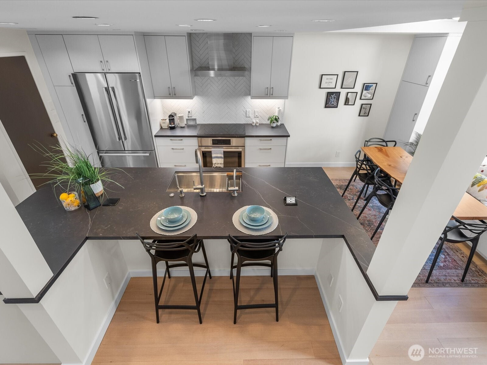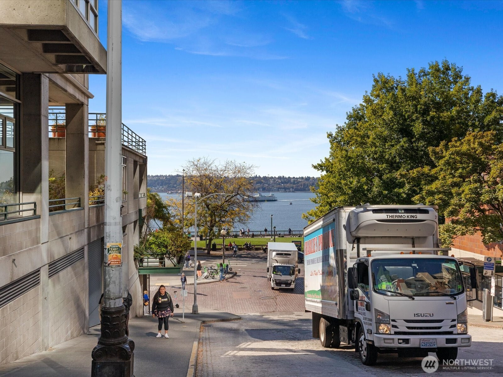 Live at Pike Place Market in this updated 2-bed, 1.5-bath Market Place North townhome. The main floor features hardwoods, a wood-burning fireplace, built-in bench & an updated kitchen with induction cooktop, quartz counters, and pantry. Upstairs, the primary suite offers a walk-in closet with custom shoe wall and a spa-like bath with dual vanities, rain shower, and Japanese Ofuro tub. The second bedroom doubles as a media room with a clever built-in “cloffice” (office in a closet). A private balcony overlooks Pike Place Market, Victor Steinbrueck Park & Elliott Bay, while upstairs adds stadium and mountain views. This rare retreat includes secure parking & storage, and is just steps from the new Market Walk and all the energy of Pike Place.