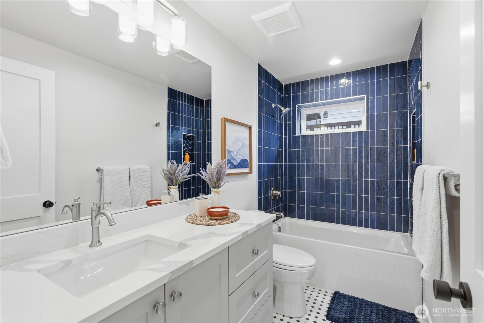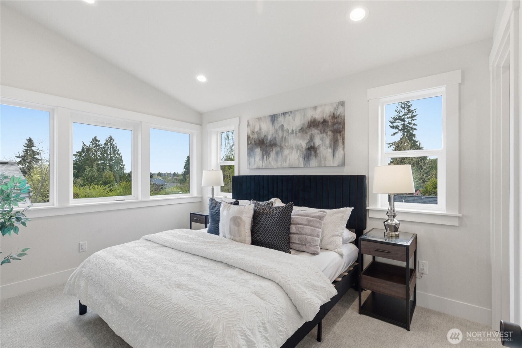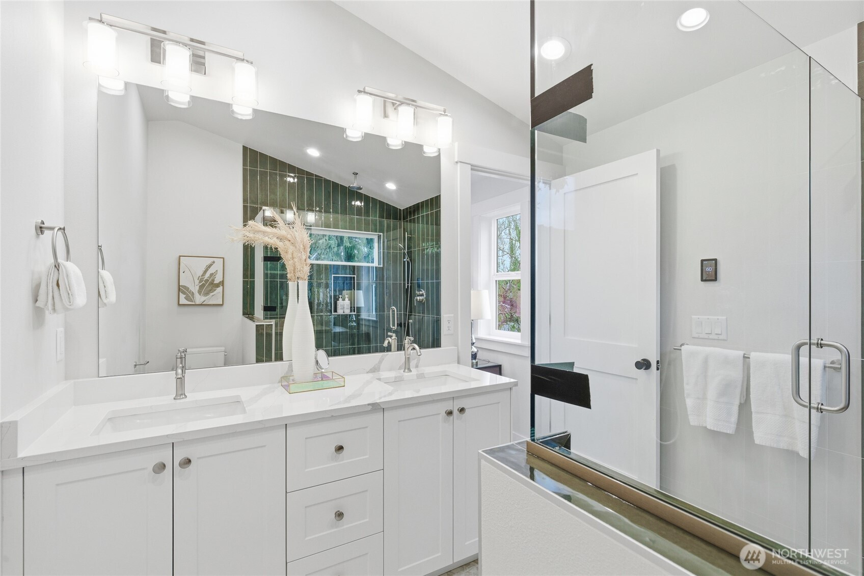 Crisp modern design meets everyday comfort. 1 of 3 spacious brand-new DETACHED homes from Seattle favorite boutique builder Garton Developments on one of the finest tree-lined streets in North Green Lake. Thoughtfully designed new construction, these home blends modern craftsmanship with timeless finishes. Wide-plank hardwoods, clean-lined shaker doors, and black hardware create a cohesive, elegant look, while a custom entry drop zone adds practical style. The kitchen features two-tone Bellmont cabinetry, quartz counters, full-height backsplash, and a spacious peninsula with pendant lighting. Bathrooms showcase designer tile, quartz, and modern fixtures, including a spa-like primary suite bath and a boutique powder room. Additional highlights include plush carpeted bedrooms, black spindle stair railings, curated exterior lighting, and a neutral palette for a bright, calm feel. Don't miss the heated two-wheeled garage/flex room and an off-street parking space. Set on a quiet, peaceful street yet just moments from vibrant conveniences including Green Lake, Northgate Station, North Seattle College and much more!
