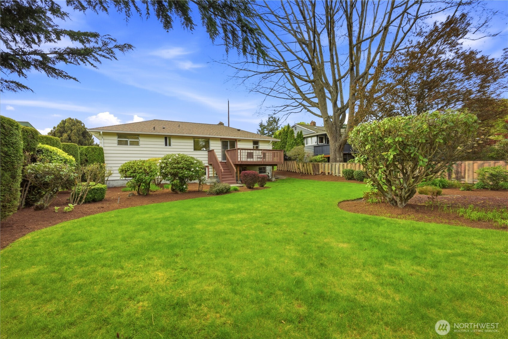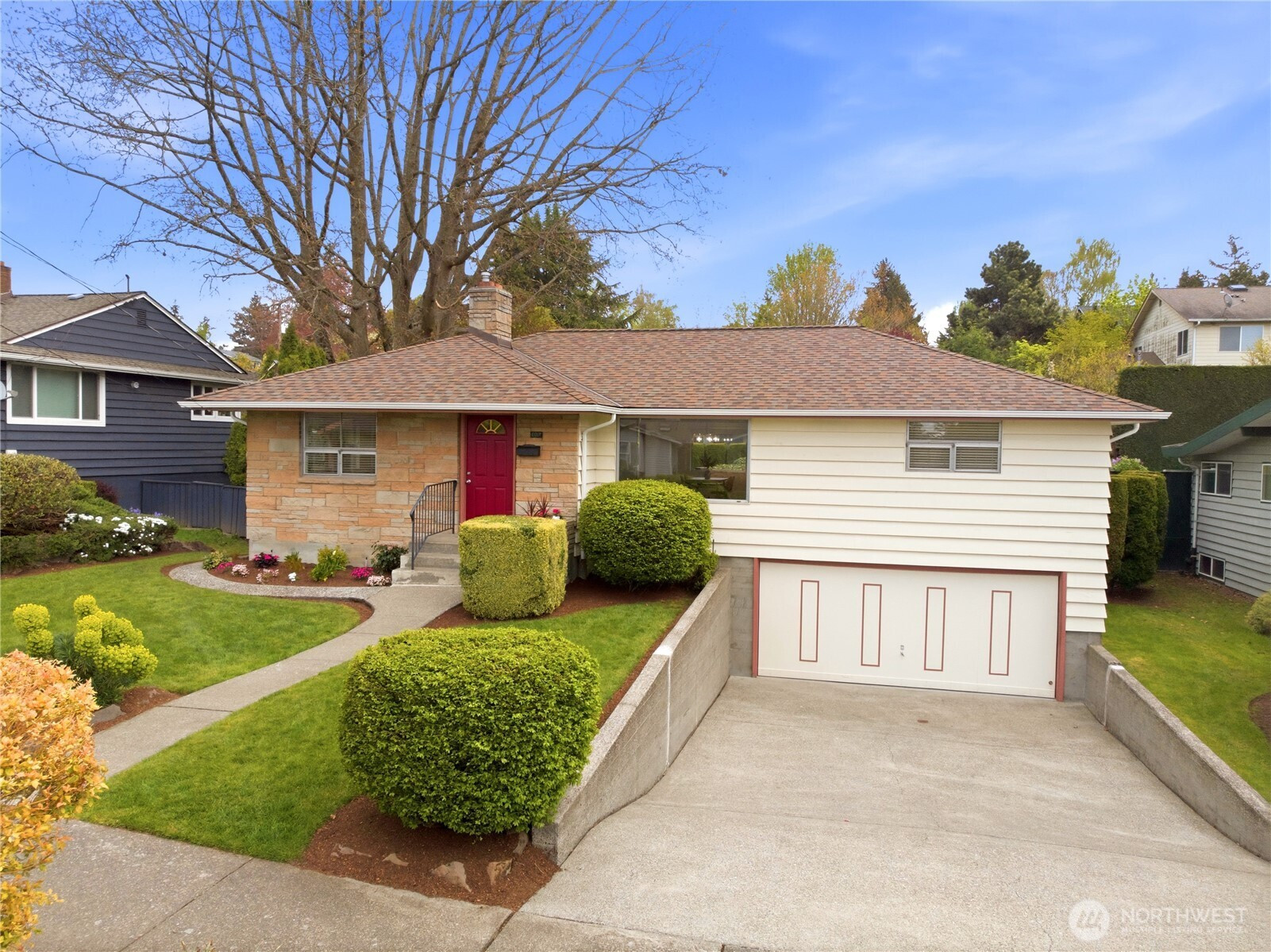 Life is easy in this stylish 3-bedroom, 1-bath mid-century home in the heart of Maple Leaf! Set on a beautifully landscaped 9,214 square foot lot, this property offers flexibility for today and opportunity for tomorrow. Enjoy comfortable living as-is, reimagine the lower level for added finished living space, or explore future development potential (buyer to verify). Recent updates include a newer roof, newer furnace, repaired sewer line and decommissioned oil tank. Inside, you’ll find lovely oak hardwood floors, a wood-burning fireplace, a remodeled bathroom, fresh interior paint and a bright, open living and dining area. The kitchen features refinished parquet floors and easy access to a large back deck—perfect for entertaining or relaxing. The lower level offers a rec room with new carpet and paint, plus a spacious utility/storage area ready for expansion. A 2-car garage with workshop space adds versatility. This wonderful home is located just a short stroll to Maple Leaf Reservoir Park, neighborhood cafés, shops and dining, with easy access to multiple bus lines, Northgate Light Rail, I-5, 99 and Green Lake. Seller provided inspection and sewer scope available. A well-maintained classic offering endless potential!