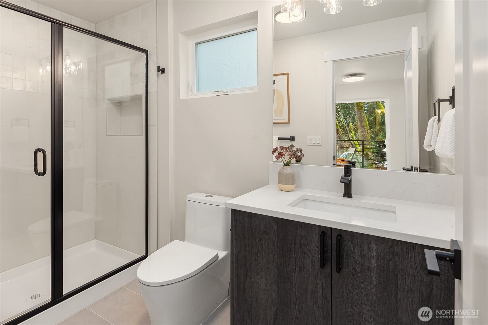 Ashworth Homes presents this thoughtfully-designed new residence near Green Lake. Nestled in the trees on a quiet street, this home checks all the boxes. Light-filled open-concept living and kitchen with slider to private, fenced patio and yard. Second level offers bedroom, full bath and laundry. Primary suite occupies the full top floor, with private deck, walk in closet and bath. Bedrooms on individual levels perfect for roommate or separation with WFH. Central location sites you approximately 1/2 mile to eateries and recreation at Green Lake. Plus, 1 mile to Northgate Link Light Rail and quick I-5 access for simple commute options.