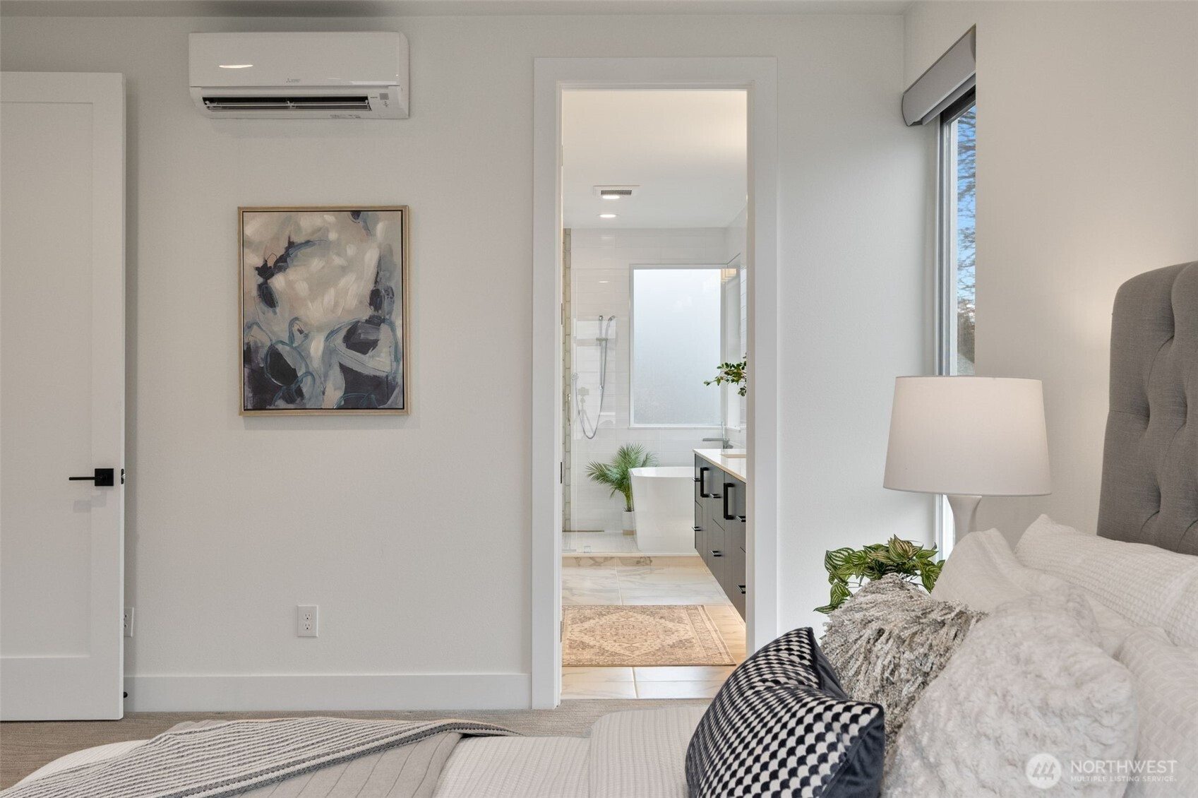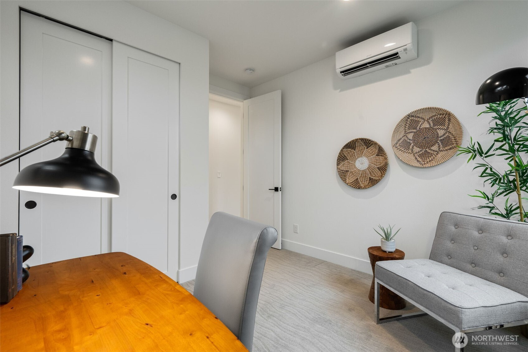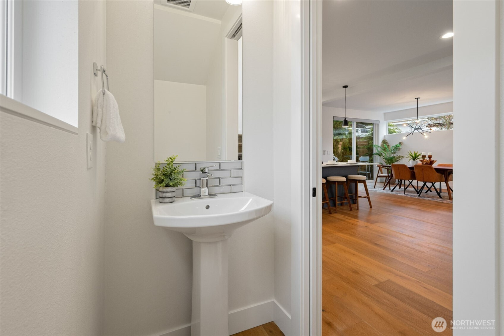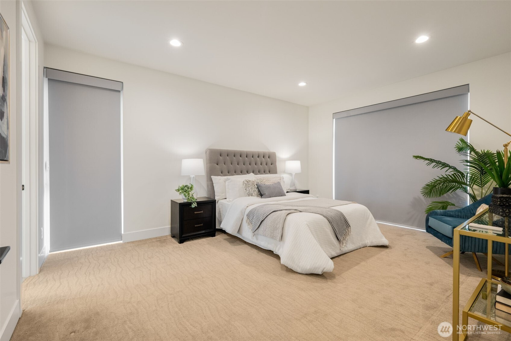 A standout in the world of new construction, this custom home delivers style, scale, and thoughtful detail. Over 2000 sqft on just 2 levels, there is a gracious feeling to all the spaces. The main level features a true great room with soaring ceilings, engineered hardwoods and floor-to-ceiling windows pulling in western light. The kitchen is centered around a large island with seating for four, quartz counters, glass tile, a gas cooktop and a walk-in pantry. The dining room flows out to a patio with large sliders and on the other side is an oversized living room corner with a gas fireplace. Upstairs, the primary suite has room to lounge and features a walk-in closet with built-in California Closets, luxe five-piece bath with heated floors, double vanity, soaking tub and rain shower. Two more bright bedrooms, a guest bath, a proper laundry room with ample storage—plus a wide landing that easily fits a home office setup. Mini-splits throughout gives eco- friendly heat and air + Lutron auto-shades and smart light switches. The top floor opens to a 1000sqft rooftop deck, stubbed for gas and plumbed for an outdoor kitchen. Two parking spaces ready for EV charging. A few blocks to 2 express bus routes, close to great parks- Westcrest + Riverview, a 10 min walk to neighborhood faves Fresh Flours and Can Bar, convenient to Westwood Village shopping and 2 miles to Lincoln Park and Puget Sound. Come experience a new build that stands apart!