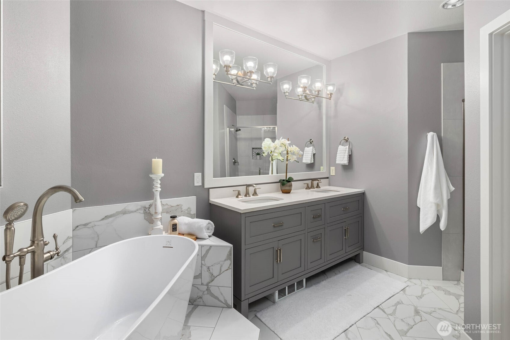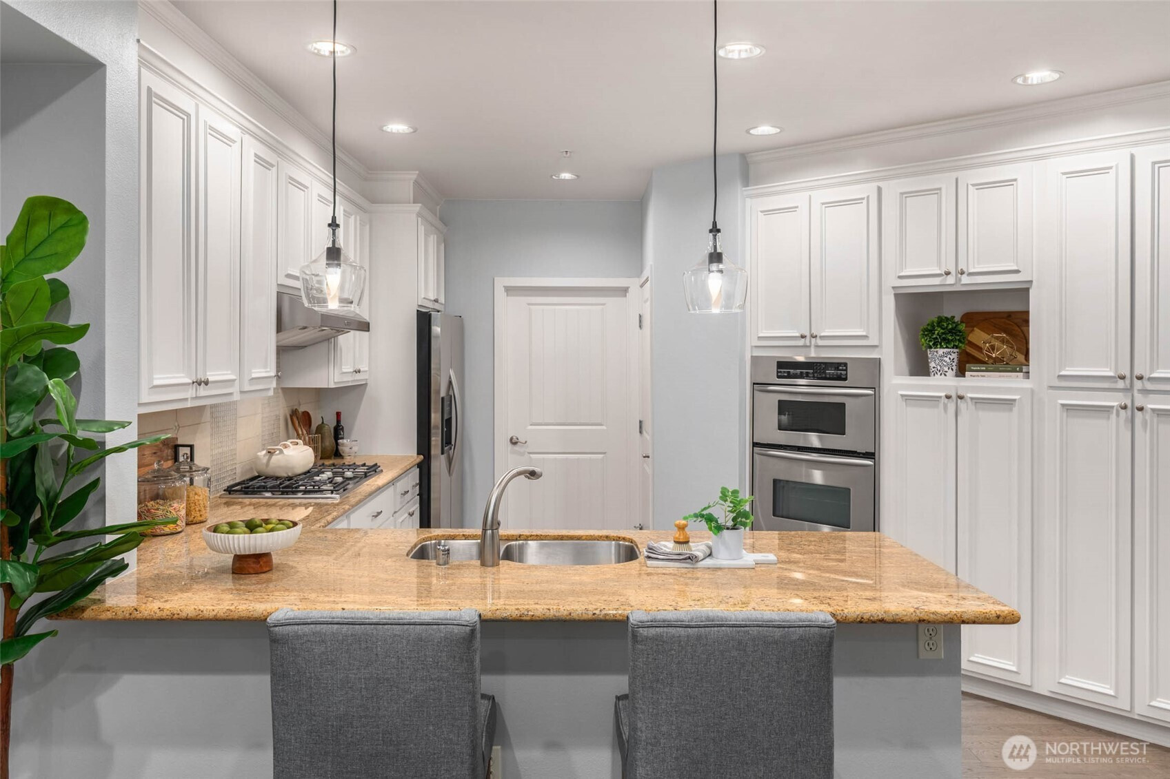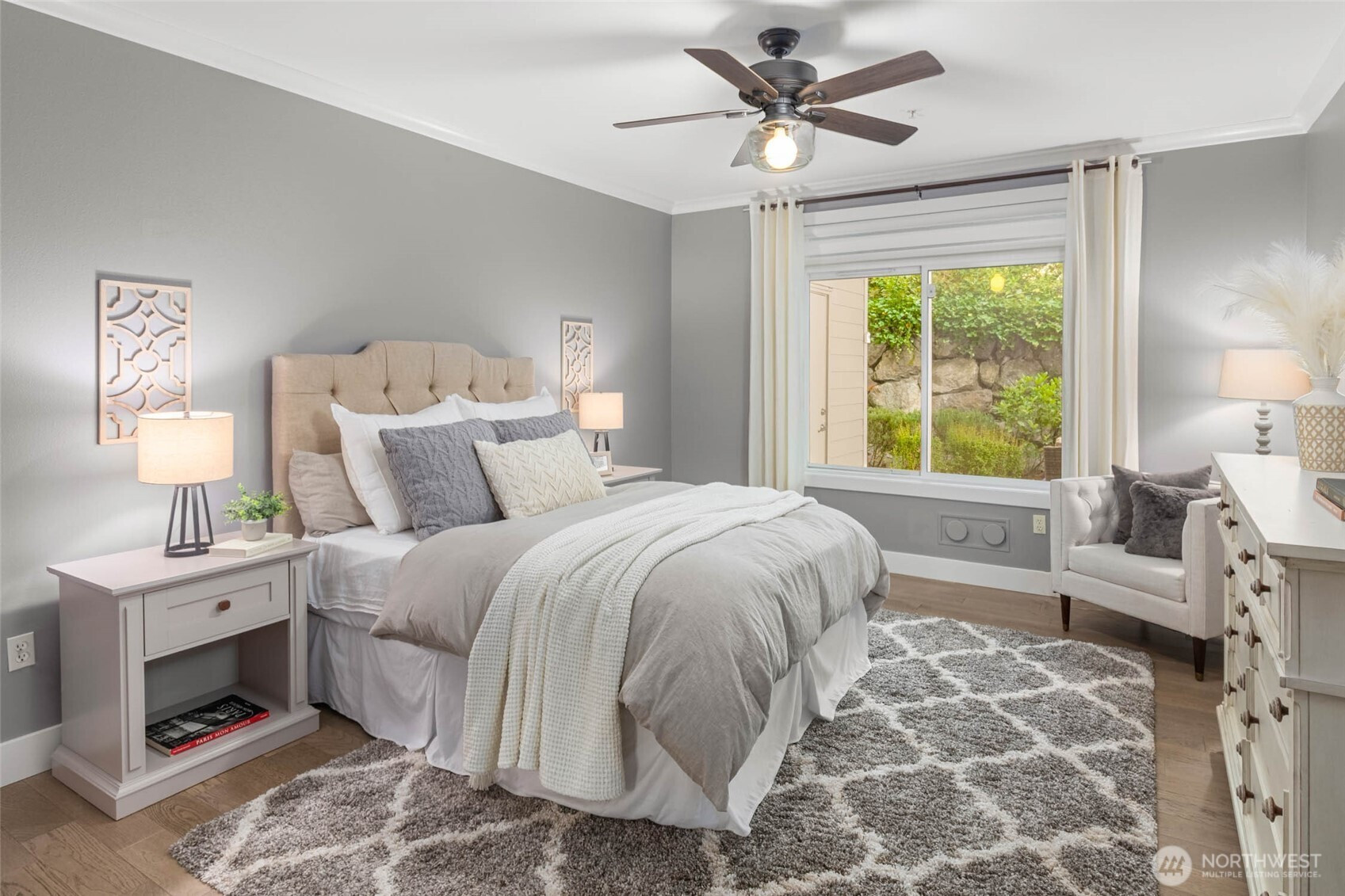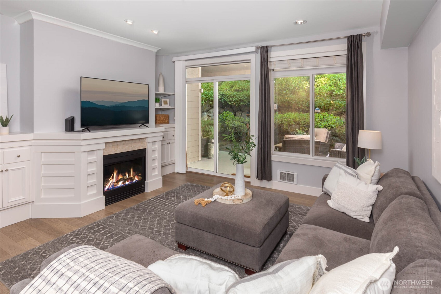 A rare blend of space, style, and location in the heart of downtown Redmond. This 1-bedroom condo with a spacious flex room lives like a true two-bedroom, offering 1,347 sq ft of beautifully updated living with hardwood floors throughout and an airy, open layout. The oversized kitchen flows seamlessly into a bright living area and out to a private back patio—your own outdoor escape. The generous flex room is perfect as another room for guests, a home office, or fitness space. The updated primary suite features a spa-inspired bath and walk-in closet. Located in desirable Towne Pointe, just moments from dining, parks, trails, and all that downtown Redmond has to offer.