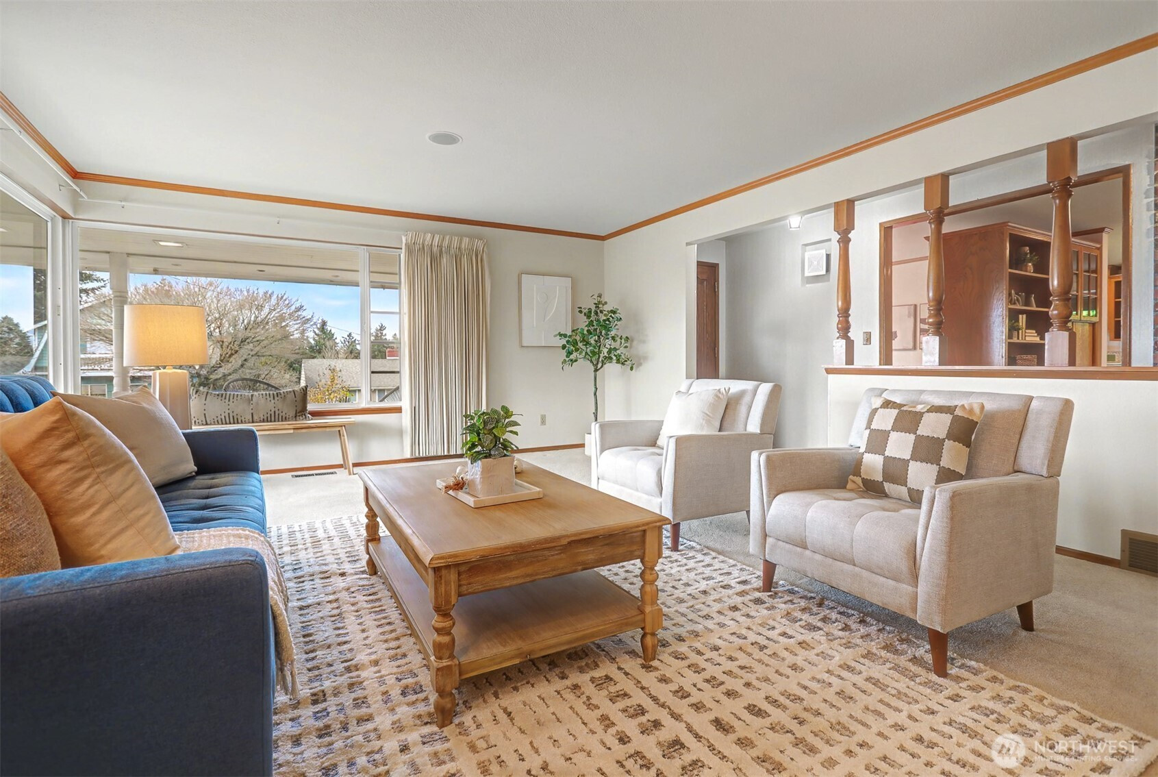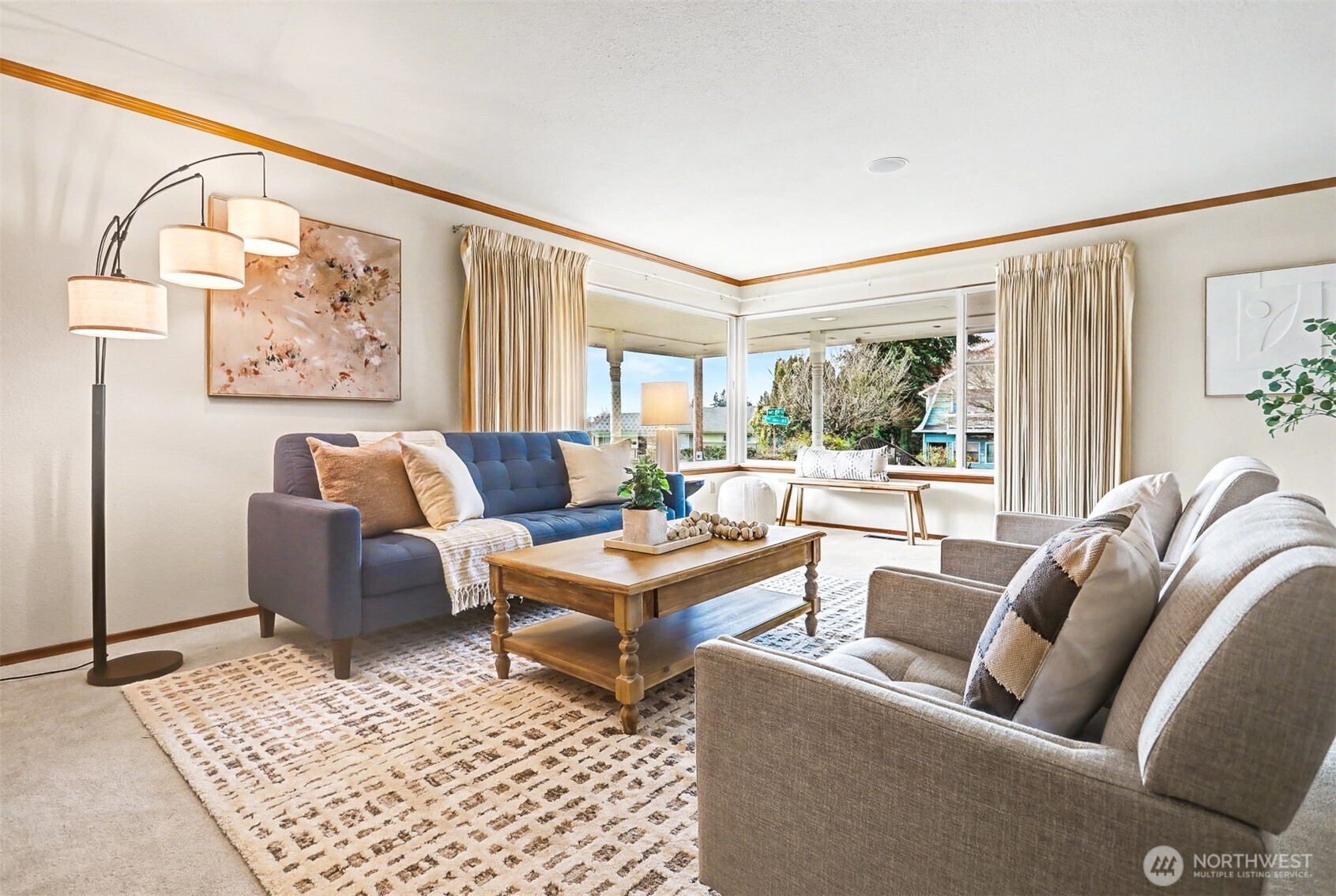 This timeless corner-lot home was thoughtfully designed by its original owner, who lovingly cared for it since 1964. Nestled in one of Seattle’s most beloved, neighborhoods, where neighbors know one another and truly grow together. This 5-bedroom home is ready for its next chapter. The welcoming front porch sets the tone for the lifestyle this home offers. Enjoy morning coffee and summer sunsets with neighbors. The sun-drenched yard is a perfect setting for a thriving garden. The main level offers an inviting flow, anchored by a gracious living room with corner windows that fill the space with natural light. The kitchen features generous counter space and opens to a breakfast nook and comfortable family room with a cozy fireplace and skylight. Just off the kitchen, the dining room showcases a charming built-in buffet and opens to the front patio, ideal for al fresco dining. Two spacious bedrooms, a full bath, and a laundry room complete the main level. Upstairs, you’ll find three additional bedrooms and a bathroom. The south-facing bedroom sits high above the trees and enjoys distant southern views.The unfinished 900 sqft. basement, with an exterior entrance, is ready for your vision. An oversized attached two-car garage provides direct entry into the home. Located in the heart of Maple Leaf, you’ll enjoy nearby dining, local shops, and cafés, as well as walking paths at Maple Leaf Park. Green Lake is just minutes away, with easy access to transit for added convenience.