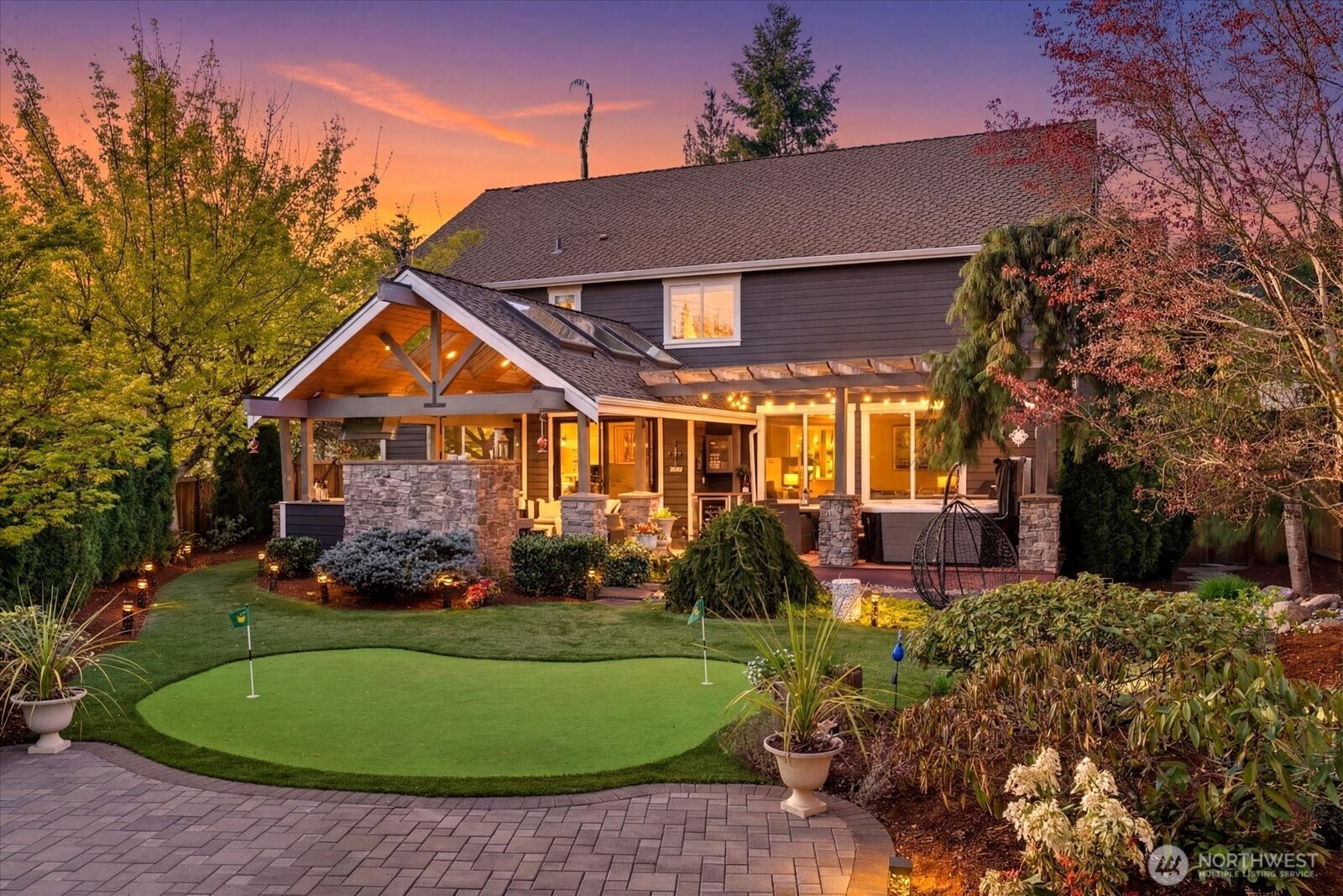 Magazine-worthy and loaded with updates galore, this standout home delivers a rare blend of design, scale, and everyday livability. From the moment you step inside, the attention to detail and elevated finishes set it apart.The chef’s kitchen is a true centerpiece, beautifully appointed with premium appliances, striking surfaces, generous bar-top seating, a butler’s pantry, and a built-in office nook that makes daily life seamless. It flows effortlessly into a large, light-filled great room anchored by a gas fireplace, creating a space that feels open, connected, and ready for everything from casual mornings to full-scale entertaining. The formal dining room adds another layer, perfectly suited for hosting with ease. Upstairs, the oversized bonus room offers incredible flexibility, ideal for movie nights, game days, or a spacious media retreat. The primary suite is a standout of its own, expansive, calming, and paired with a spa-inspired bath that feels polished, private, and truly restorative. And then there’s the backyard, easily one of the home’s most compelling features with a tranquil water feature and hot tub. Fully turfed and surrounded by mature trees, it offers a level of privacy that’s hard to find and lives more like a private resort than a traditional yard. The covered outdoor living space, complete with a built-in BBQ kitchen, gas fireplace, and expansive seating, extends the home in a way that feels natural and intentional, perfect for year-round use.