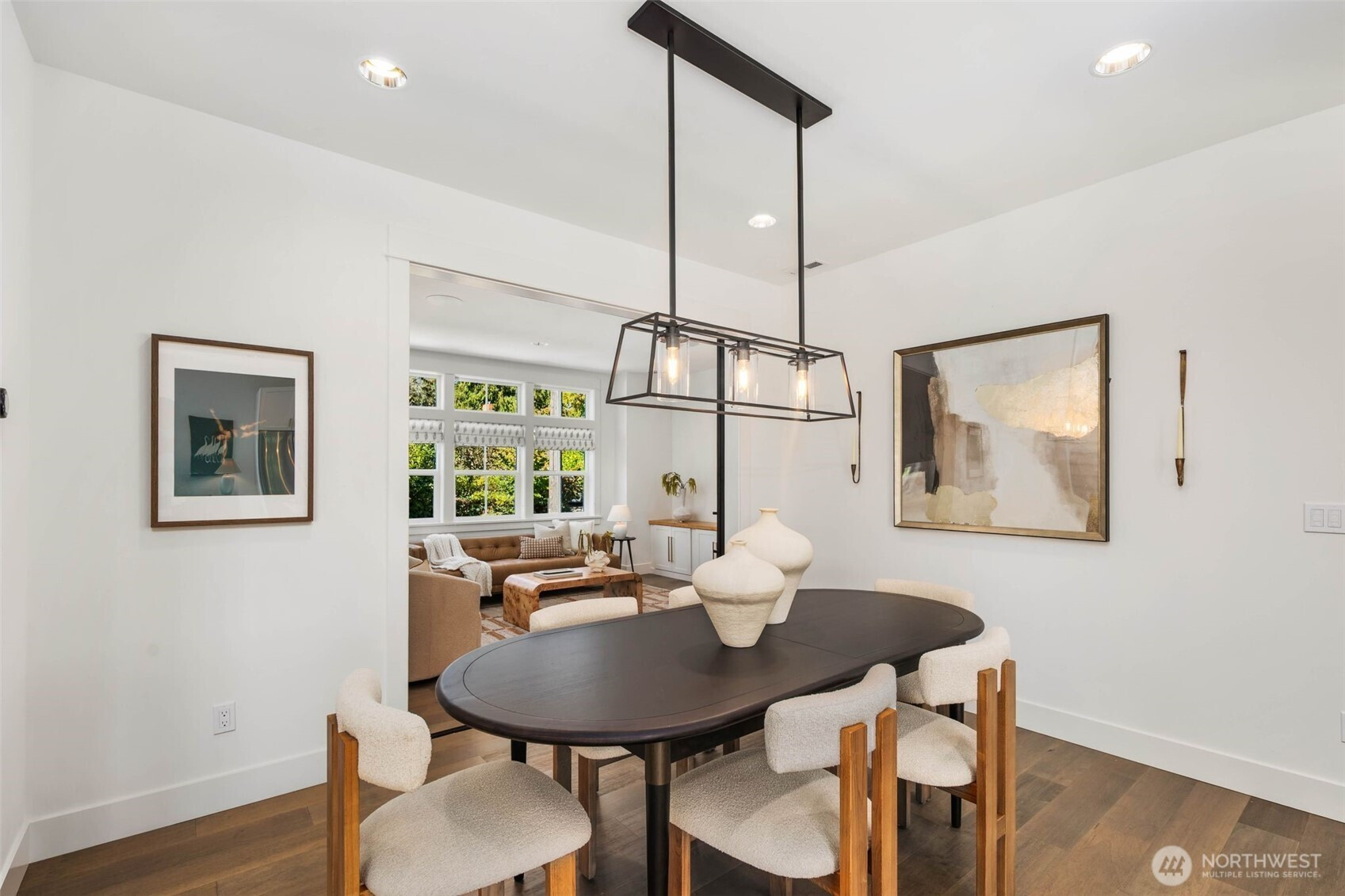 Eastern exposure fills this home with natural light & captures stunning sunrises over The Cascades and Mt. Rainier. The main floor features an open floor plan with gourmet kitchen, walk-in pantry and living room opening up to a spacious deck, plus a bonus room ideal for an office or playroom. Upstairs you’ll find three bedrooms on one level, including a primary suite with dual walk-in closets & spa bath. The lower level offers a rec room, guest suite, & covered patio for staying dry while enjoying the large backyard. Rare oversized 2-car garage with EV charging and storage. Built in speakers, central AC, & Lutron lighting system with smart-home features allow you to effortlessly control the temperature, lighting, & sound from anywhere.