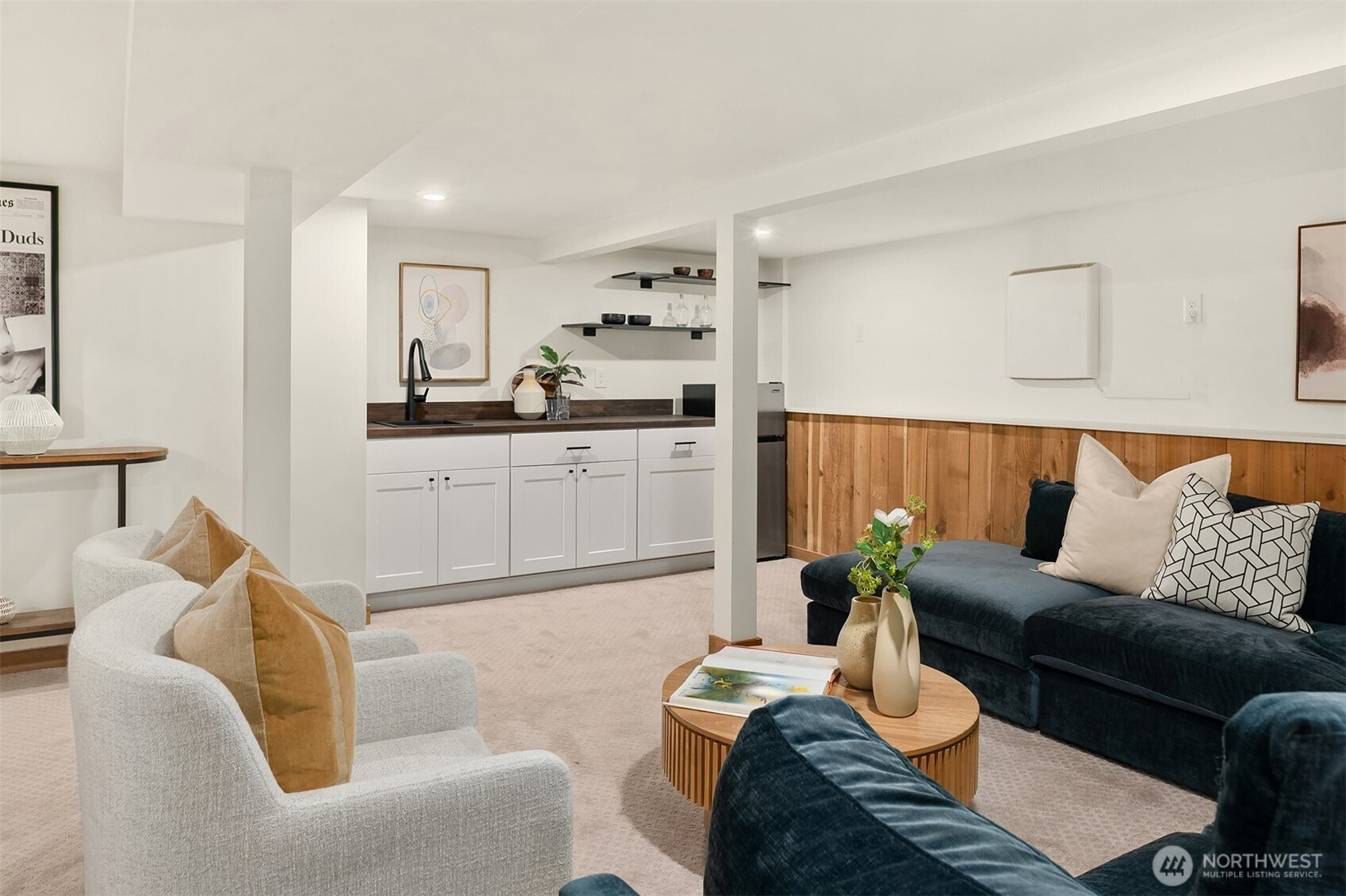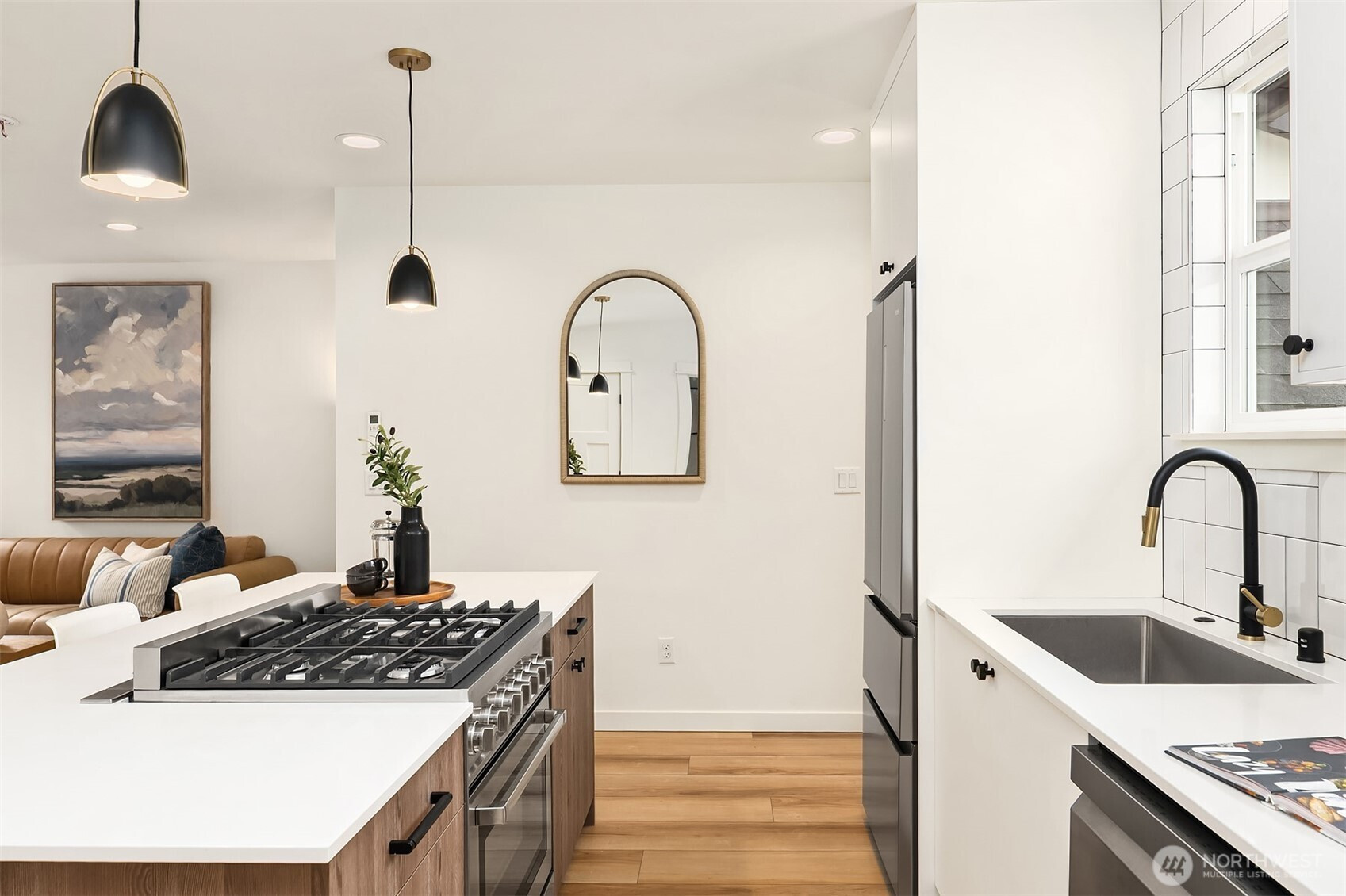 Set in the heart of Maple Leaf, this fully updated home blends classic Seattle character with a clean, modern finish. Thoughtfully remodeled throughout, it features custom cabinetry, designer tile and high-end fixtures, centered around a chef’s kitchen with a premium gas range, designed for both everyday living and entertaining. The main level is bright and inviting, with great natural light, an easy flow and functional built-ins. Downstairs features a spacious flex area with its own mini kitchen, offering ideal separation for a home office, gym, media room, or bonus living space, along with ample storage to keep things organized. Outside, enjoy a manageable yard with space to relax, garden, or host, all while maintaining a sense of privacy. Just minutes to parks, playfields, walking trails and neighborhood favorites, with easy access to I-5 for a smooth commute. Turnkey, well-designed and versatile, this is the kind of Maple Leaf home buyers have been waiting for.