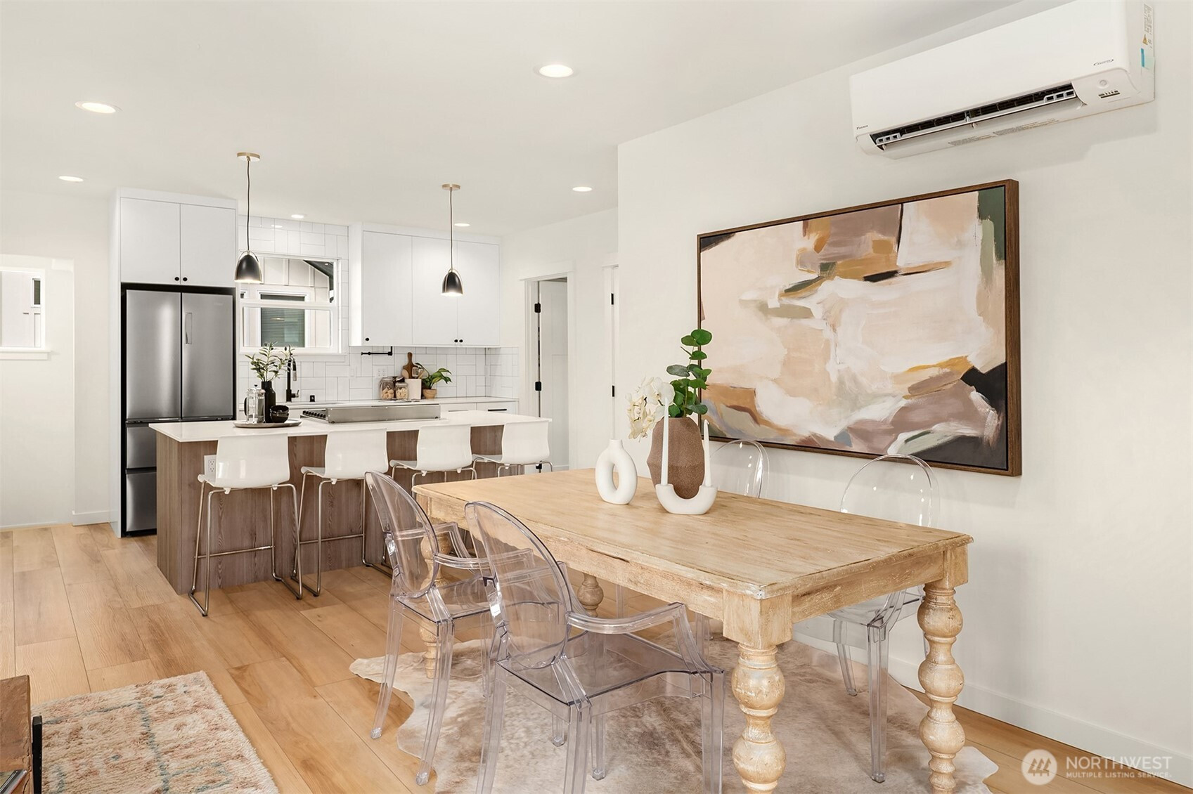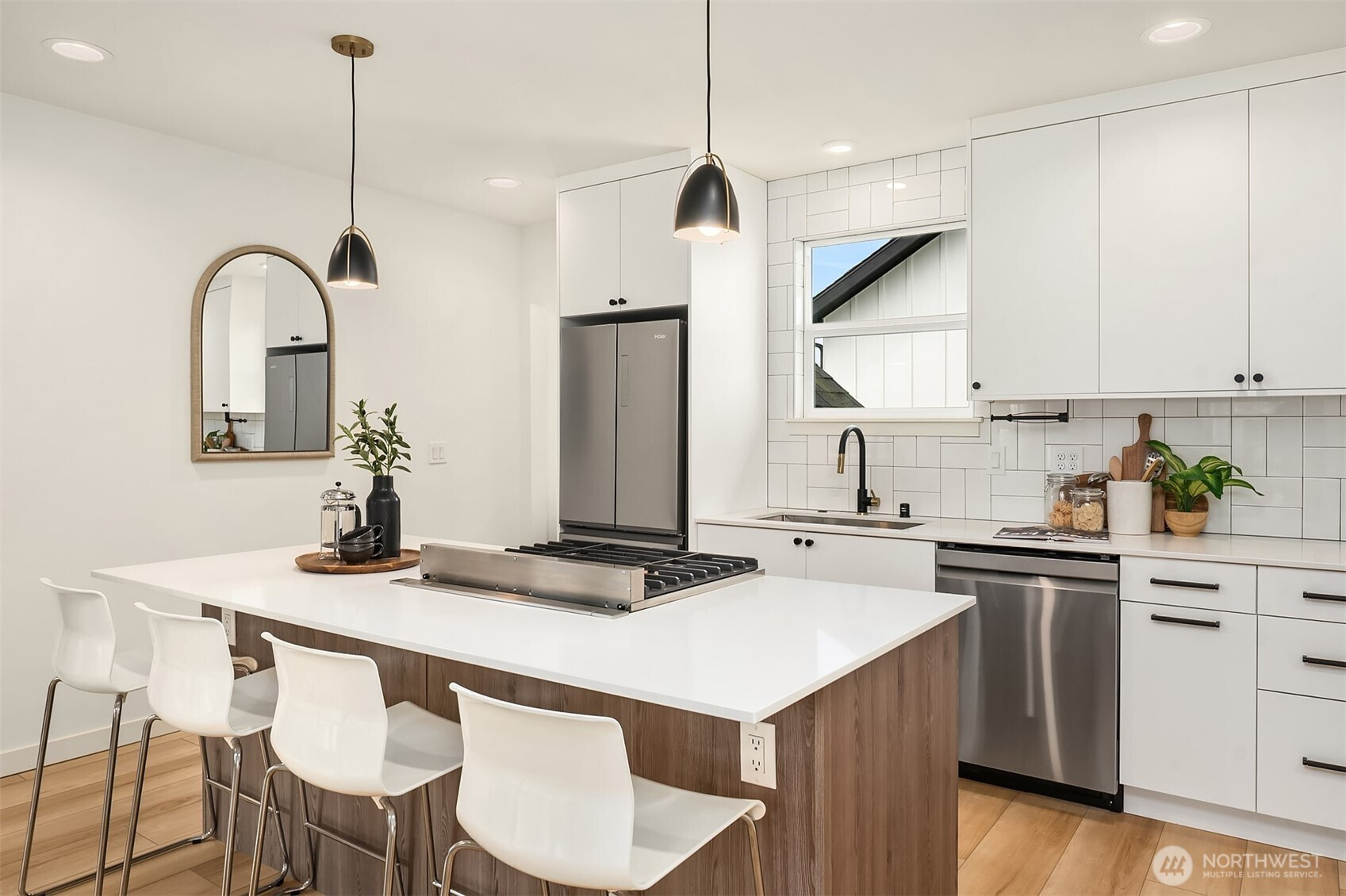 Set in the heart of Maple Leaf, this fully updated home blends classic Seattle character with a clean, modern finish. Thoughtfully remodeled throughout, it features custom cabinetry, designer tile and high-end fixtures, centered around a chef’s kitchen with a premium gas range, designed for both everyday living and entertaining. The main level is bright and inviting, with great natural light, an easy flow and functional built-ins. Downstairs features a spacious flex area with its own mini kitchen, offering ideal separation for a home office, gym, media room, or bonus living space, along with ample storage to keep things organized. Outside, enjoy a manageable yard with space to relax, garden, or host, all while maintaining a sense of privacy. Just minutes to parks, playfields, walking trails and neighborhood favorites, with easy access to I-5 for a smooth commute. Turnkey, well-designed and versatile, this is the kind of Maple Leaf home buyers have been waiting for.