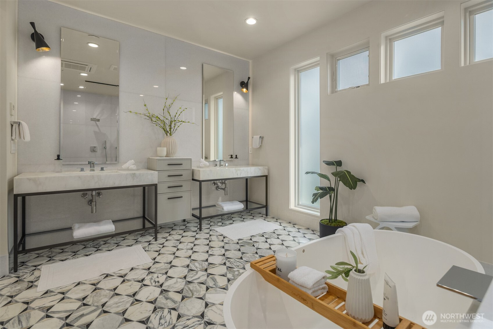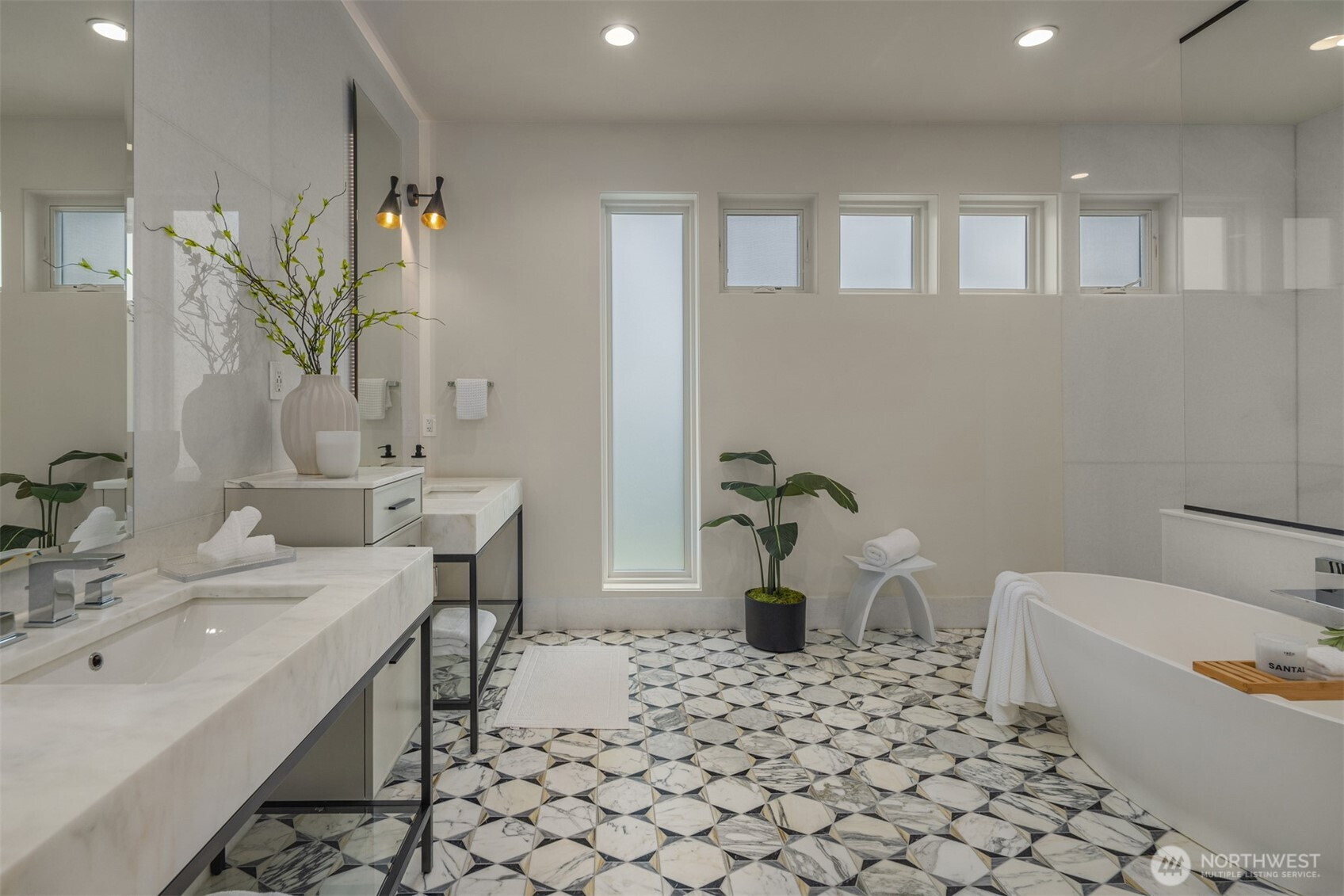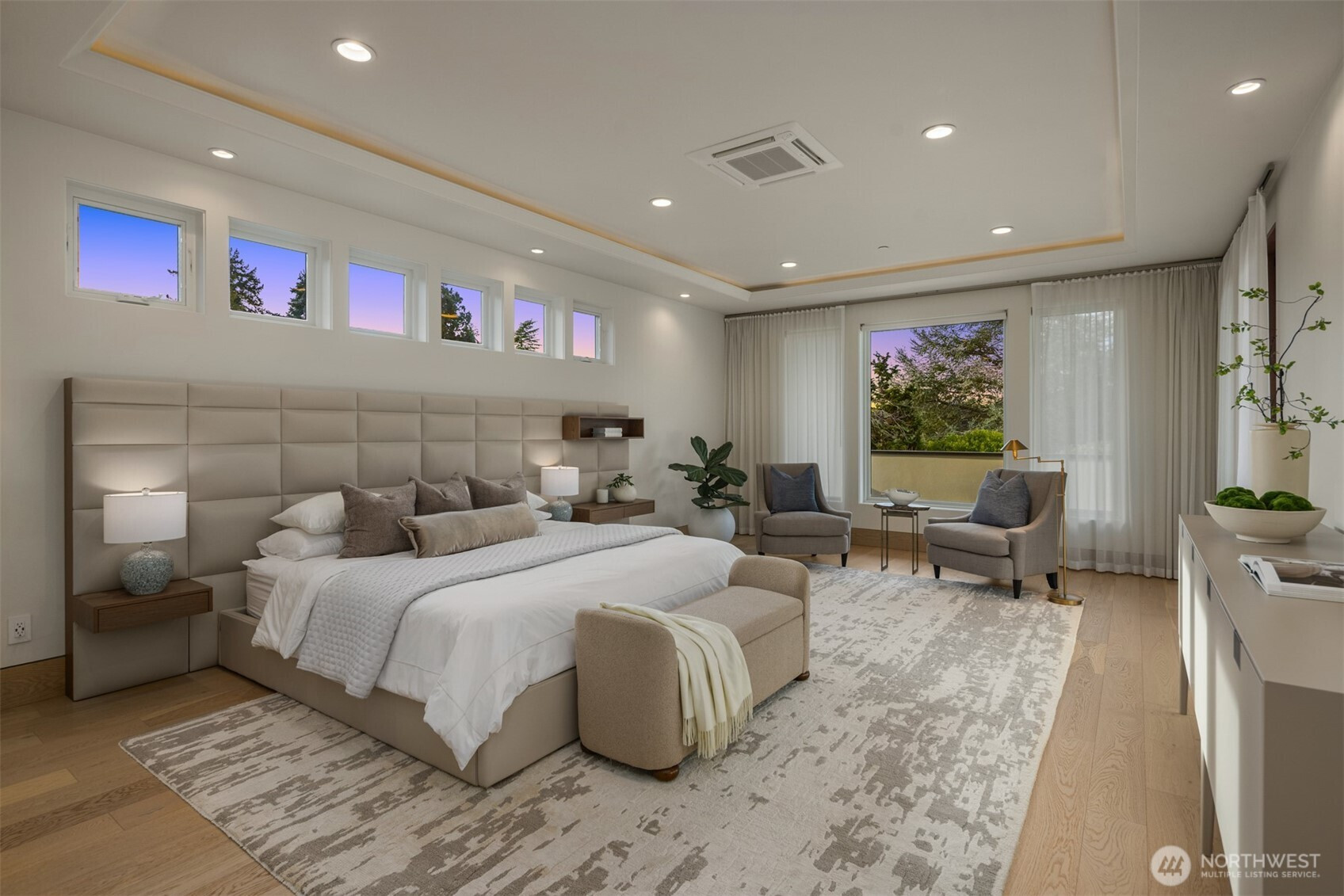Exceptional custom luxury in the heart of Yarrow Point, this Wayne Dake–built residence offers sweeping views from the rooftop deck and main living areas, enhancing the sense of scale and serenity. This 6,019 sq ft home sits on a 0.347-acre landscaped lot and has undergone a meticulously executed two-million-dollar enhancement, elevating its craftsmanship, technology, and overall living experience. The property offers 5 bedrooms and 5.5 baths with extensive high-end upgrades throughout. Highlights include a spa-like primary suite with heated floors, curated Ann Sacks tilework, custom marble, fully remodeled baths with steam shower, an Ortal fireplace, hardwood floors, and bespoke built-ins. Modern systems include near net-zero solar with battery backup, micro-split climate control in every room, whole-house audio, a media room with 4K projector, enterprise-level networking, and comprehensive security. Smart lighting, an EV charger, a wine room, and lush grounds complete this exceptional offering. A rare opportunity to experience refined luxury living mere minutes from Bellevue, with effortless access to Seattle’s urban conveniences.