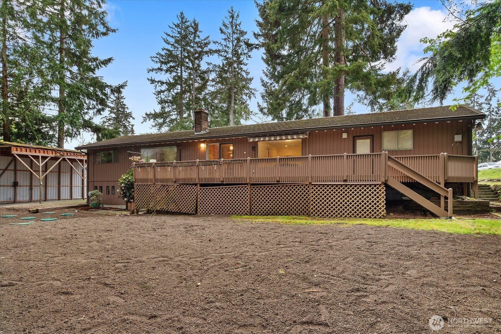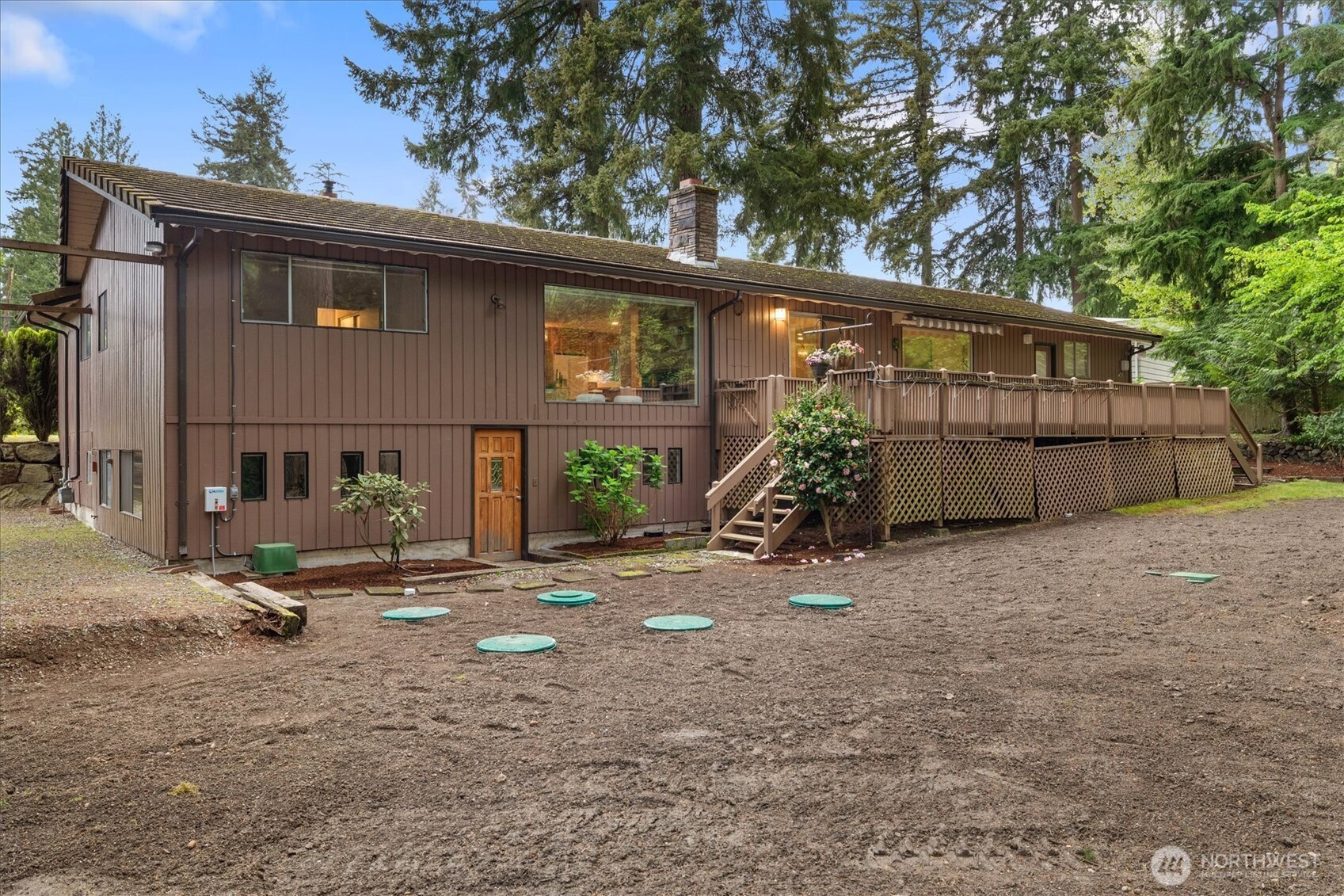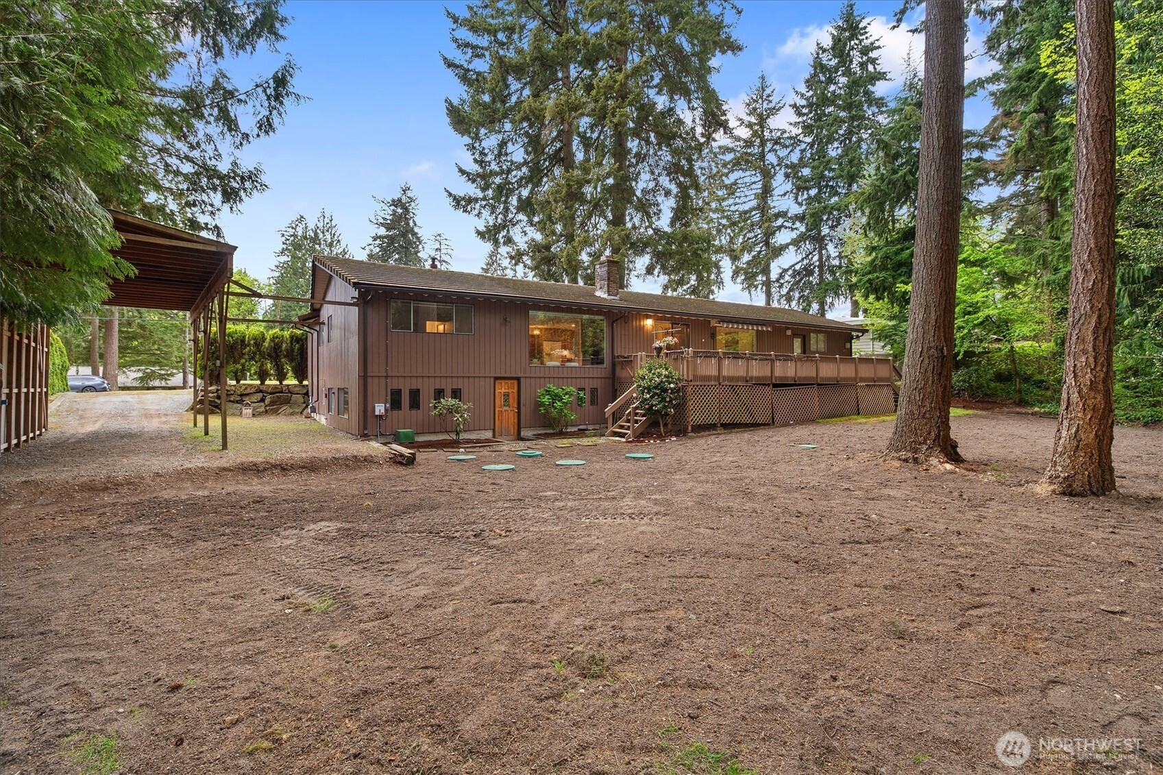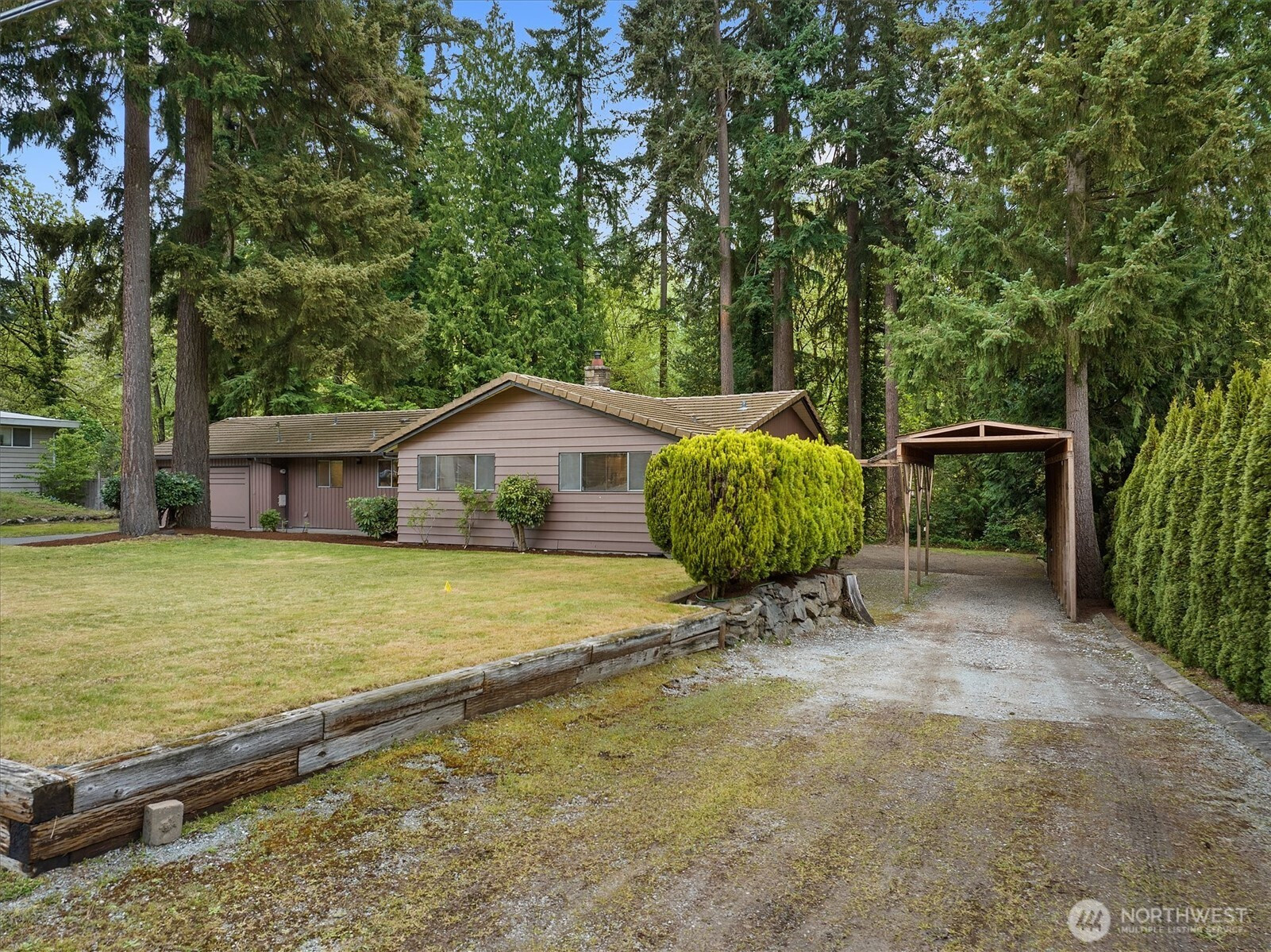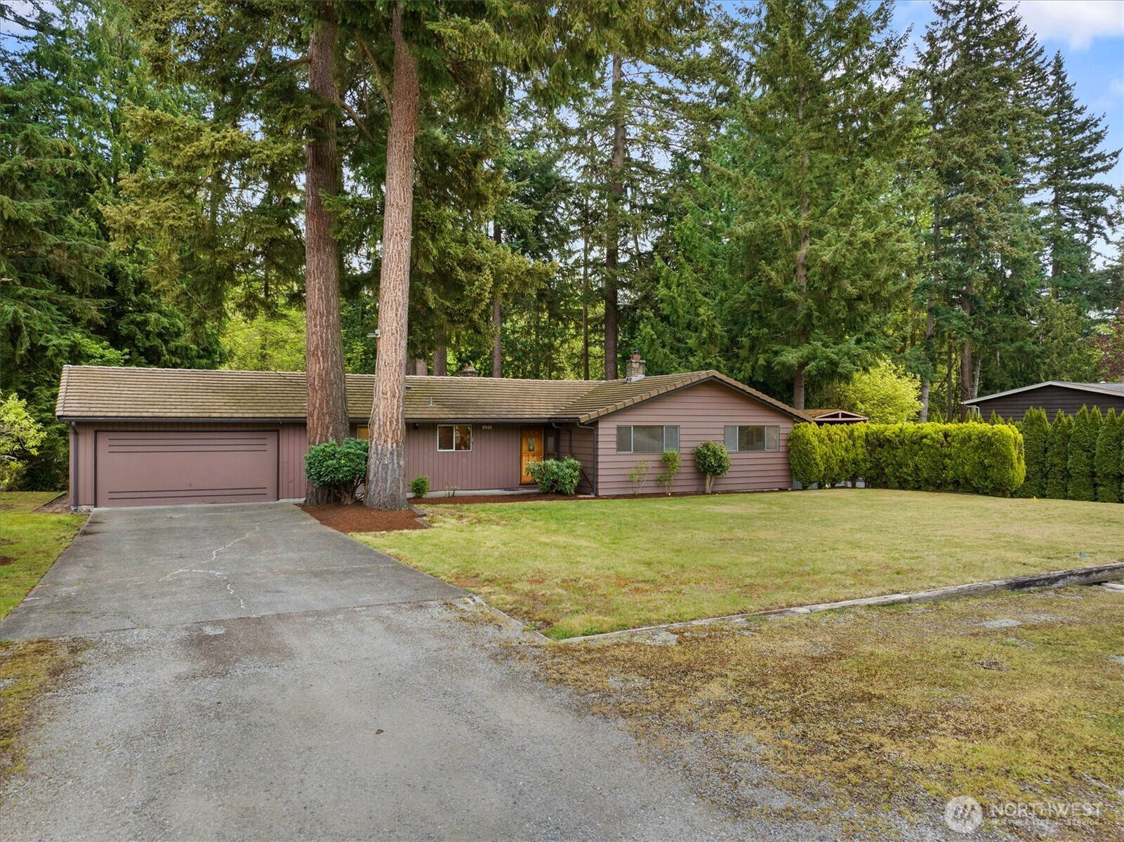 Discover the ultimate opportunity in this Newcastle 1-story w/daylight basement, set on a spacious lot w/wide front yard & long driveway. Inside, original oak hardwood floors flow throughout the main level—preserved beneath the carpet—adding warm, timeless character. The light-filled living room invites you to relax w/large picture window & cozy fireplace w/beautiful stone surround, complete w/convenient firewood box accessible from inside & out. The kitchen offers classic wood cabinetry, gas cooktop, garden window & center island seamlessly connecting to the formal dining room. A sliding door opens to the expansive back deck, creating an effortless indoor-outdoor flow for entertaining. Just off the kitchen, the family room is surrounded by windows & provides access to the garage & functional utility room w/sink & storage. The primary suite features dual closets & private ensuite w/walk-in shower, while 2 additional bedrooms & full bath w/large vanity & shower/tub combo complete the main level. Downstairs, the basement unlocks flexibility w/finished rec room showcasing exposed beam details, half bath & its own exterior access—potential for multi-generational living. A 543sqft unfinished shop & storage area you can tailor to your needs. Outside, the oversized deck overlooks a private backyard w/garden space while a stone pathway leads to the side where a carport & long gravel drive offer ample parking. New fully-permitted electrical panel & brand new septic system. No HOA.