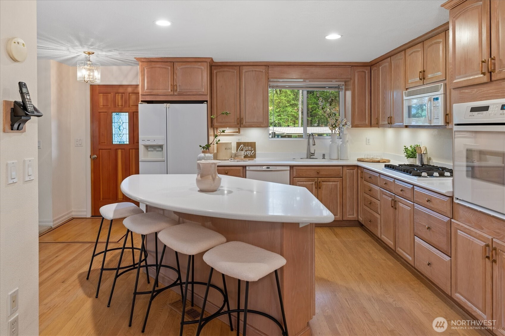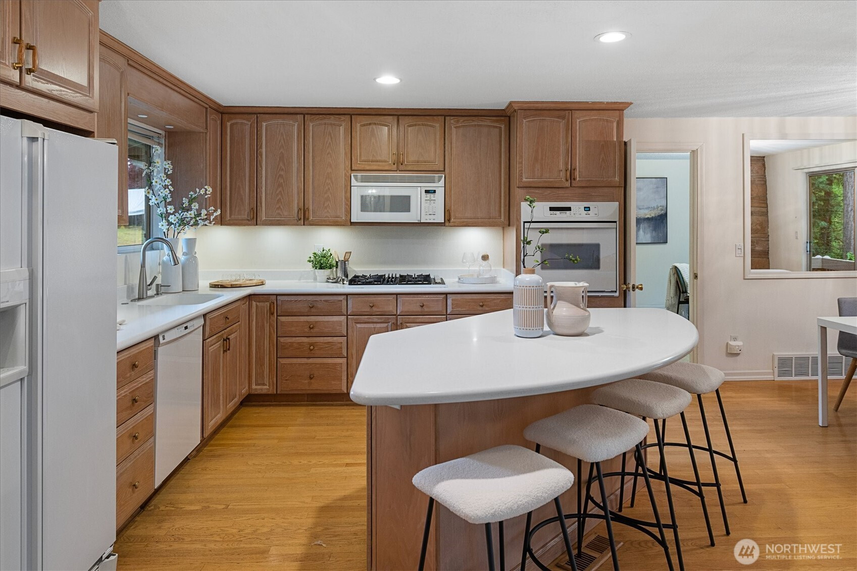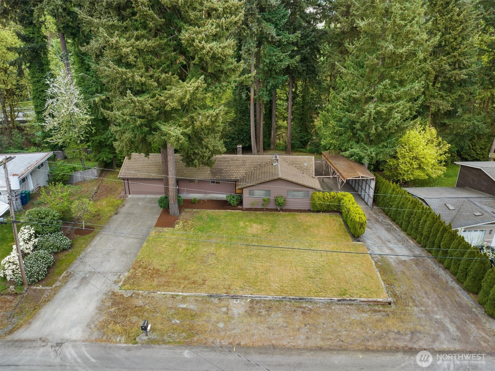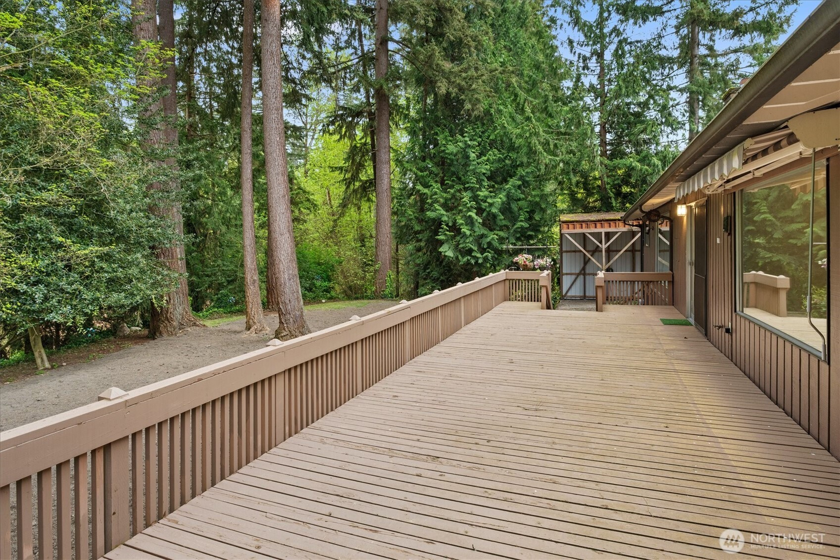 Discover the ultimate opportunity in this Newcastle 1-story w/daylight basement, set on a spacious lot w/wide front yard & long driveway. Inside, original oak hardwood floors flow throughout the main level—preserved beneath the carpet—adding warm, timeless character. The light-filled living room invites you to relax w/large picture window & cozy fireplace w/beautiful stone surround, complete w/convenient firewood box accessible from inside & out. The kitchen offers classic wood cabinetry, gas cooktop, garden window & center island seamlessly connecting to the formal dining room. A sliding door opens to the expansive back deck, creating an effortless indoor-outdoor flow for entertaining. Just off the kitchen, the family room is surrounded by windows & provides access to the garage & functional utility room w/sink & storage. The primary suite features dual closets & private ensuite w/walk-in shower, while 2 additional bedrooms & full bath w/large vanity & shower/tub combo complete the main level. Downstairs, the basement unlocks flexibility w/finished rec room showcasing exposed beam details, half bath & its own exterior access—potential for multi-generational living. A 543sqft unfinished shop & storage area you can tailor to your needs. Outside, the oversized deck overlooks a private backyard w/garden space while a stone pathway leads to the side where a carport & long gravel drive offer ample parking. New fully-permitted electrical panel & brand new septic system. No HOA.