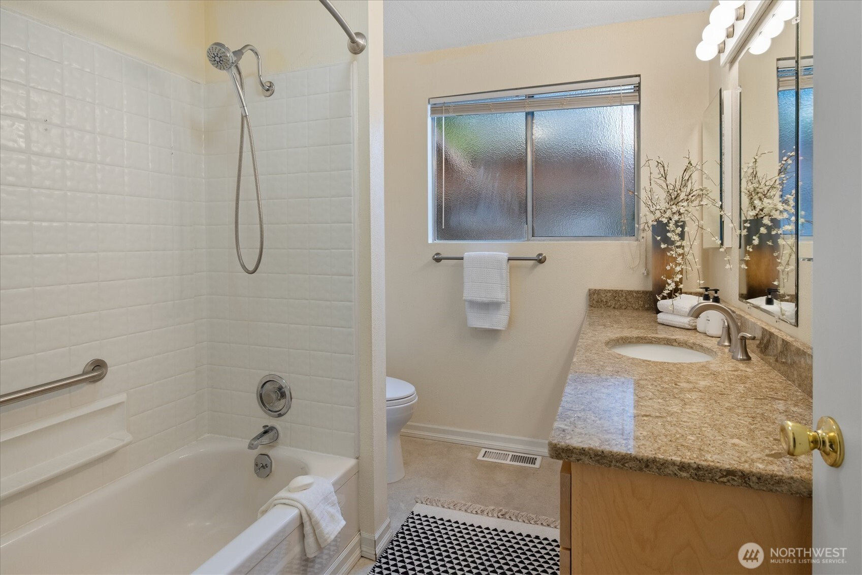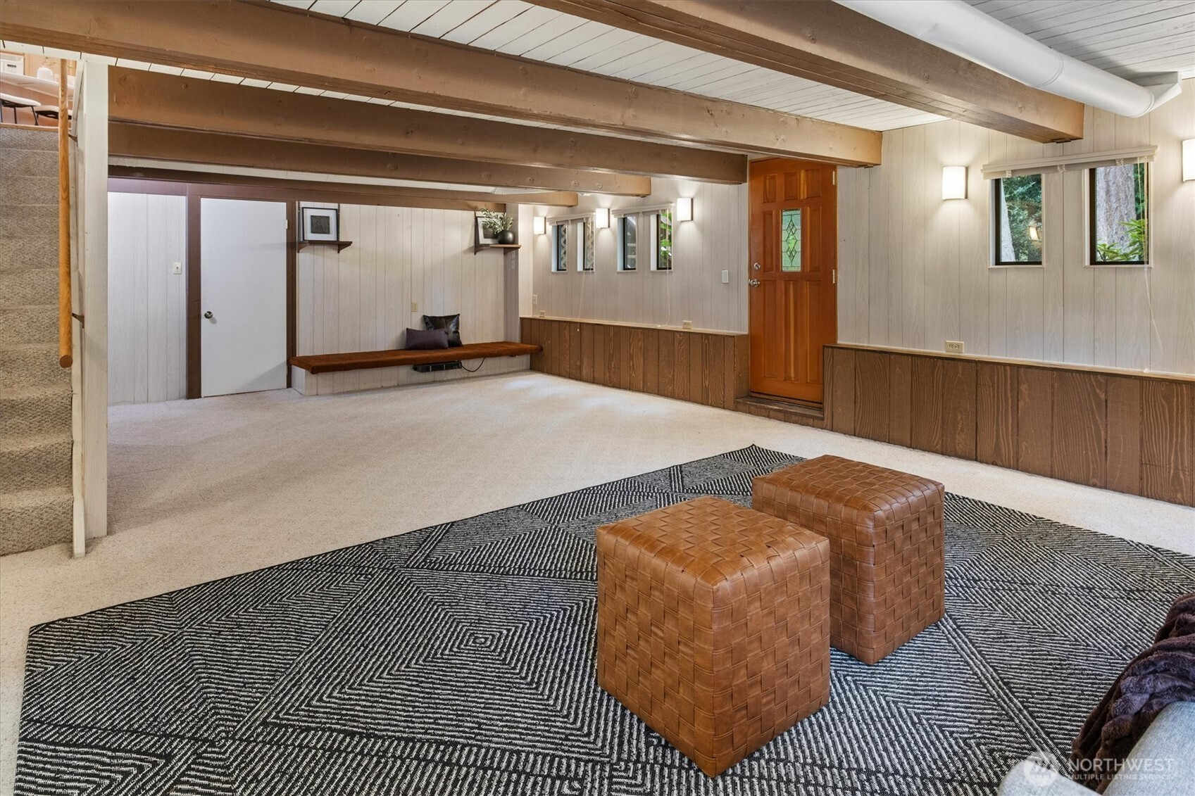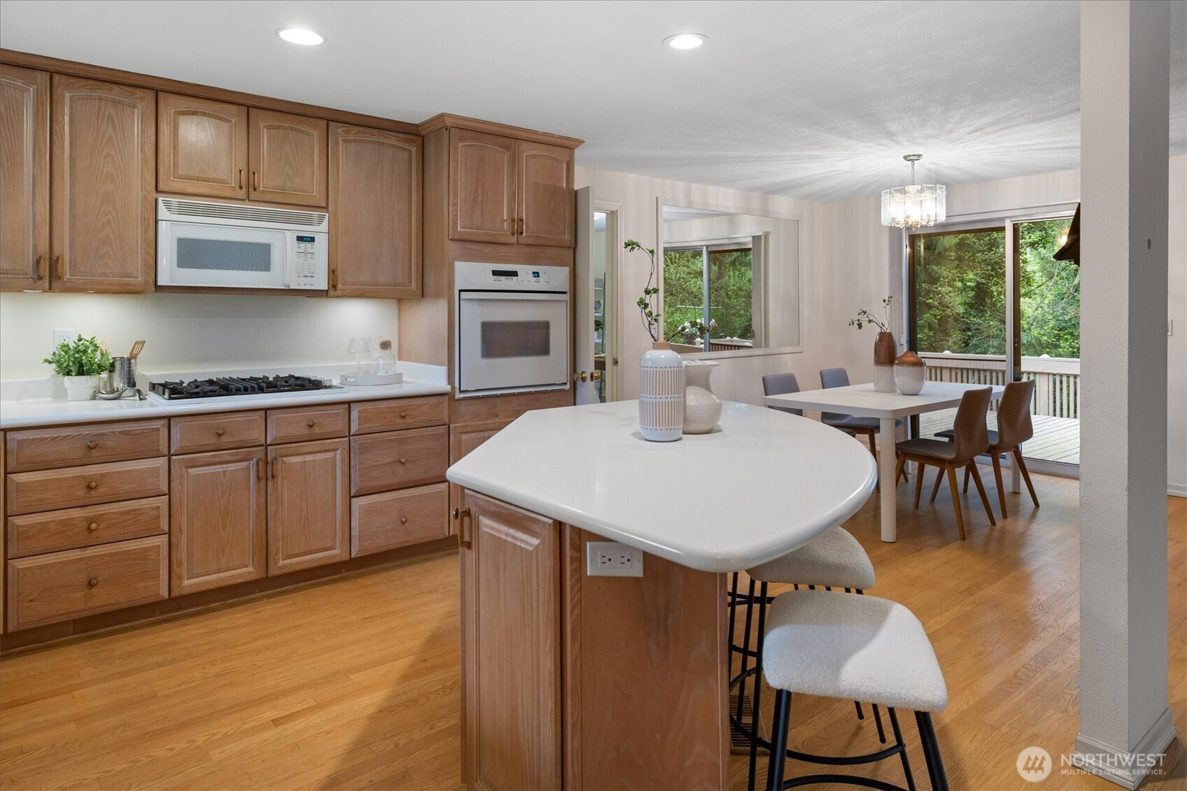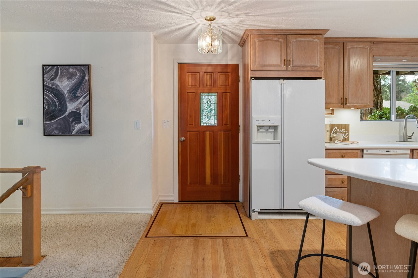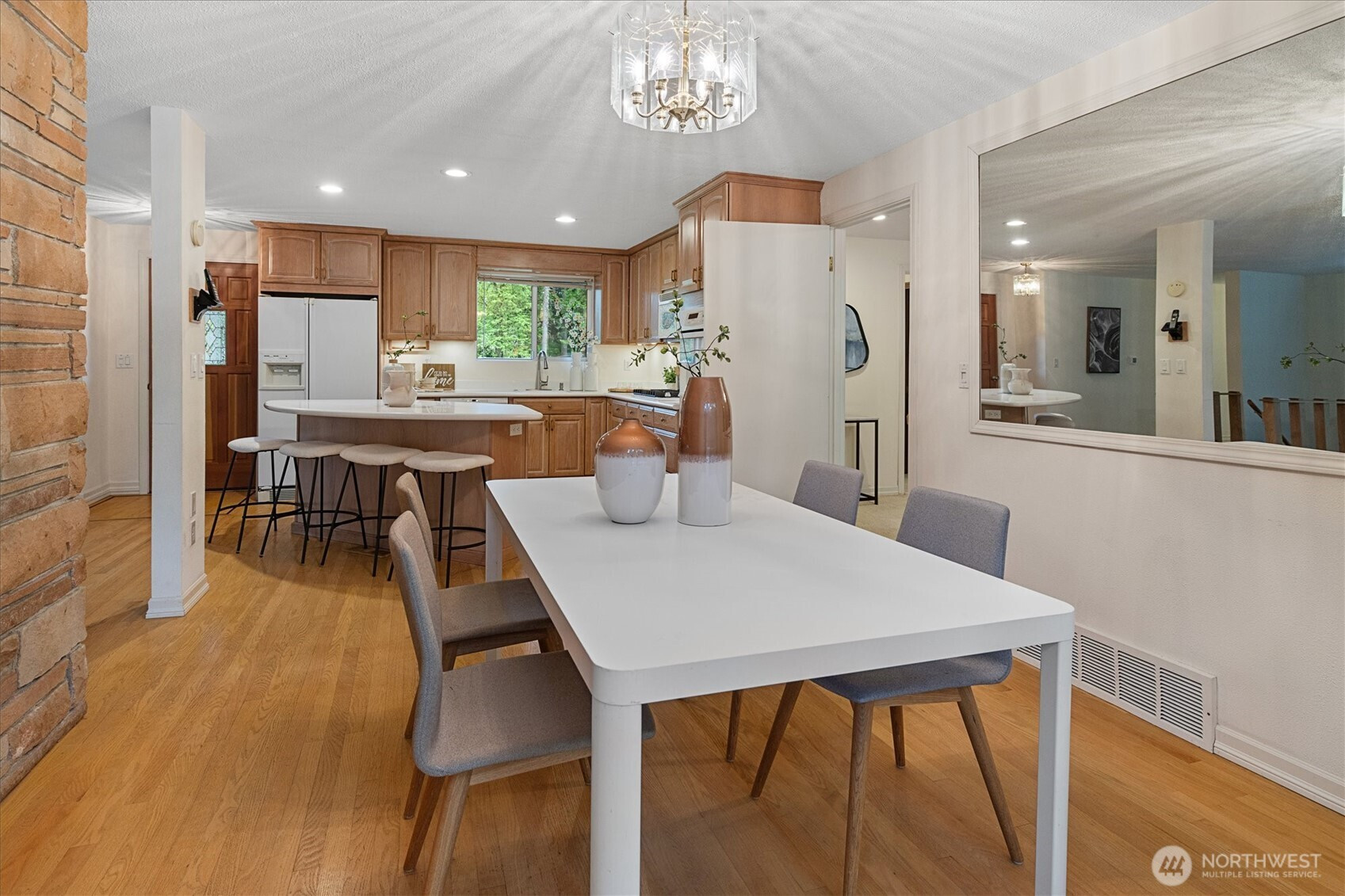Discover the ultimate opportunity in this Newcastle 1-story w/daylight basement, set on a spacious lot w/wide front yard & long driveway. Inside, original oak hardwood floors flow throughout the main level—preserved beneath the carpet—adding warm, timeless character. The light-filled living room invites you to relax w/large picture window & cozy fireplace w/beautiful stone surround, complete w/convenient firewood box accessible from inside & out. The kitchen offers classic wood cabinetry, gas cooktop, garden window & center island seamlessly connecting to the formal dining room. A sliding door opens to the expansive back deck, creating an effortless indoor-outdoor flow for entertaining. Just off the kitchen, the family room is surrounded by windows & provides access to the garage & functional utility room w/sink & storage. The primary suite features dual closets & private ensuite w/walk-in shower, while 2 additional bedrooms & full bath w/large vanity & shower/tub combo complete the main level. Downstairs, the basement unlocks flexibility w/finished rec room showcasing exposed beam details, half bath & its own exterior access—potential for multi-generational living. A 543sqft unfinished shop & storage area you can tailor to your needs. Outside, the oversized deck overlooks a private backyard w/garden space while a stone pathway leads to the side where a carport & long gravel drive offer ample parking. New fully-permitted electrical panel & brand new septic system. No HOA.