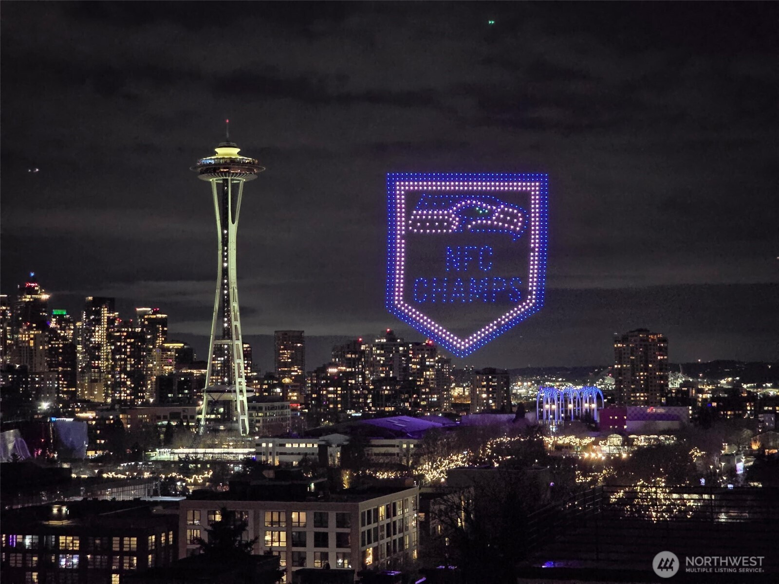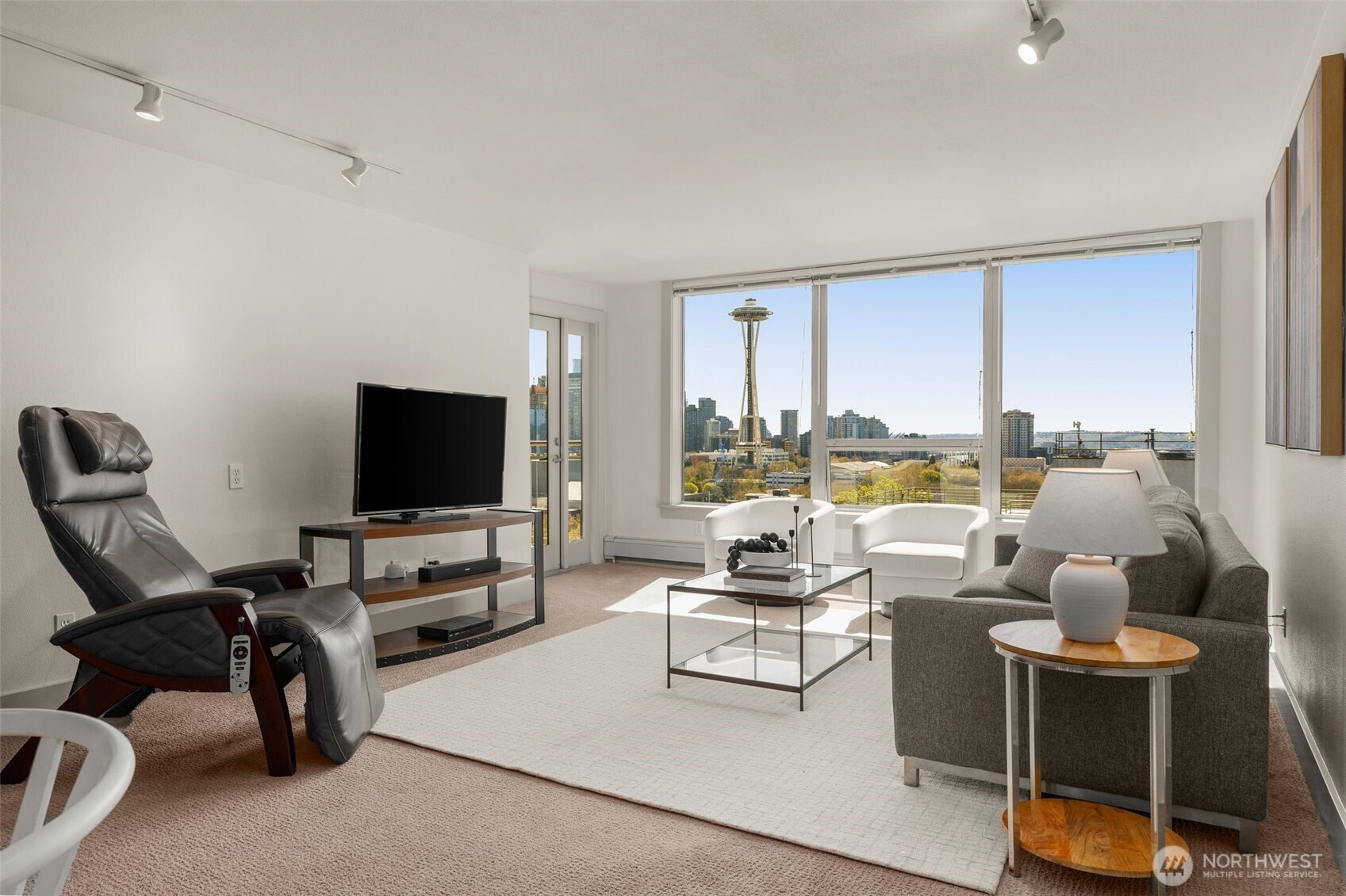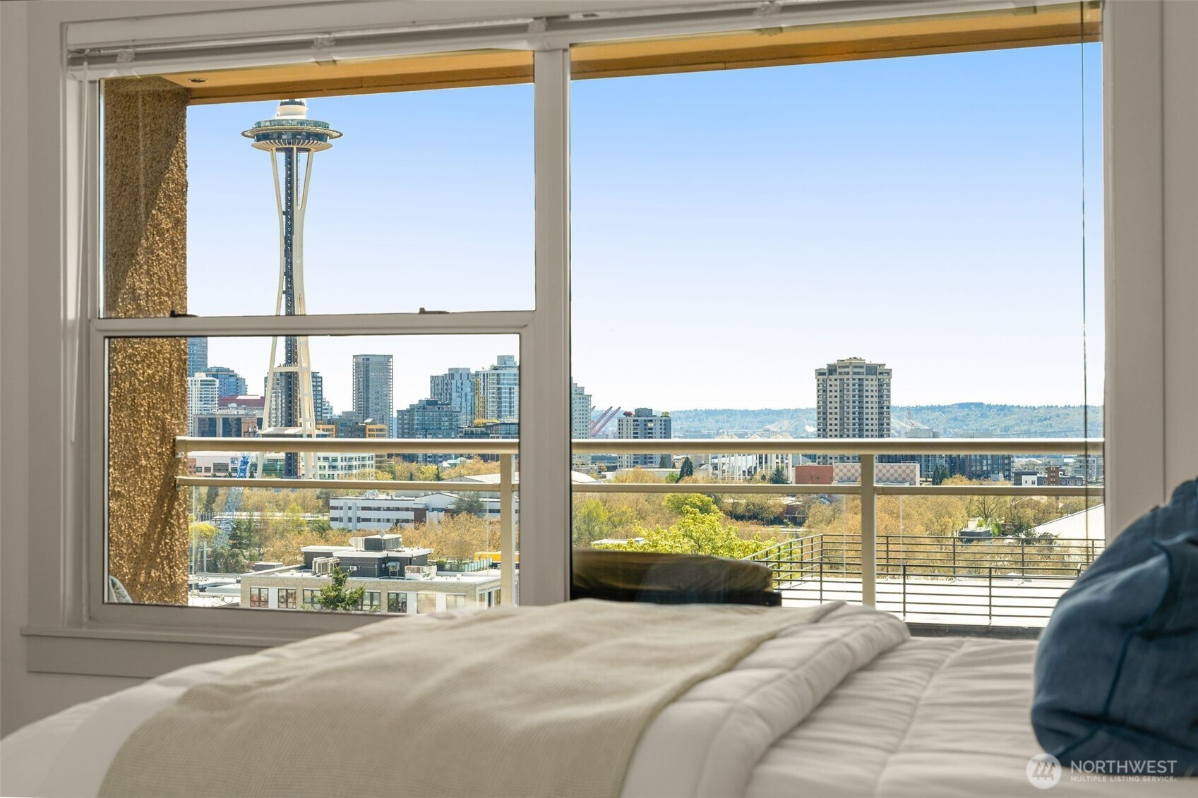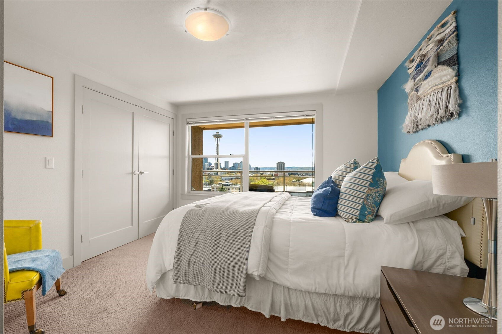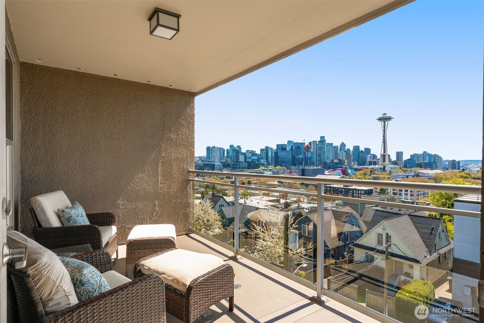 Iconic, unobstructed views of Downtown Seattle, the Space Needle, and Elliott Bay set the tone for this south-facing Queen Anne condo—an ever-changing backdrop you’ll never tire of. Perched on the coveted south slope in a boutique 20-unit building, this light-filled home offers 2 bedrooms, 1.75 baths, including a comfortable primary suite, and a well-designed 1,110 square foot layout. The updated kitchen features gas cooking, cherry cabinetry, granite countertops, stainless steel appliances, and a breakfast bar perfect for your morning routine, while expansive south-facing windows bring in beautiful natural light throughout the day. Enjoy generous closets and storage, including a large storage area conveniently located just in front of your reserved parking spaces, along with an in-unit washer and dryer. Two deeded parking spaces add rare convenience, and the building is pet-friendly. Ideally located near Queen Anne shopping and dining, South Lake Union, Climate Pledge Arena, and Downtown, with easy access to Myrtle Edwards Park and Seattle Repertory Theatre. Step onto the deck and take in the full, unobstructed panorama, there is no place you would rather start and end your day enjoying the iconic views!