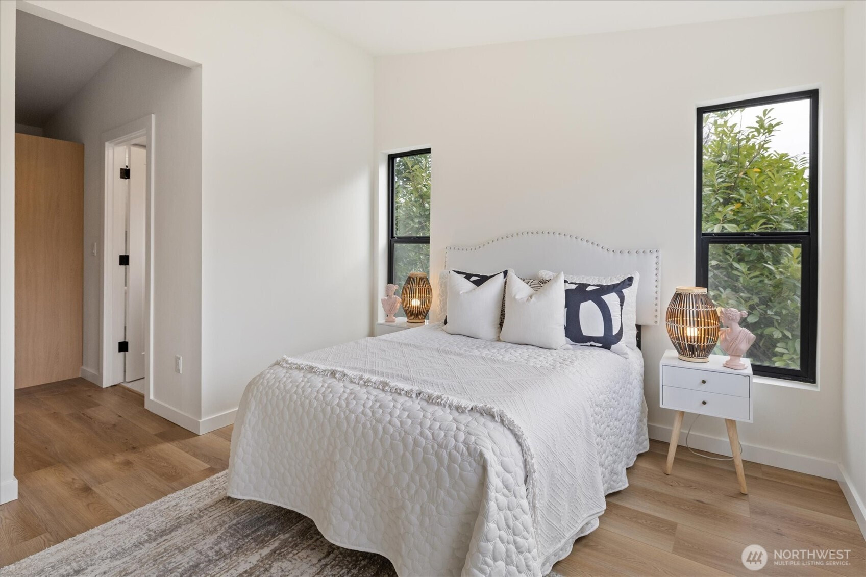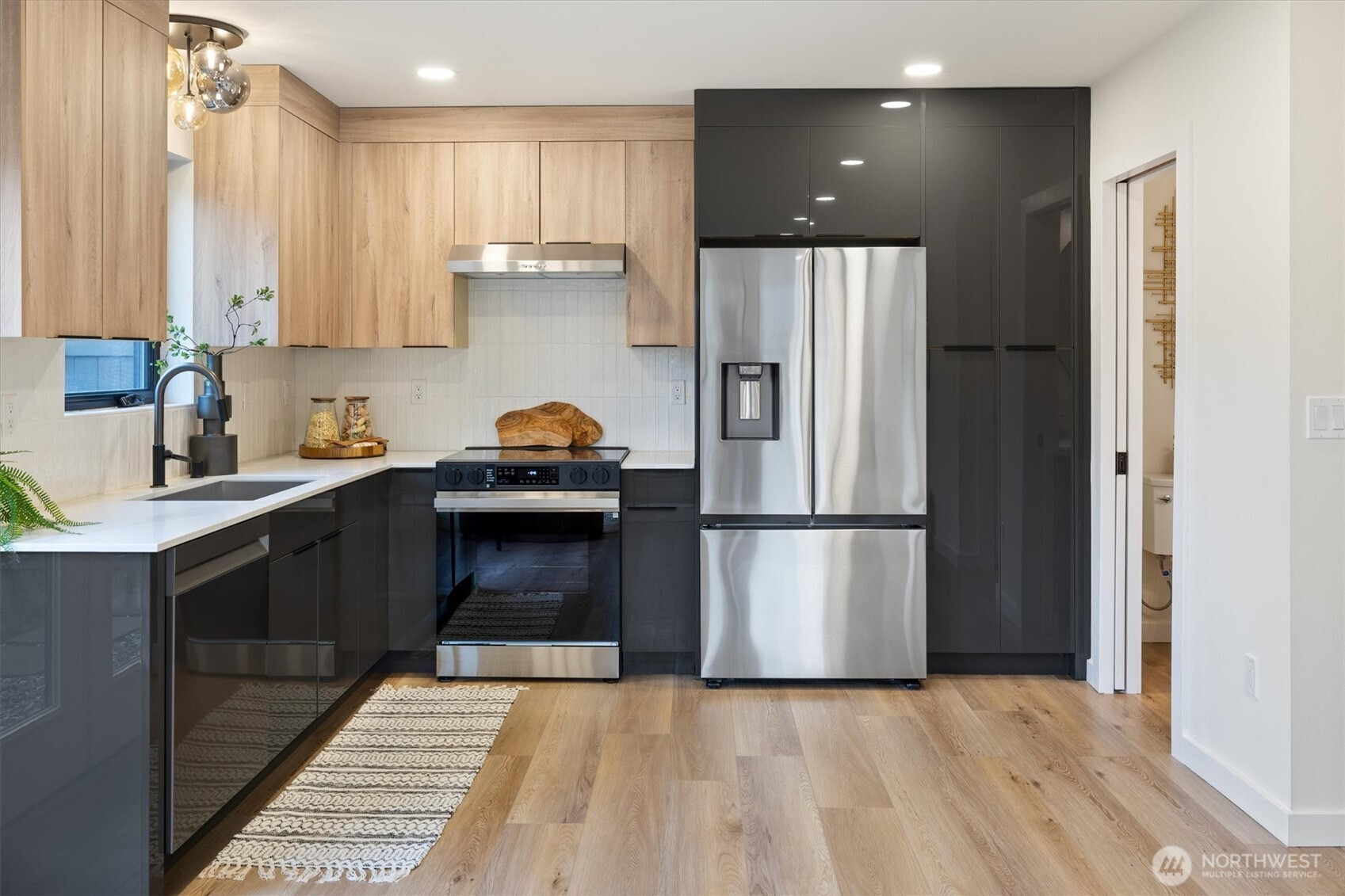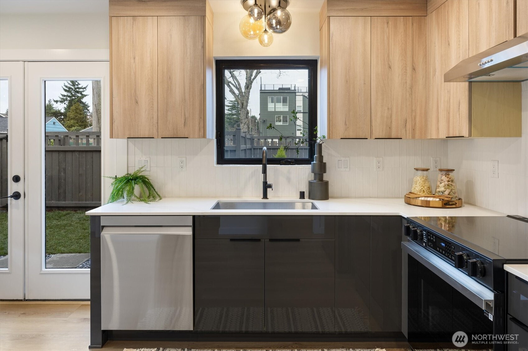 Stunning new construction in convenient West Seattle neighborhood. Alley access leads to private fenced parking space & fully fenced yard. A stone pathway leads to French doors welcoming you to open concept living. Modern kitchen w/premium SS appliances, two-toned modern cabinetry & qtz counters. Primary suite offers luminous bedroom, custom closet built-ins & spa-like bath w/tile flooring, tiled glass shower & floating dual vanity. 2 add'l bedrooms each w/closet built-ins + hall bath w/ shower/tub combo & tile surround. Utility room conveniently located on upper level w/stackable washer/dryer + cabinet storage & counter space! Fully finished 1car garage for extra parking. Just moments from Westwood Village Shopping Center & freeway access.