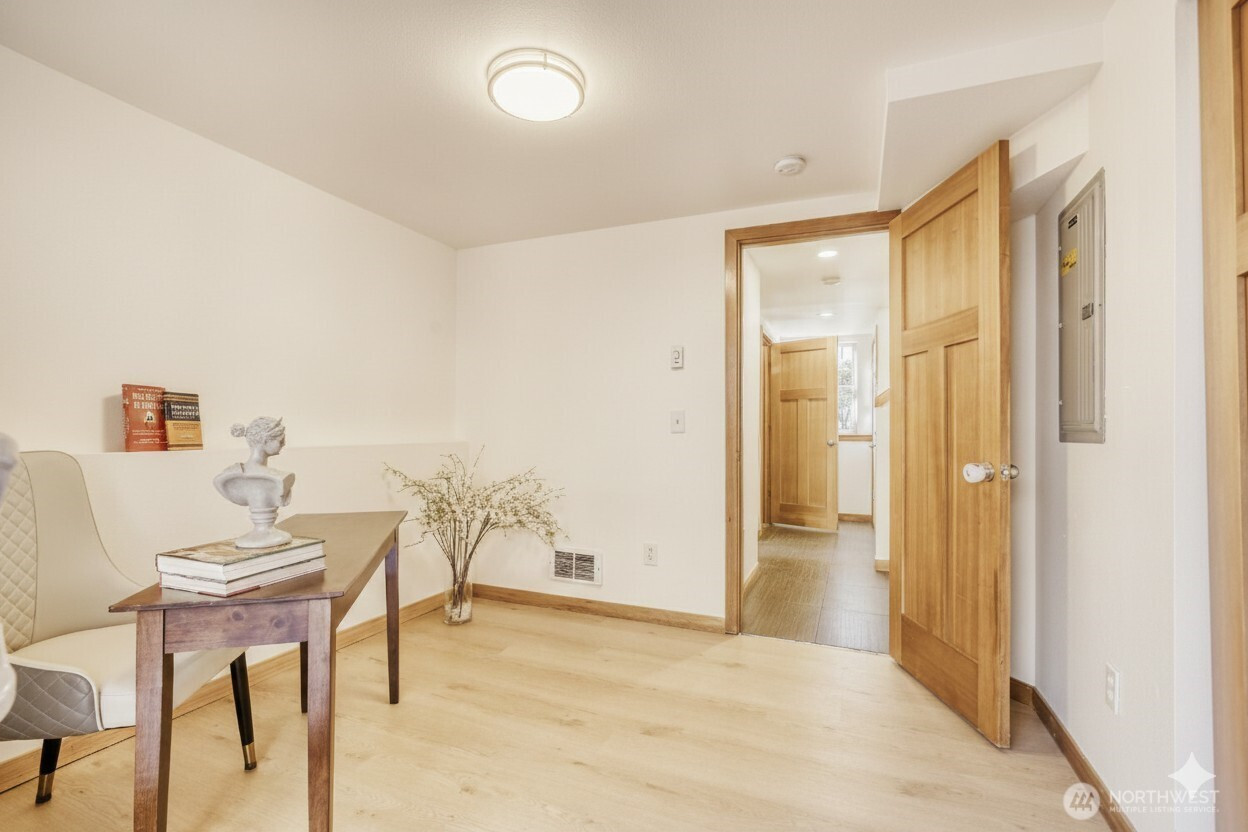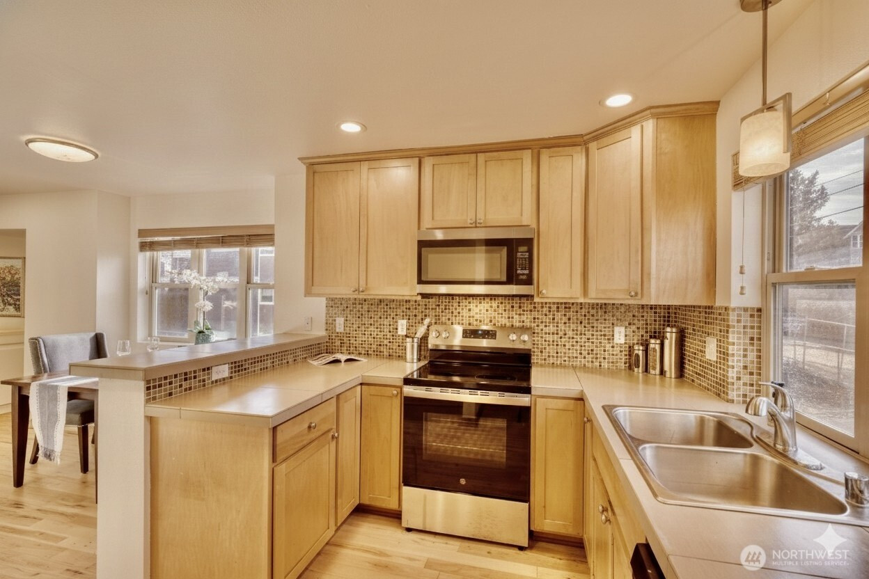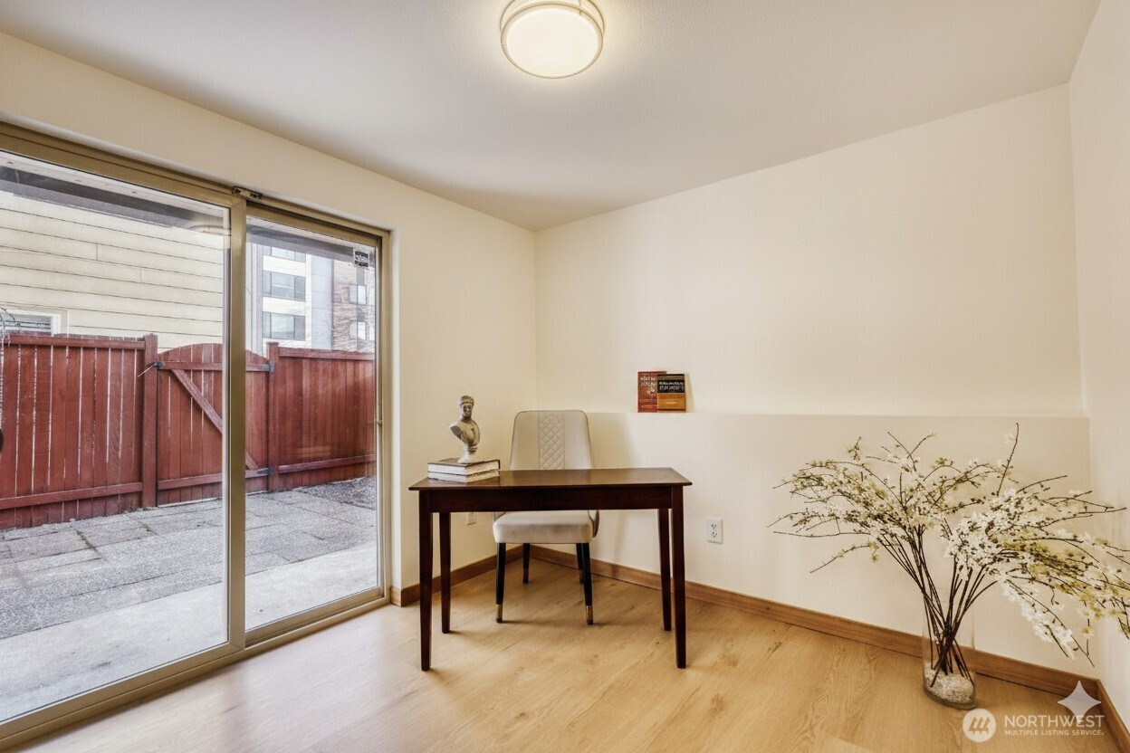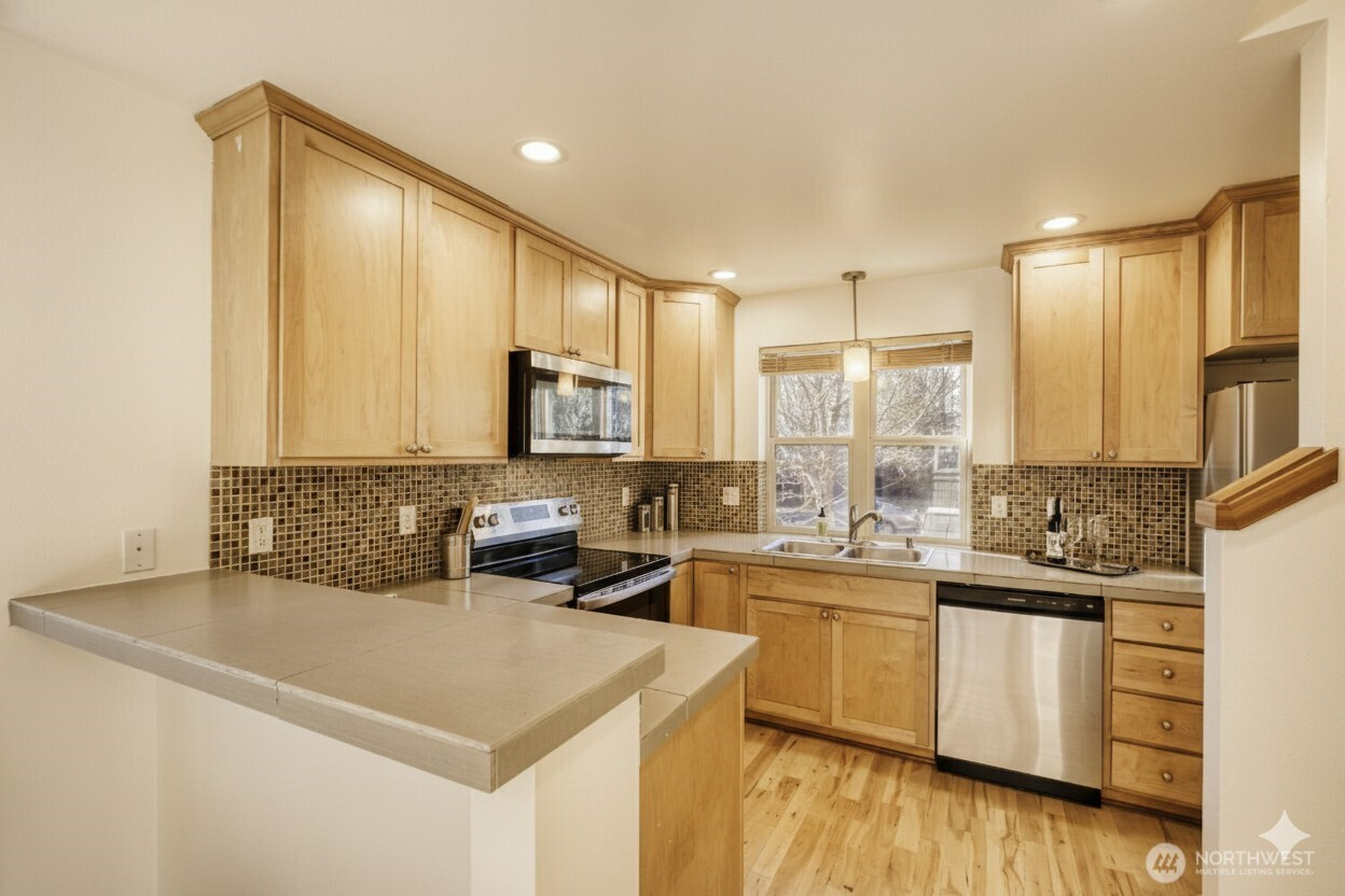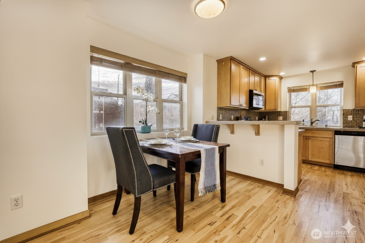 Elegant three-bedroom townhome in coveted Highland Park. This rare end unit is thoughtfully set back from the road, offering a welcoming front yard and a private, fully fenced backyard with patio—ideal for refined outdoor living and pets alike. The main level features a light-filled, open-concept living, dining, and kitchen area highlighted by maple hardwood floors, custom built-ins, a designer tile backsplash, a stylish breakfast bar, and new stainless steel dishwasher and stove.All bedrooms and stairways have been upgraded with new luxury vinyl plank flooring, complemented by fresh interior paint throughout. The upper level offers two generously sized bedrooms with vaulted ceilings and a shared bath with a new vanity. The lower level provides a private third bedroom with a full bath featuring a new vanity, along with a utility room—perfect for guests, a home office, or flexible living.Dedicated off-street parking and no HOA. Ideally located just moments from Westwood Village’s shops and dining, nearby parks, transit options, and convenient freeway access.