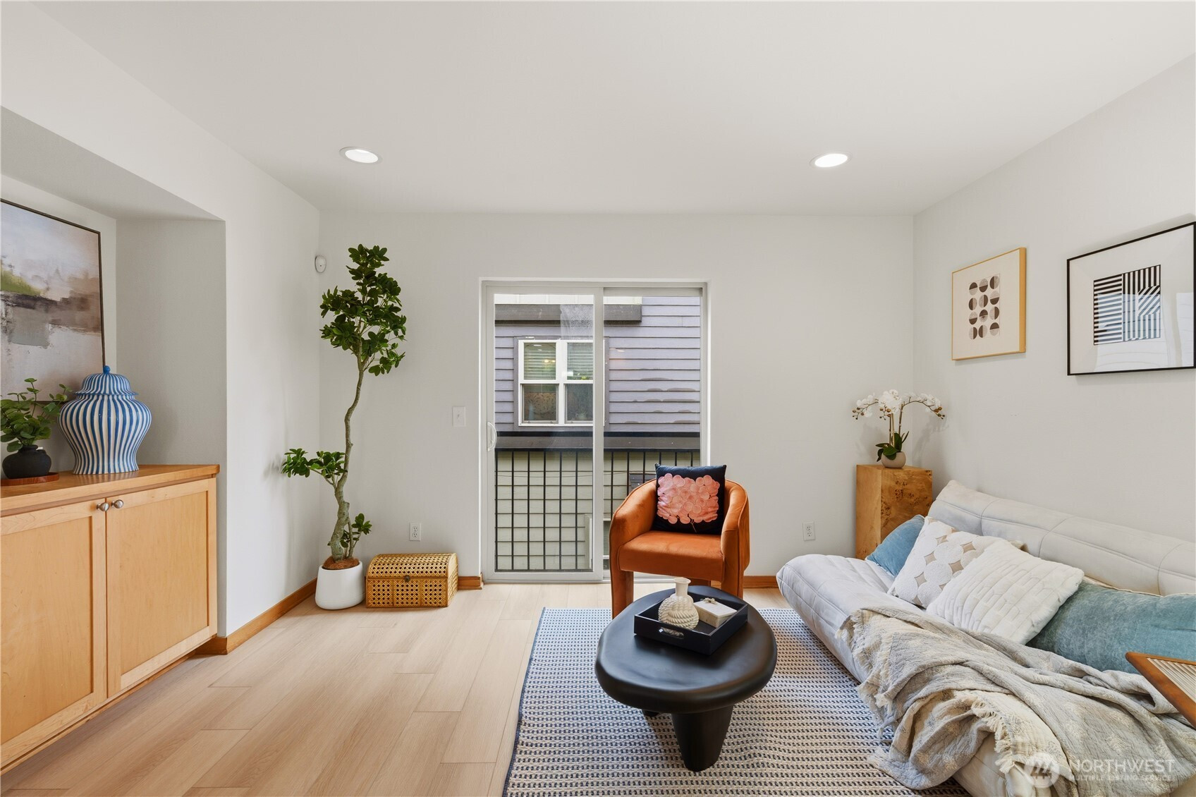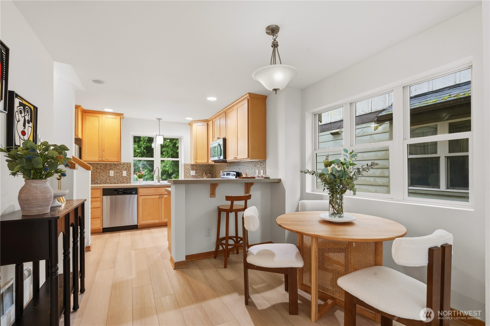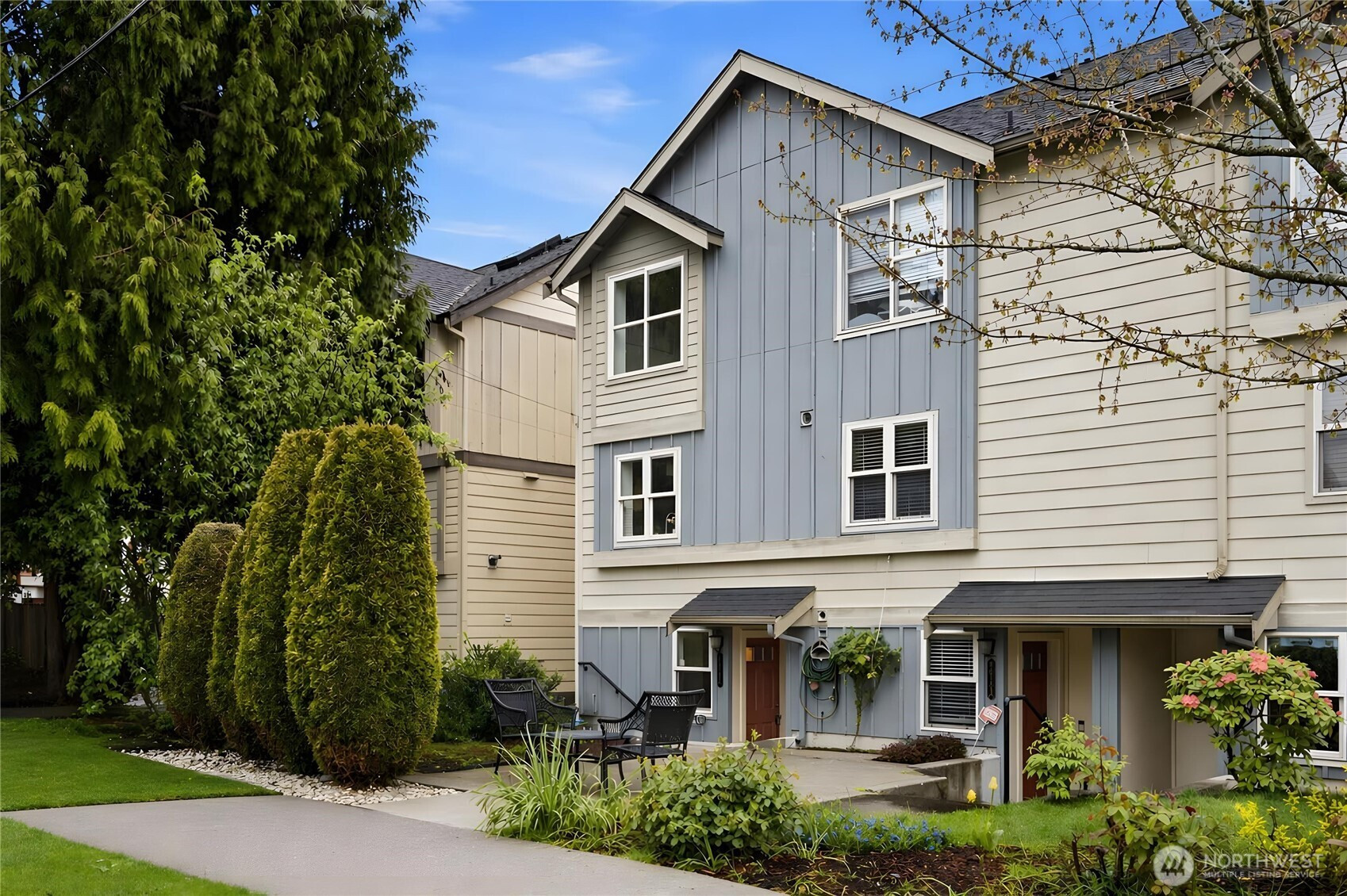 Beautifully updated 3-bedroom, 2-bath end-unit townhome in coveted Highland Park. This rare NO HOA home is thoughtfully set back from the road. The light-filled corner unit welcomes you with a charming front yard and a private flagstone patio—perfect for relaxing or entertaining. The entry level features a versatile bedroom or den with direct outdoor access and a full bath, ideal for guests or a home office. The open-concept main floor showcases gleaming hardwood floors, abundant cabinetry, a stylish tile backsplash, and stainless steel appliances. Upstairs, enjoy a vaulted primary bedroom, an additional bedroom, and a full bath. Recent updates include fresh interior paint and updated flooring throughout. Conveniently located near shopping, dining, and transit. Move-in ready and pre-inspected for added confidence, with dedicated off-street parking included.