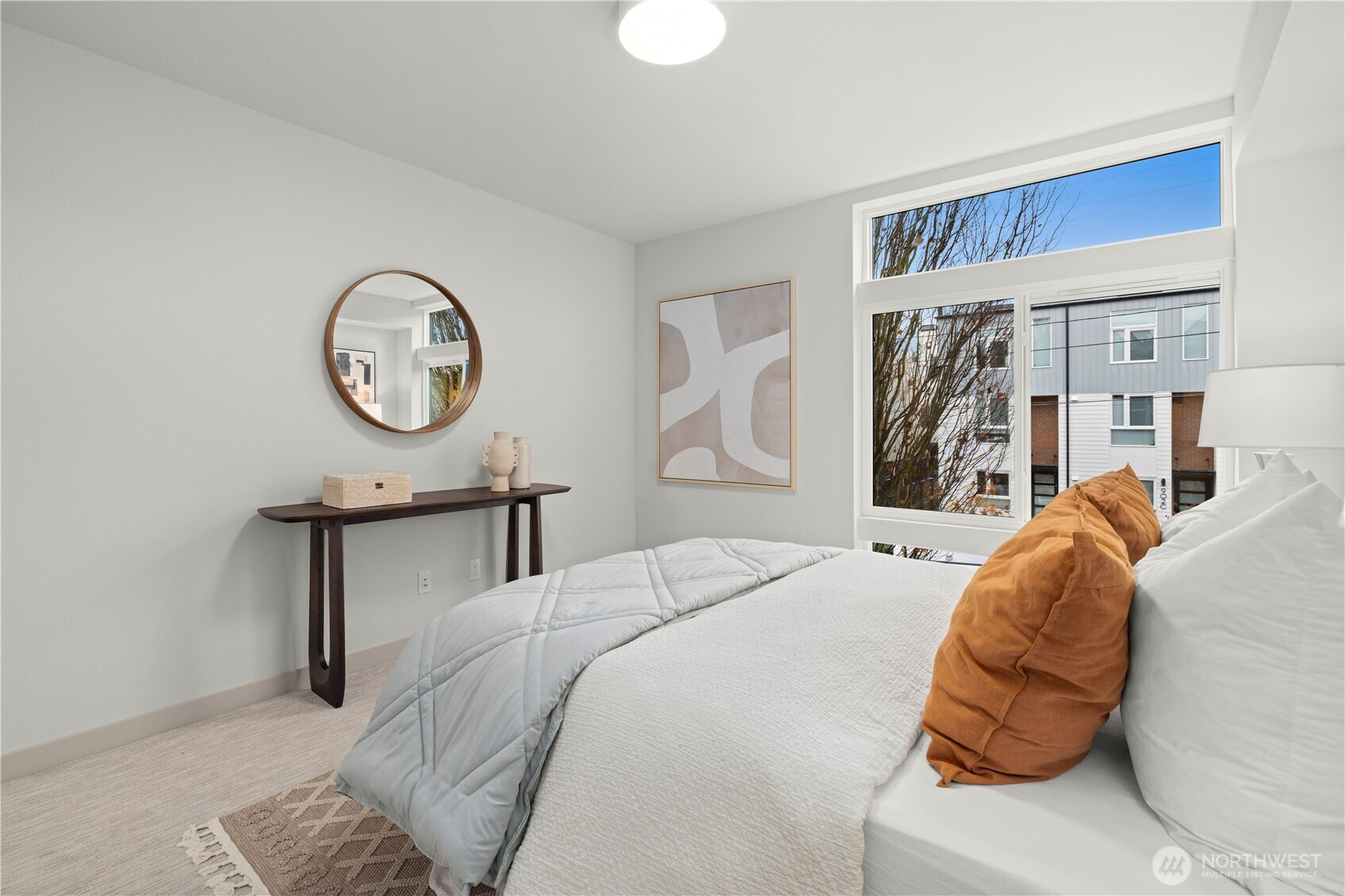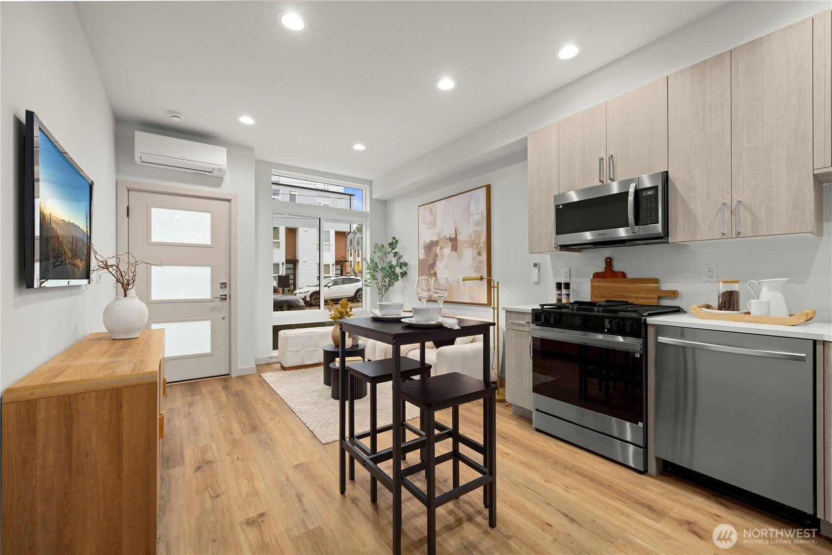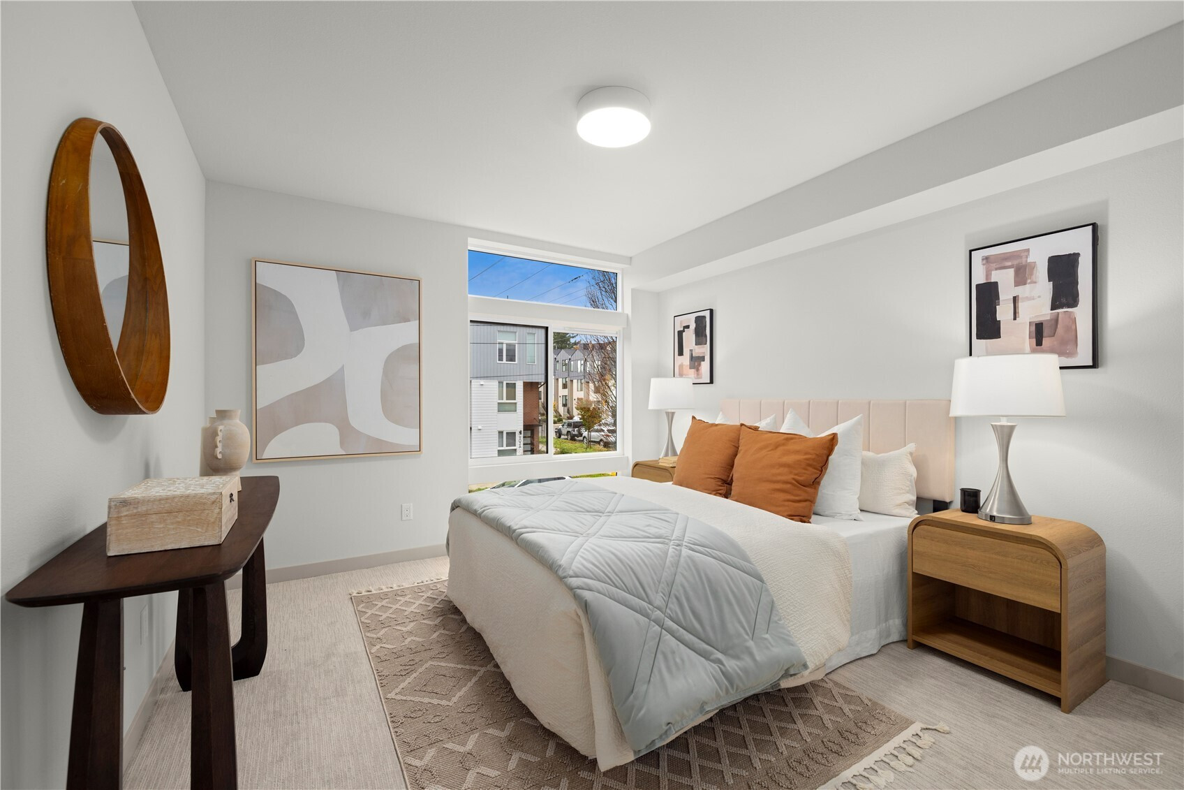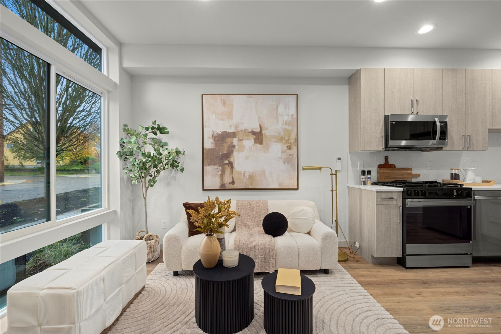 BUYER BONUS: $10,000 credit + 1% lender credit - use for closing costs or lower rate! ONE OF THREE HOMES OFFERING DEEDED EV-READY PARKING! Meticulously crafted new construction by premier builder MRN Homes, located in the heart of Ballard’s most sought-after residential pocket. Surrounded by tree-lined streets & premiere city convenience, moments from artisan cafés, boutique shops, craft breweries & year-round Ballard Farmers Market. The open-concept design blends clean lines w/premium, curated finishes. Natural light pours through expansive windows, highlighting the sleek kitchen w/quartz countertops, gas range, locally made cabinetry & living space. Upstairs, two generous bedrooms w/luxe baths. Full size rooftop deck w/water, gas & elect!