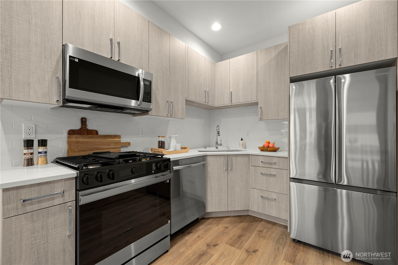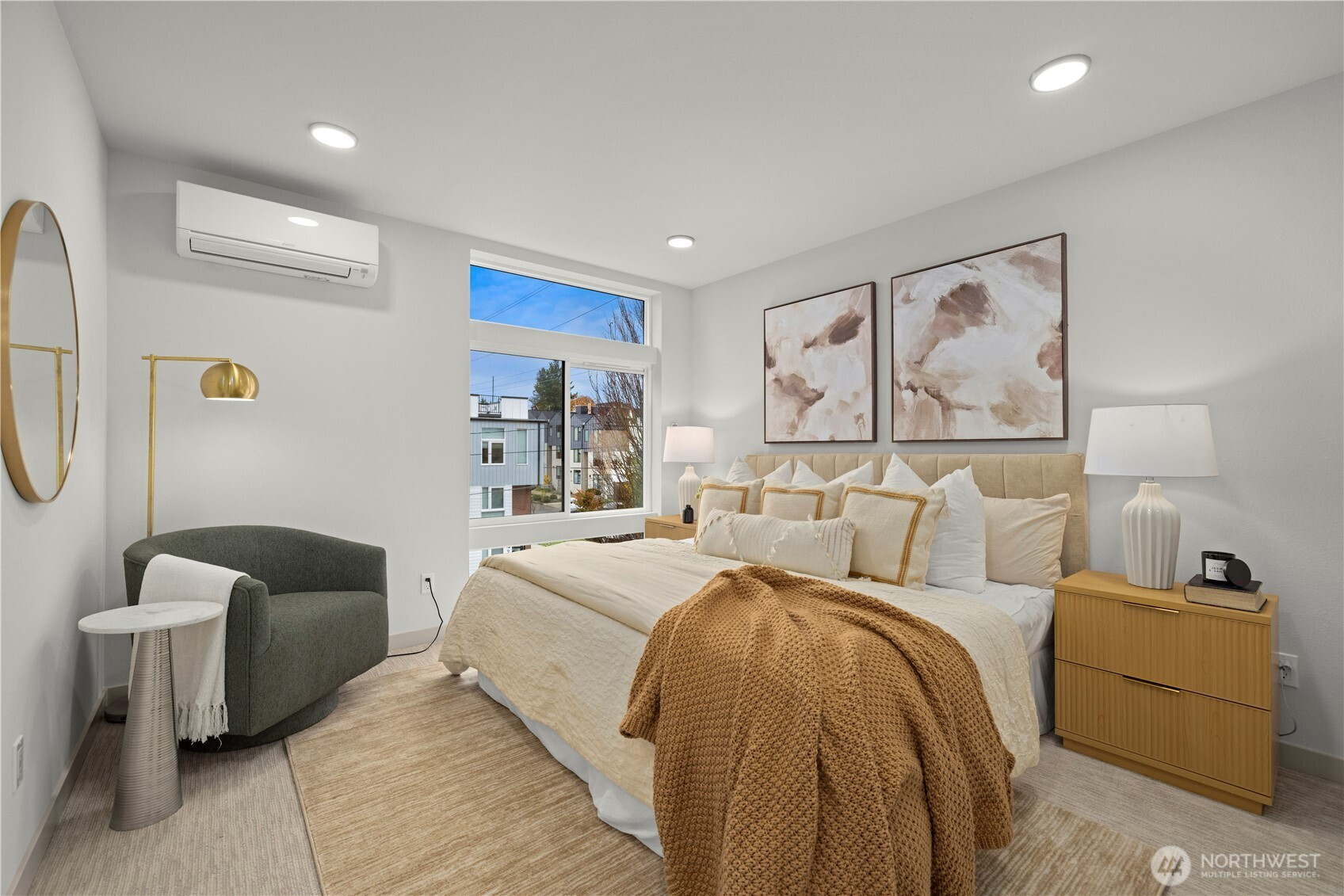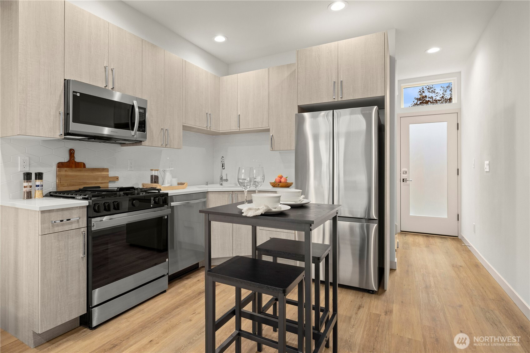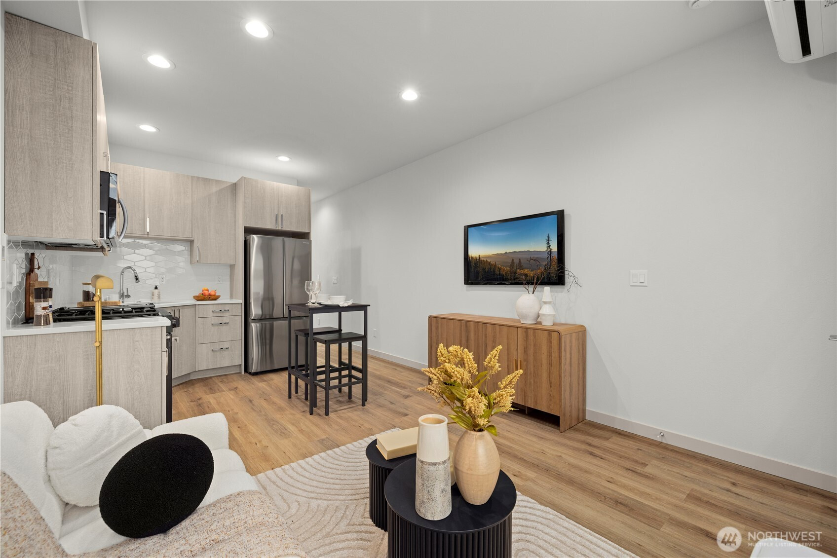 BUYER BONUS: $10,000 credit + 1% lender credit - use for closing costs or lower rate! ONE OF THREE HOMES OFFERING DEEDED EV-READY PARKING! Meticulously crafted new construction by premier builder MRN Homes, located in the heart of Ballard’s most sought-after residential pocket. Surrounded by tree-lined streets & premiere city convenience, moments from artisan cafés, boutique shops, craft breweries & year-round Ballard Farmers Market. The open-concept design blends clean lines w/premium, curated finishes. Natural light pours through expansive windows, highlighting the sleek kitchen w/quartz countertops, gas range, locally made cabinetry & living space. Upstairs, two generous bedrooms w/luxe baths. Full size rooftop deck w/water, gas & elect!