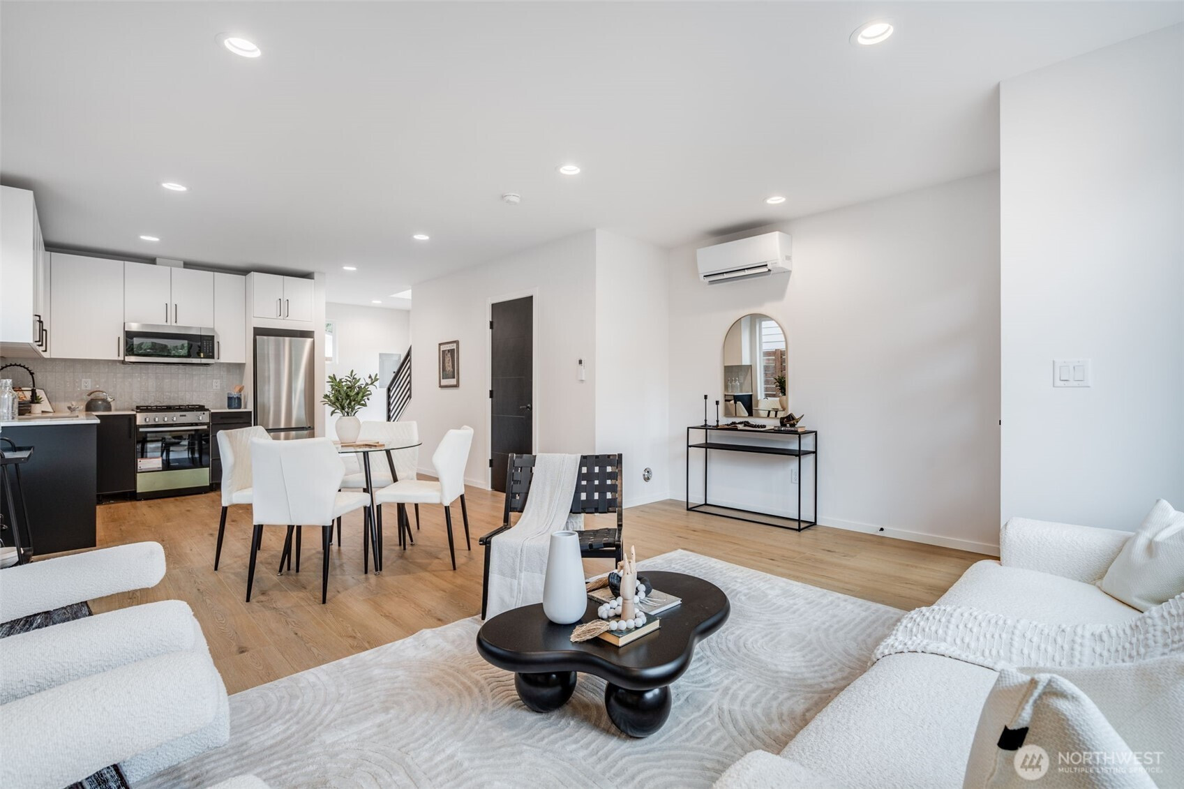 *4.75% interest rate for 10 years available!* Welcome to this brand-new 2 bed, 2.5 bath home ideally located in the Greenwood neighborhood, designed for comfort, privacy, and modern living. With no shared walls and a fully fenced private yard, this home lives like a standalone residence. The bright living room enjoys warm southwest exposure, filling the space with natural light and creating an inviting setting for relaxing or entertaining. The thoughtfully designed main level features a stylish kitchen with bonus pantry and storage space, along with a convenient half bath.Upstairs, you’ll find two vaulted en-suite bedrooms—ideal for guests, roommates, or flexible work-from-home living. The primary bedroom captures beautiful morning light, while both upstairs bathrooms feature heated floors for everyday comfort. Additional highlights include efficient mini-split for heating and A/C, EV charger wiring with dedicated parking, and a gas stub for your future outdoor grill. Convenient access to Hwy 99, nearby bus lines, and neighborhood amenities makes commuting and daily errands a breeze.