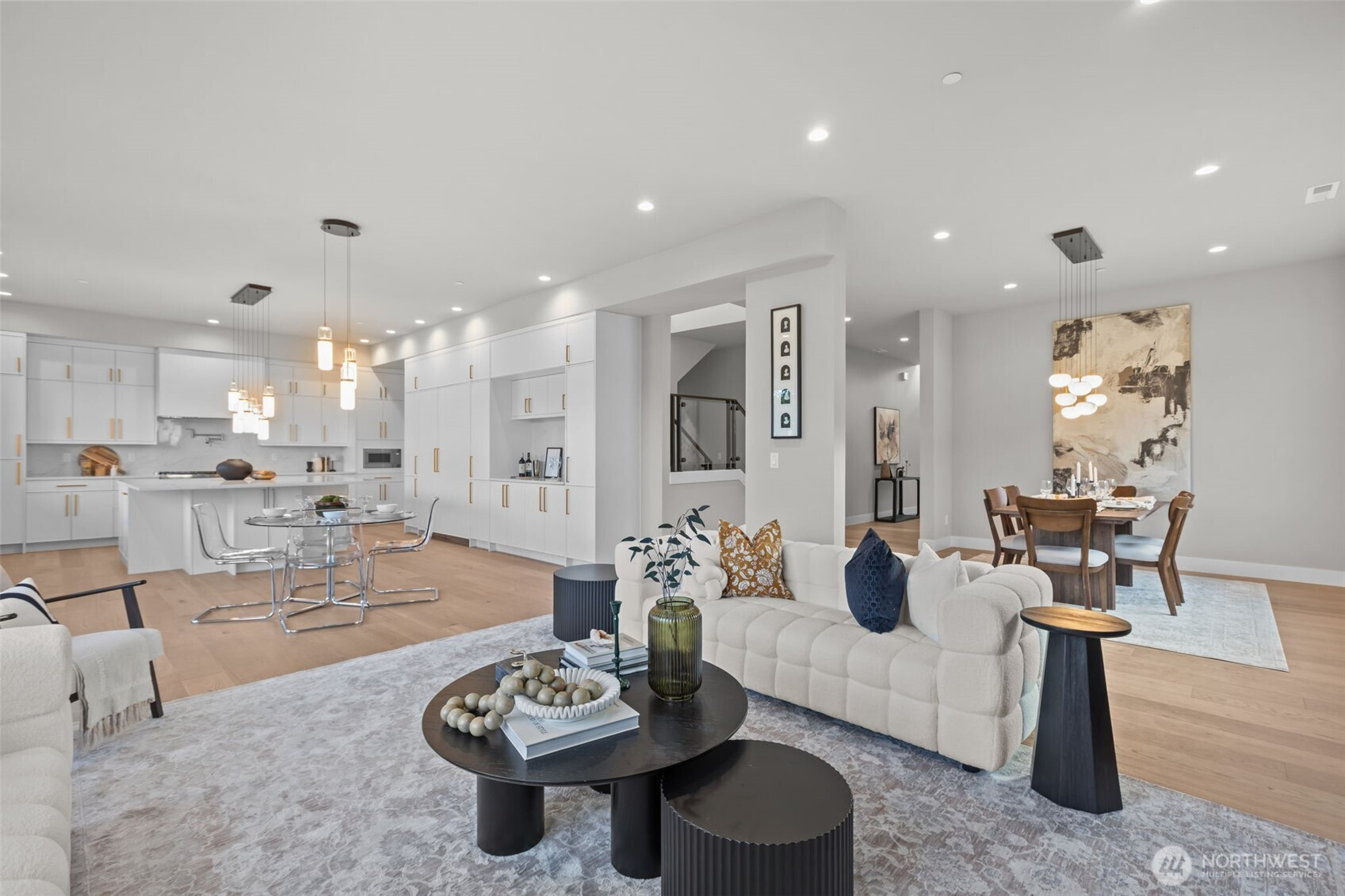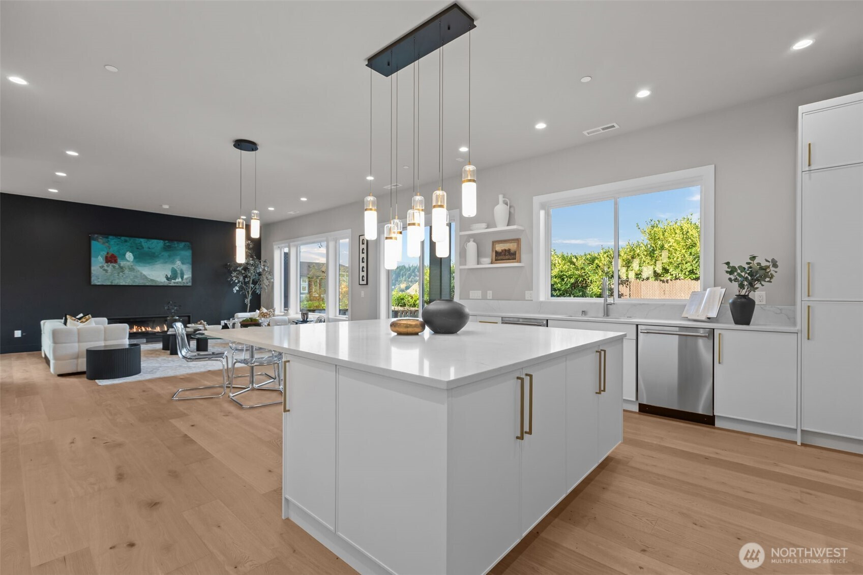 Stunning Kennydale home with 5 bedrooms and 3.5 bathrooms boasts 3,260 sqft, showcasing premium designer finishes throughout. The chef’s kitchen is equipped with a 48-inch range, Thermador appliances, and Bellmont cabinets. Kentwood hardwood floors throughout , Kohler fixtures, stealth speakers, and 18 solar panels elevate the home even further. Multiple balconies for beautiful summer days. The primary bedroom features Lake Washington views. A beautifully modern home accented with craftsman details.