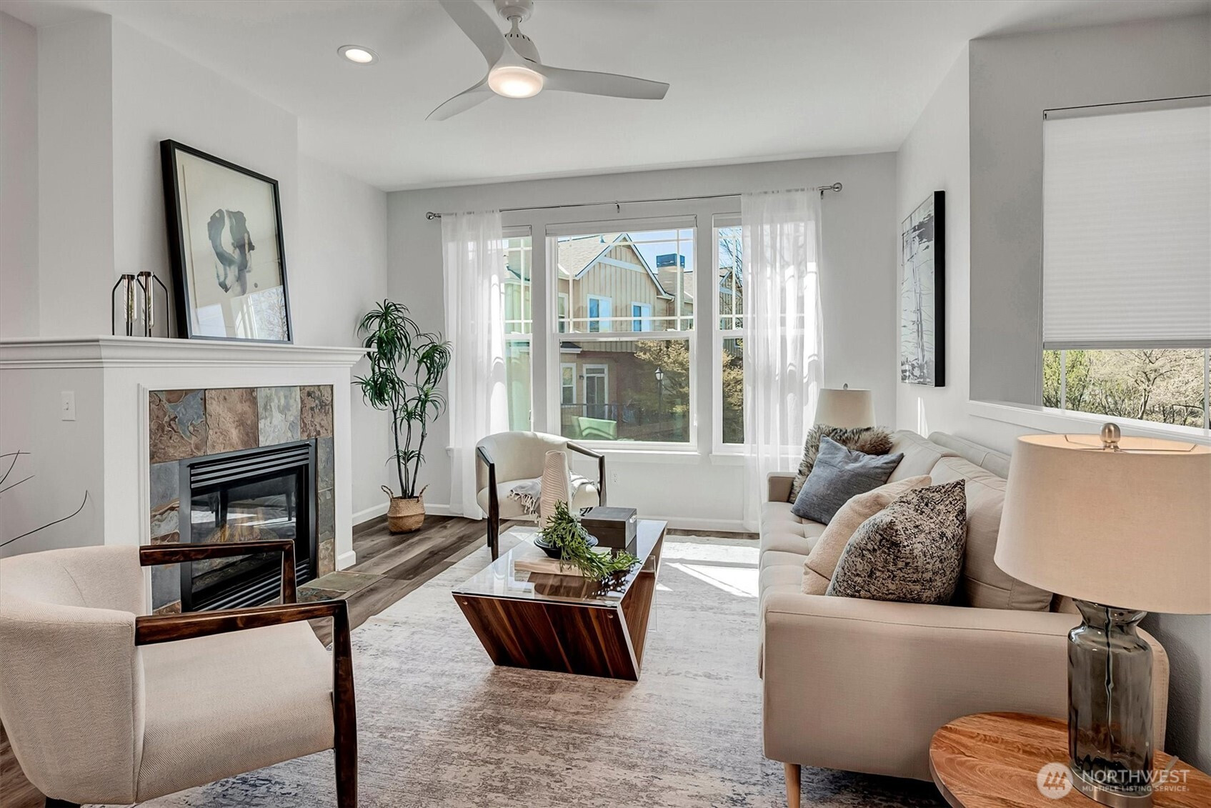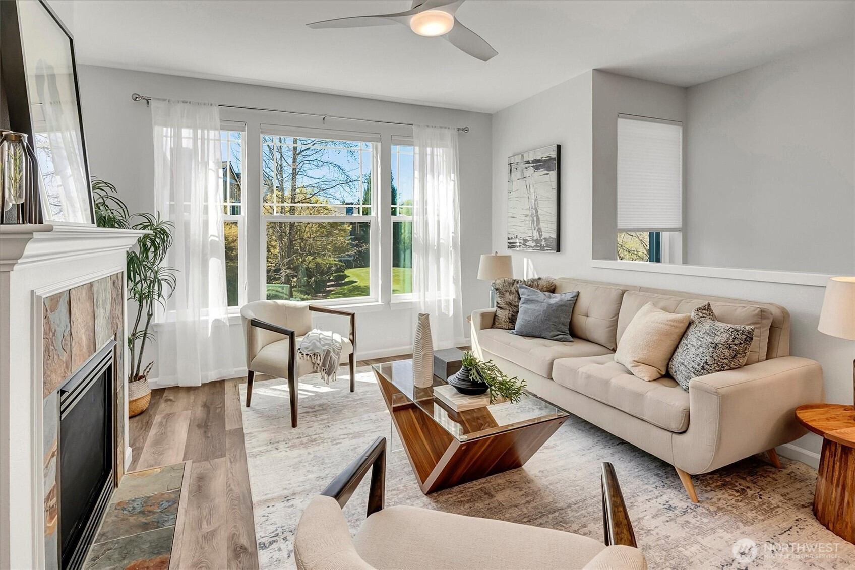 Enjoy the very best in urban living in this beautifully updated townhome in the heart of downtown Redmond, just a short hop to the QFC, top-rated restaurants and all that the vibrant city has to offer. Microsoft, Google, Amazon and Meta are all just minutes away and the Sammamish River Trail beckons, with it's miles of bike path meandering along the pretty waterway. Visit the Redmond Saturday Market for the finest fresh produce, flowers and seafood, open every weekend from May through October. This location is truly special! With over 1400 sf, the spacious townhome has had extensive updates in the past two years including new carpeting, a new garage door opener, new lighting, new windows (front of the house) and fresh interior paint in the past month. The water heater, AC (mini-split), vinyl plank flooring, remodeled kitchen and baths were all done in 2024. The primary bedroom has vaulted ceilings and a large walk-in closet with custom organizers. The spacious great room with cozy gas fireplace overlooks community greenspace. The over-sized garage has tremendous storage for all of your things. This is truly a haven from your busy day with all of the convenience of downtown life. Welcome home!
