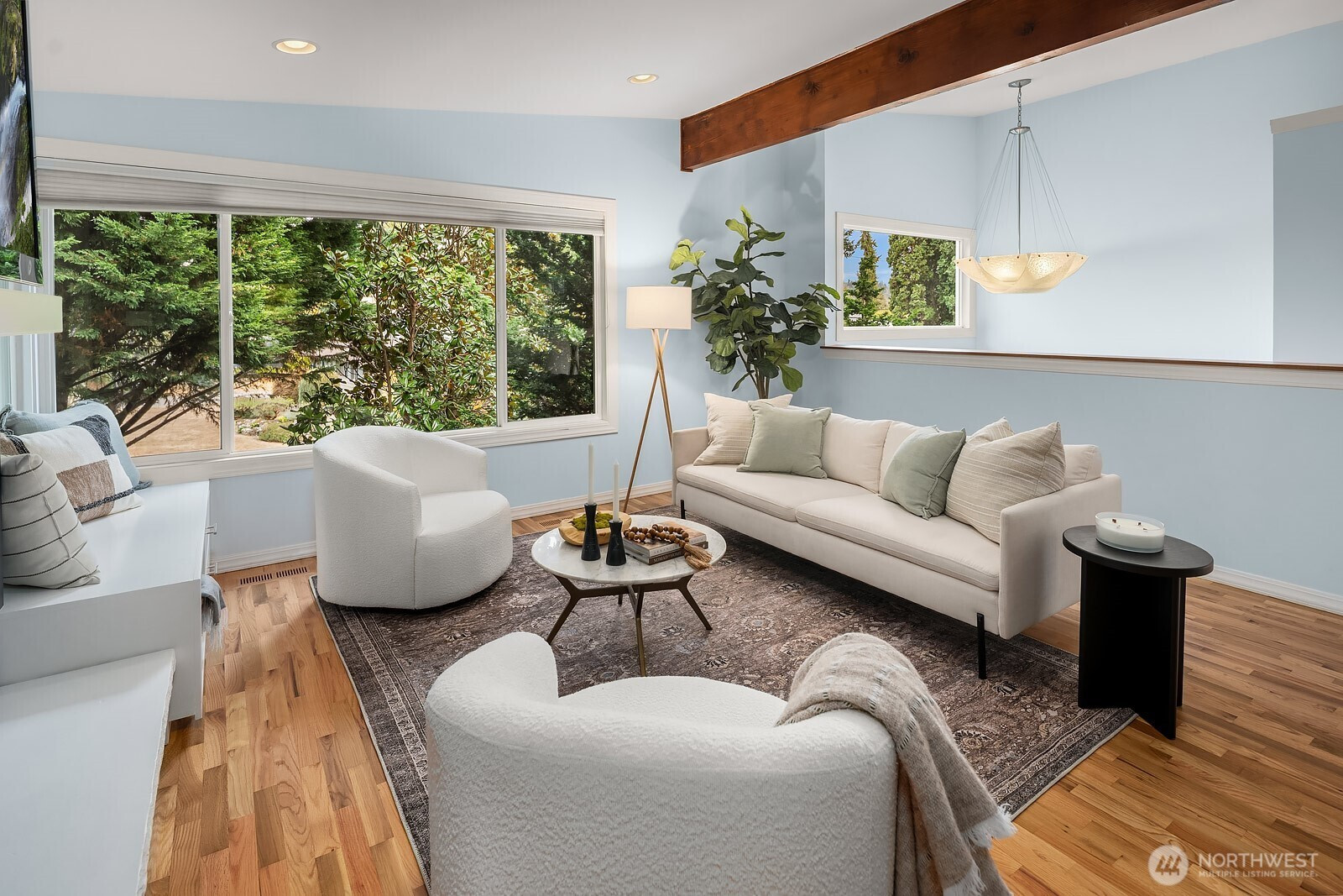 Immaculate turn-key ready home in the coveted Surrey Downs community. This 4 bedroom, 2.5 bath residence offers a seamless blend of comfort & convenience just blocks from downtown Bellevue! Soaring vaulted ceilings & hardwood floors enhance the light-filled living area, while the chef’s kitchen boasts granite counters, SS appliances & custom cabinetry. Spacious main-level primary suite with dual walk-in closets! Lower level offers 2 other spacious beds & cozy family room. Added highlights include central A/C, 2 fireplaces, a wine cellar, 3-car garage, & new heat pump for year-round enjoyment. Unwind in the private, low-maintenance backyard w/ covered BBQ area! Award winning Bellevue SD, easy access to DT shops, restaurants & 405/520!