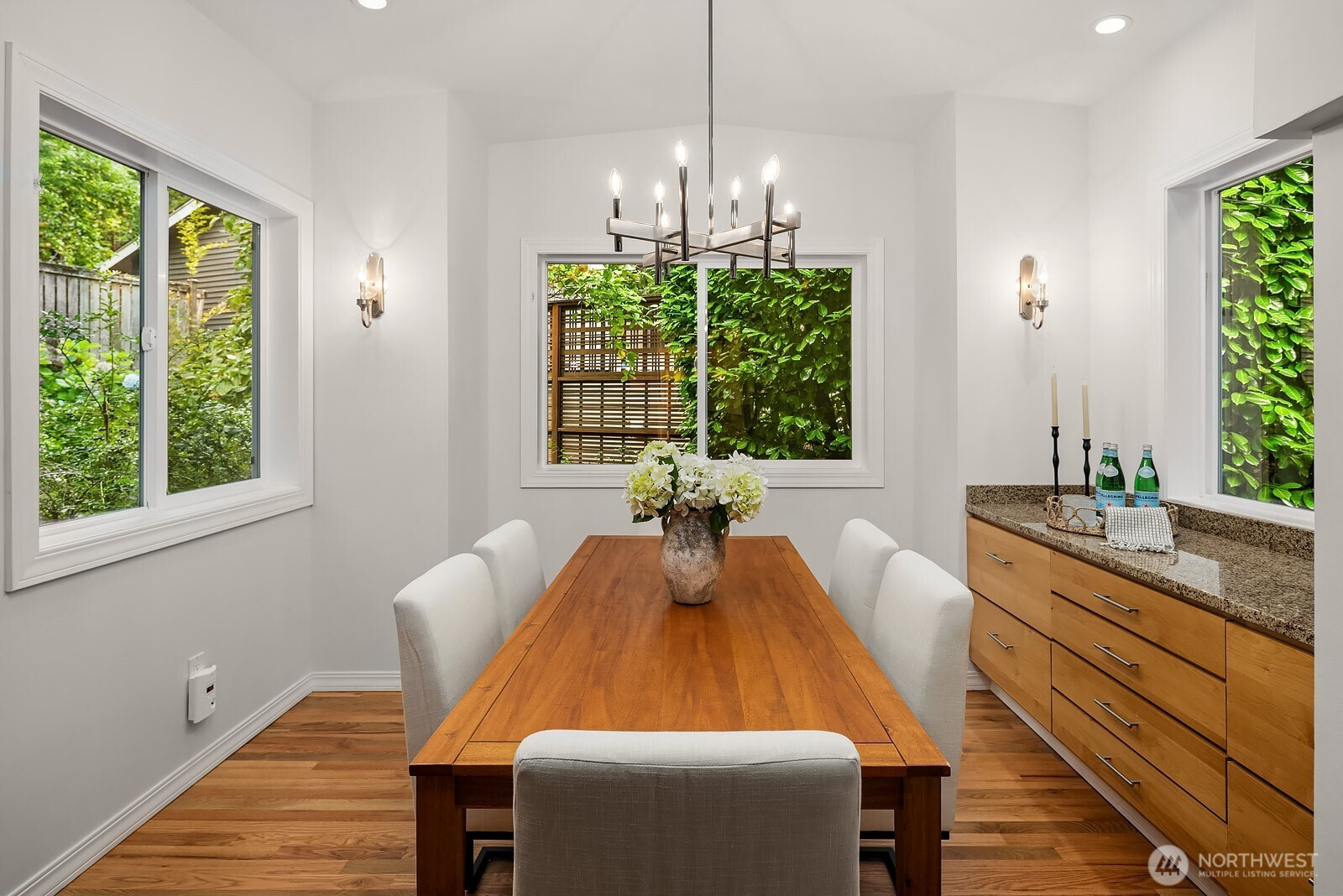 Immaculate turn-key ready home in the coveted Surrey Downs community. This 4 bedroom, 2.5 bath residence offers a seamless blend of comfort and convenience just blocks from downtown Bellevue. Soaring vaulted ceilings and rich hardwood floors enhance the light-filled living and dining spaces, creating an inviting setting for everyday living and entertaining alike. The chef’s kitchen features granite counters, stainless steel appliances, custom cabinetry, and thoughtful storage, flowing effortlessly to the main gathering areas. The spacious main-level primary suite serves as a private retreat and features an adjacent 3/4 bath with an oversized dual head shower and expansive vanity space, plus two walk-in closets and easy access to the backyard. The lower level offers two additional generous bedrooms, a cozy family room with fireplace, and flexible space ideal for guests, work, or play. Added highlights include central A/C, a new heat pump for year-round comfort, two fireplaces, a wine cellar, and an expansive 3-car garage. Step outside to a large patio ideal for entertaining, surrounded by mature landscaping that creates a private, peaceful setting. Located in award-winning Bellevue School District with easy access to downtown shops, dining, parks, and 405 and 520, this home delivers both lifestyle and location.