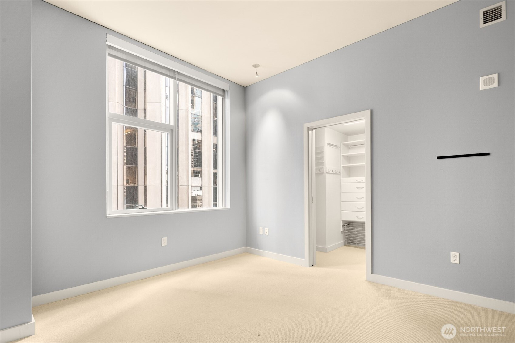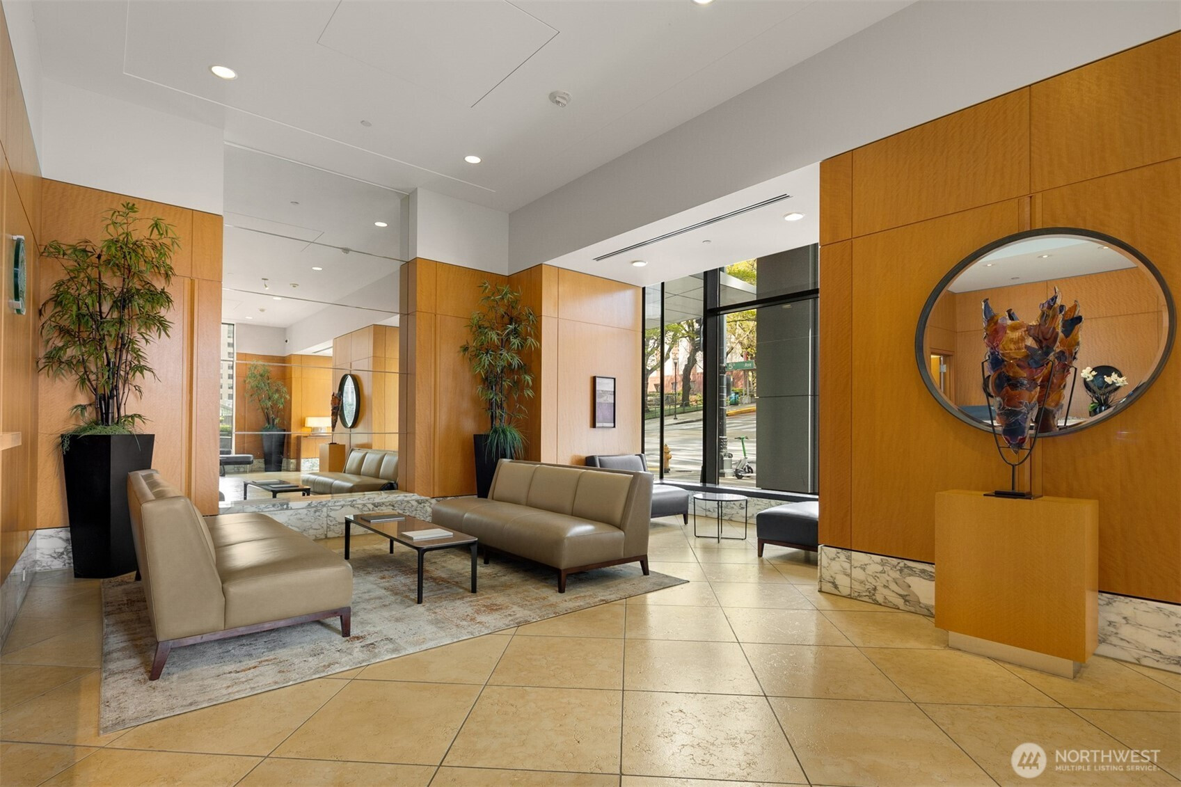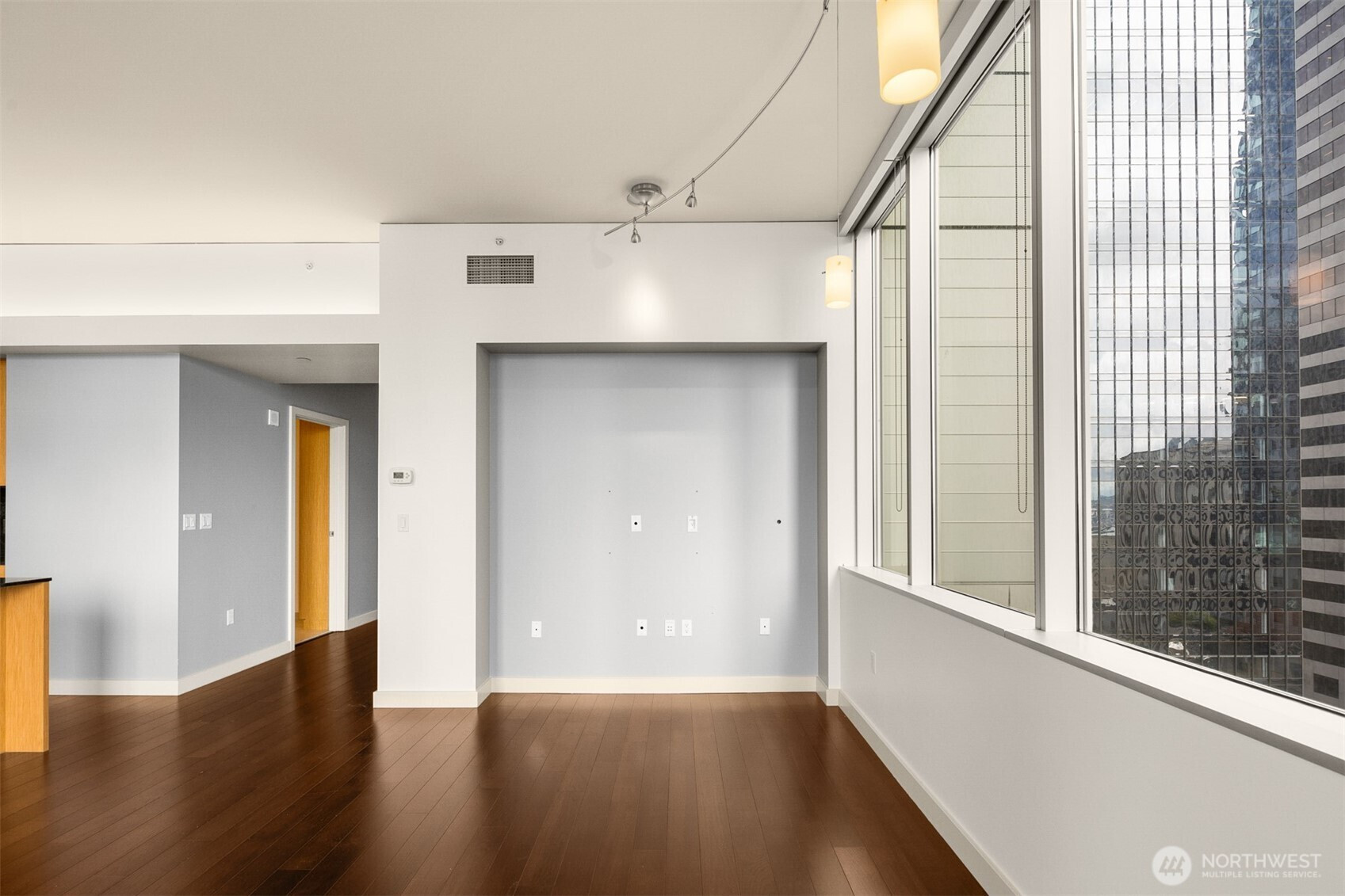 Beautiful downtown Seattle condo at 5th and Madison. Enjoy premium living, an end-unit, and the views of Elliott Bay. Open concept layout, floor-to-ceiling windows flood the space with natural light. Modern finishes, hardwood floors throughout for polished look and feel. 1 generous-size bedroom with walk-in closets, kitchen with granite island, stainless steel appliances, 1 full bath and in unit washer and dryer. Amenities: fitness center, game room & rooftop deck. Walking distance to Pike Place Market for fresh produce, restaurants, grocery stores, and a waterfront park. Comes with 1 assigned parking and storage space. No rental cap