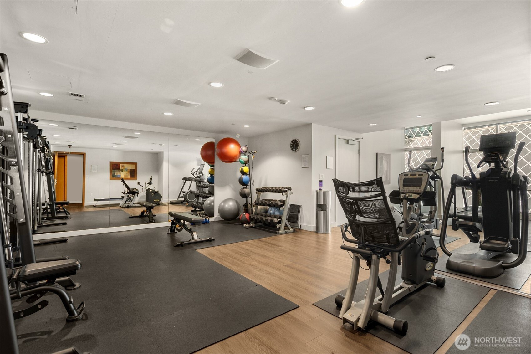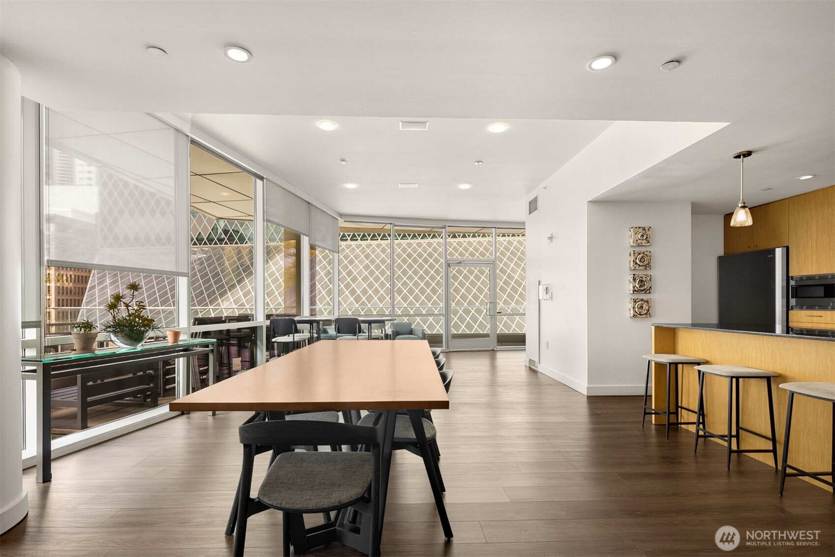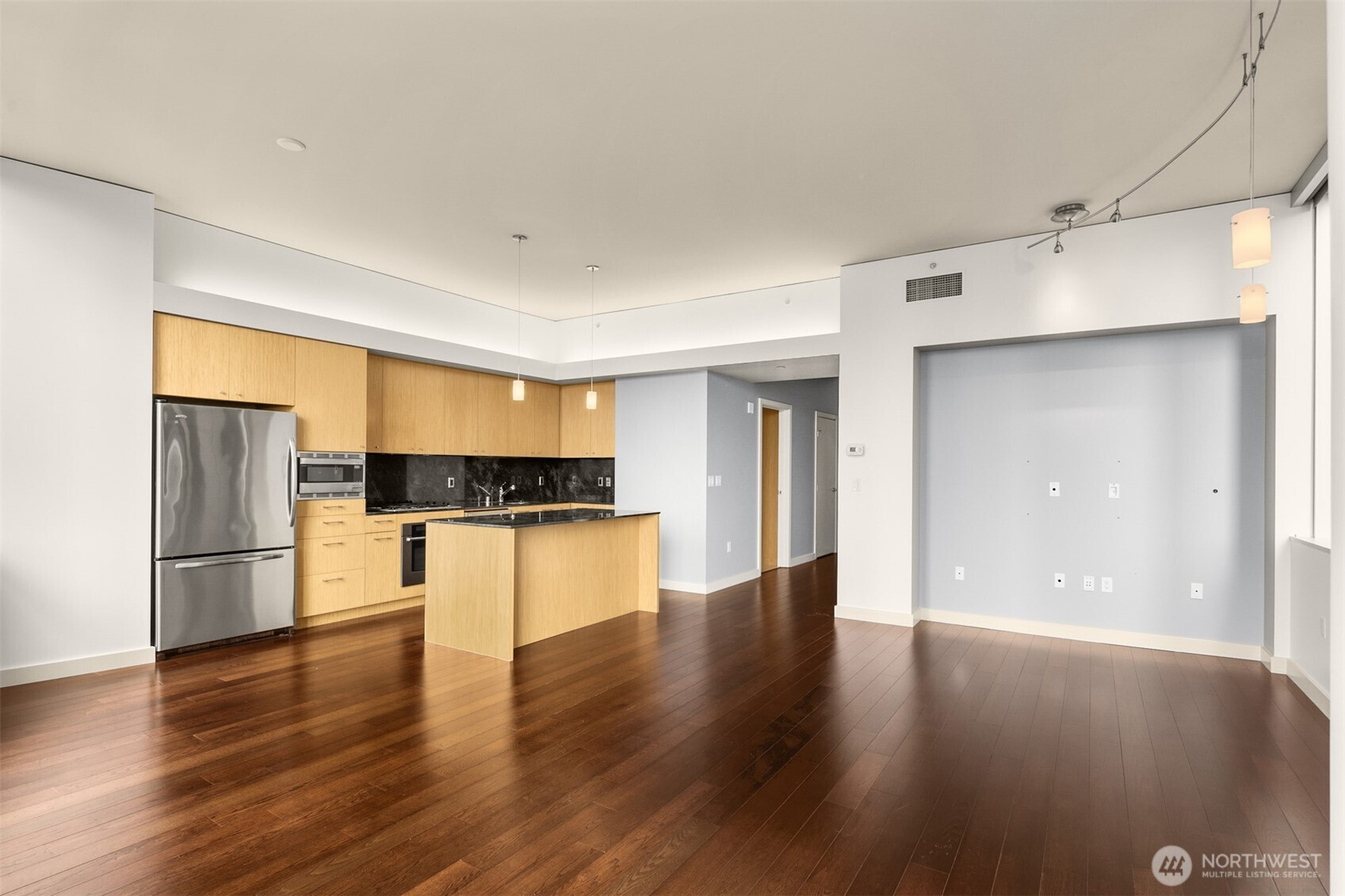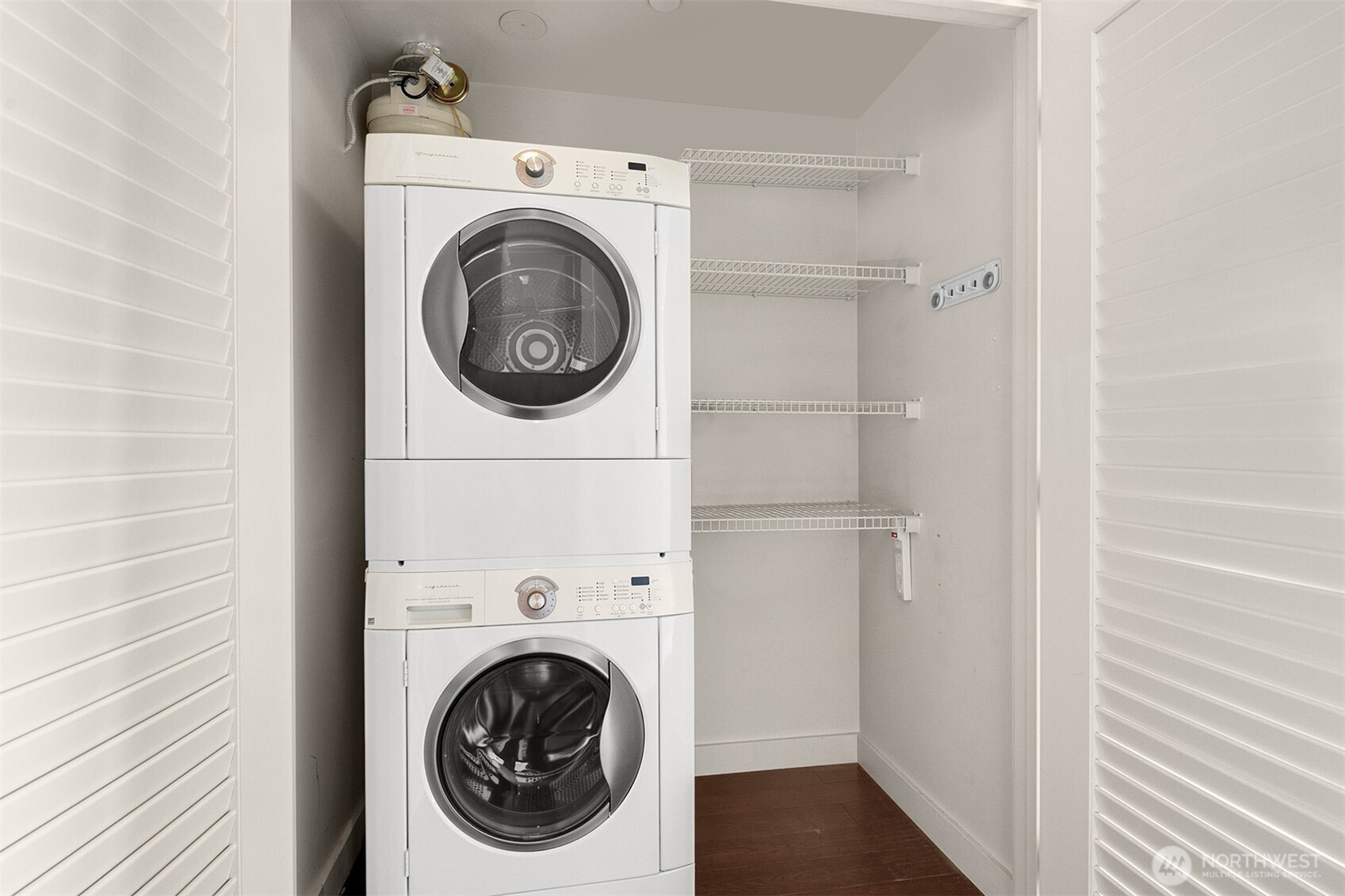 Beautiful downtown Seattle condo at 5th and Madison. Enjoy premium living, an end-unit, and the views of Elliott Bay. Open concept layout, floor-to-ceiling windows flood the space with natural light. Modern finishes, hardwood floors throughout for polished look and feel. 1 generous-size bedroom with walk-in closets, kitchen with granite island, stainless steel appliances, 1 full bath and in unit washer and dryer. Amenities: fitness center, game room & rooftop deck. Walking distance to Pike Place Market for fresh produce, restaurants, grocery stores, and a waterfront park. Comes with 1 assigned parking and storage space. No rental cap