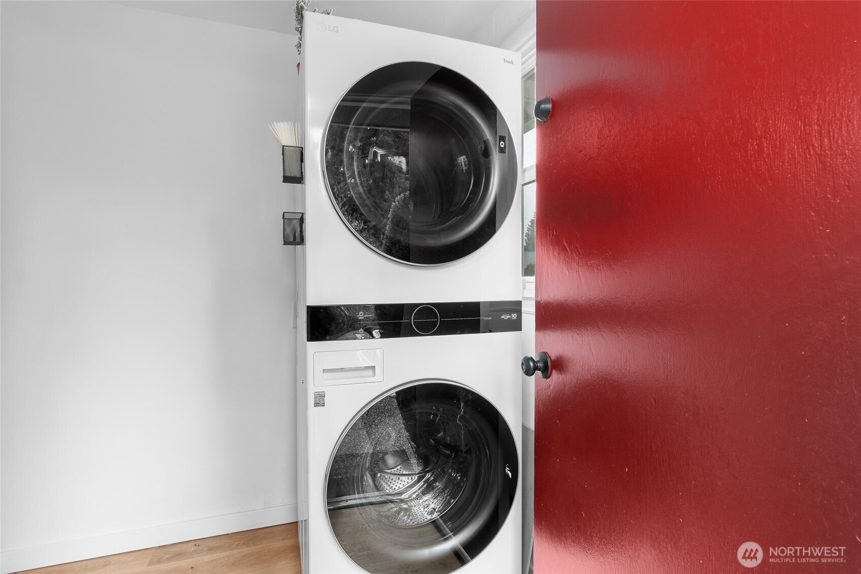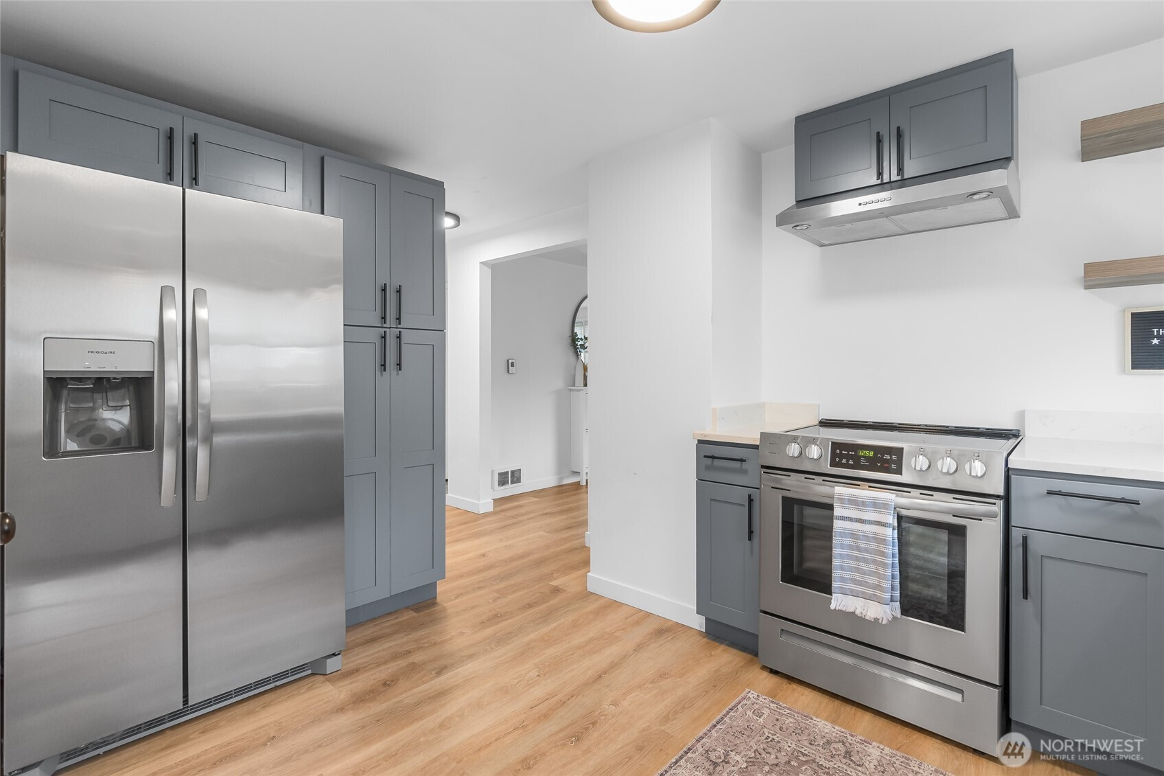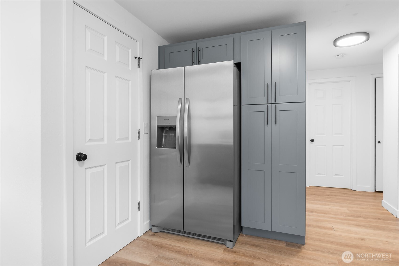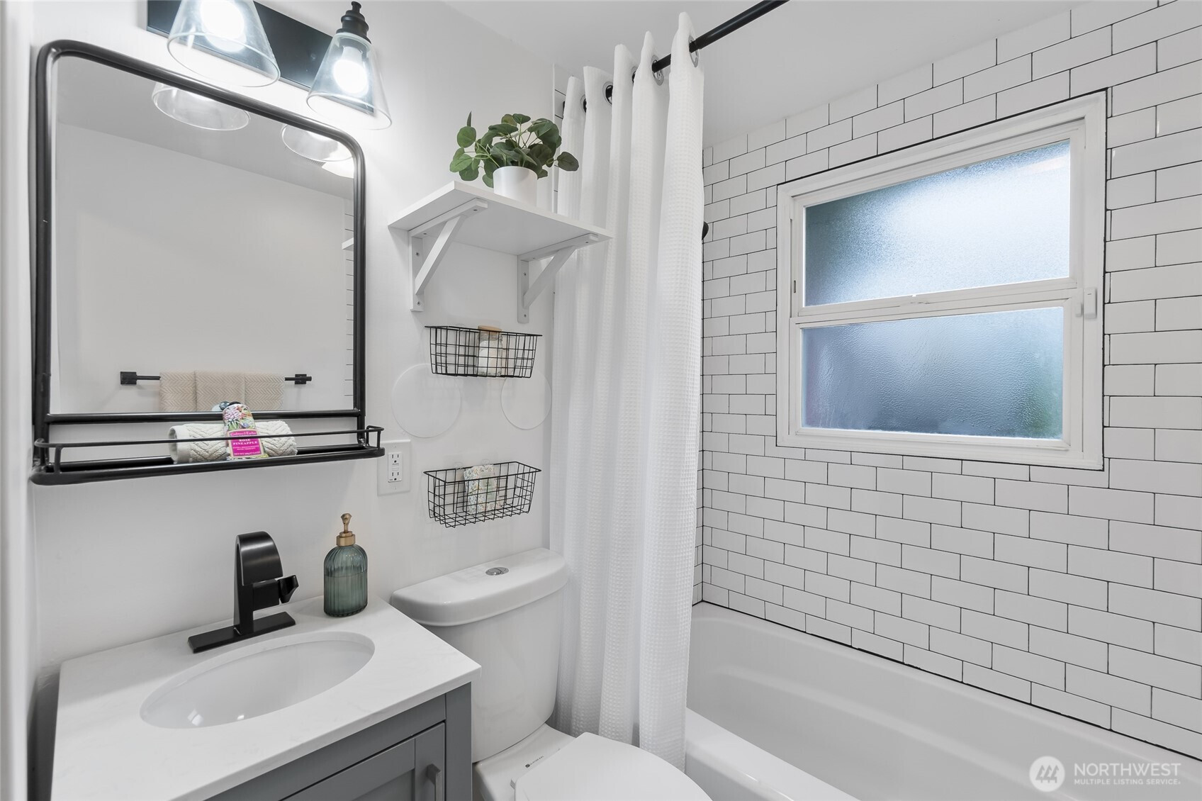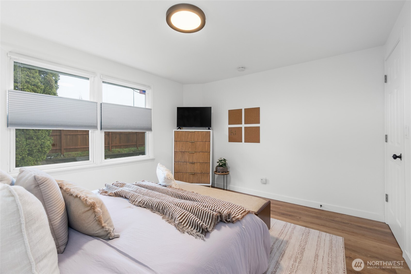 Beautifully updated turnkey 2-bedroom, 1-bath rambler on a spacious flat lot—Great home combining comfort, convenience, and future upside. The bright, inviting interior features a remodeled kitchen with quartz countertops and new appliances, a stylish updated bathroom, cozy breakfast nook, dedicated pantry, and a separate laundry room with washer and dryer. Attached 1-car garage adds everyday ease and storage. Extensive upgrades include a brand-new roof, durable LVP flooring, modern lighting, new heaters, refreshed landscaping, and a newer water heater—offering peace of mind and move-in-ready living. The expansive yard is ideal for entertaining, gardening, or creating your dream outdoor space. Rare opportunity with development potential for a new single-family home or additional units (buyer to verify with city), supported by nearby properties with similar possibilities. Prime location just about 1 mile to Shoreline South/148th Light Rail with direct access to Sea-Tac Airport, University of Washington, and downtown Seattle. Close to parks, shopping, dining, and quick access to Aurora Ave N and I-5. No HOA dues. Shoreline School District. Book your showing today!