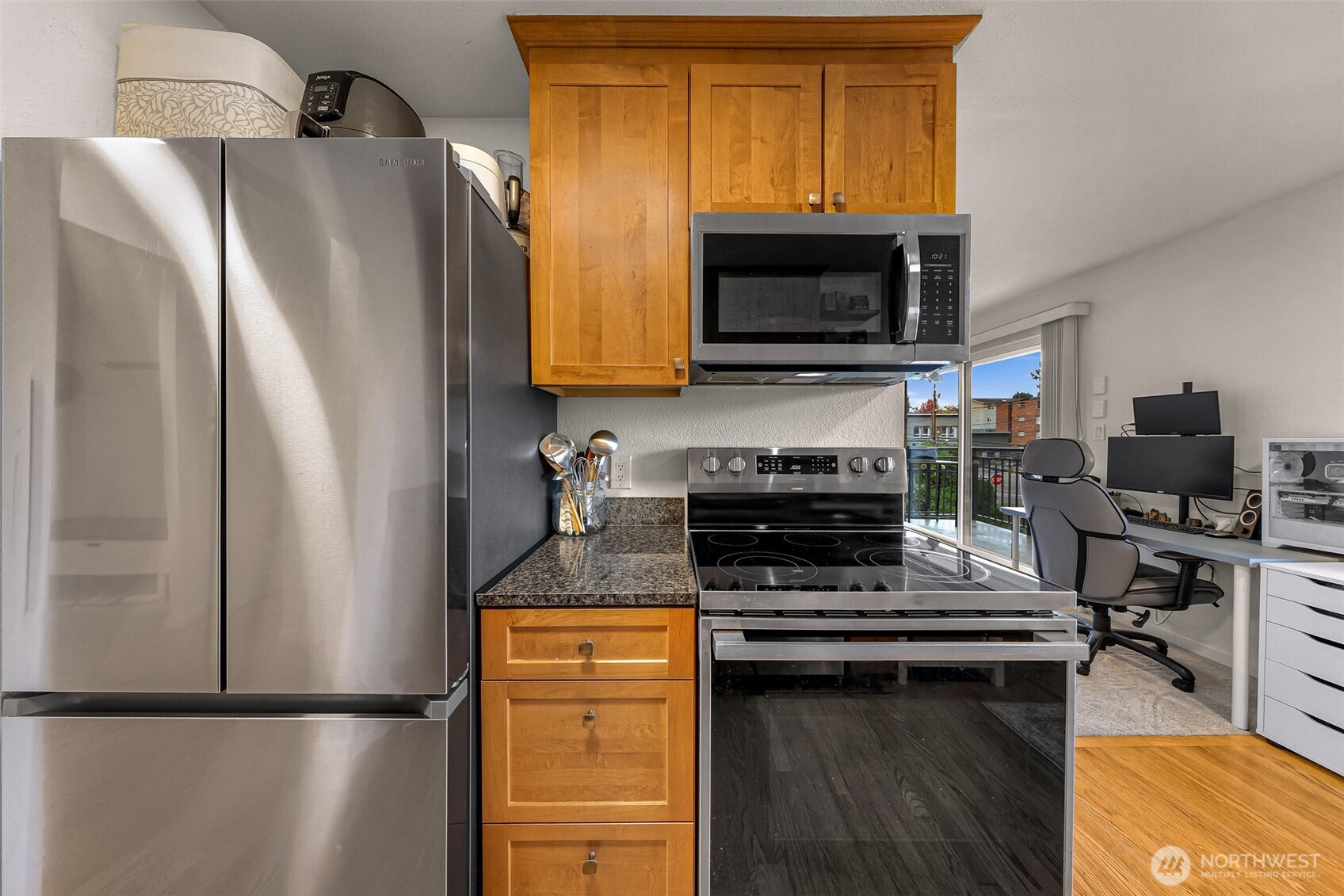 (503) 893-8874Welcome to Phinney Ridge! This quiet 1-bedroom, 1-bath top-floor end unit just steps from Green Lake offers privacy, natural light, and thoughtful updates throughout. Features include LED lighting, newer carpet, blinds, and closets, a stylish kitchen with stainless-steel appliances, a modern bath, dedicated off-street parking, private storage, and bike storage. The open layout extends to a spacious living room and large balcony with panoramic neighborhood views. Building remodels completed in 2018 with new decks, railings, windows, roof, and plumbing. With no rental cap, easy access to local restaurants, shops, PCC Market, and express transit to downtown, this unit is an excellent investment opportunity or perfect for your next home!
