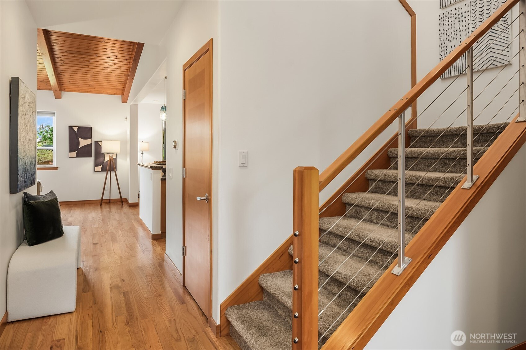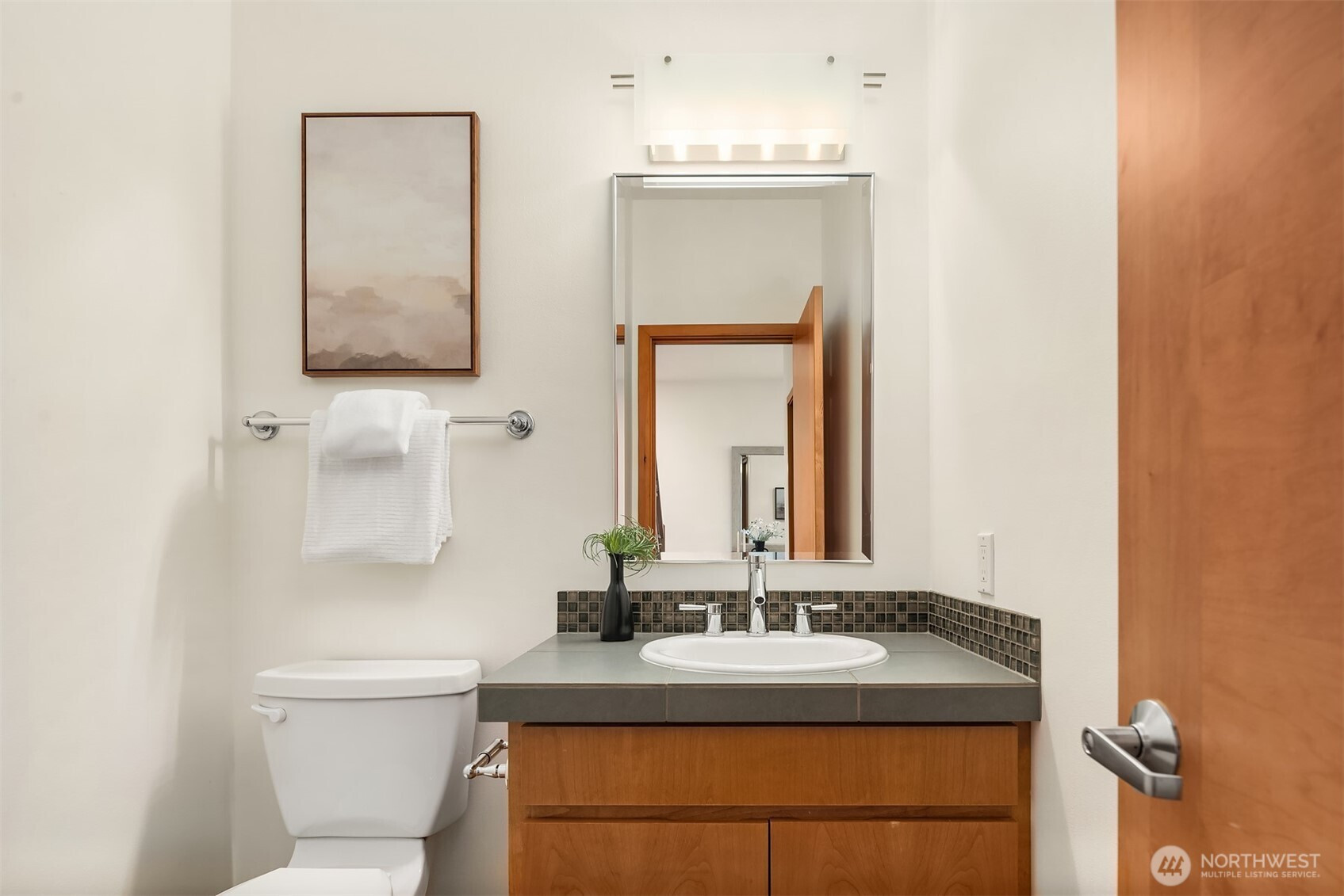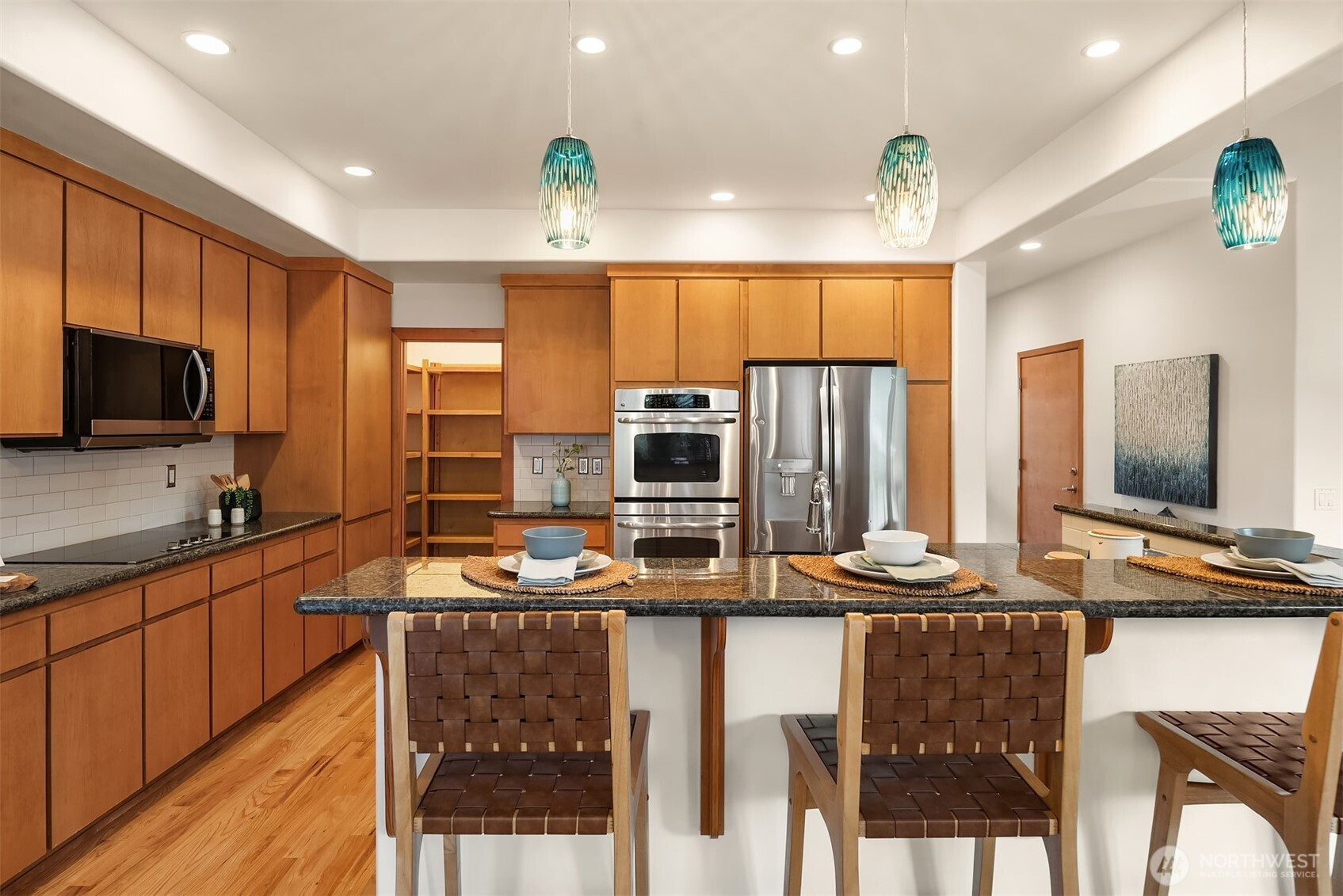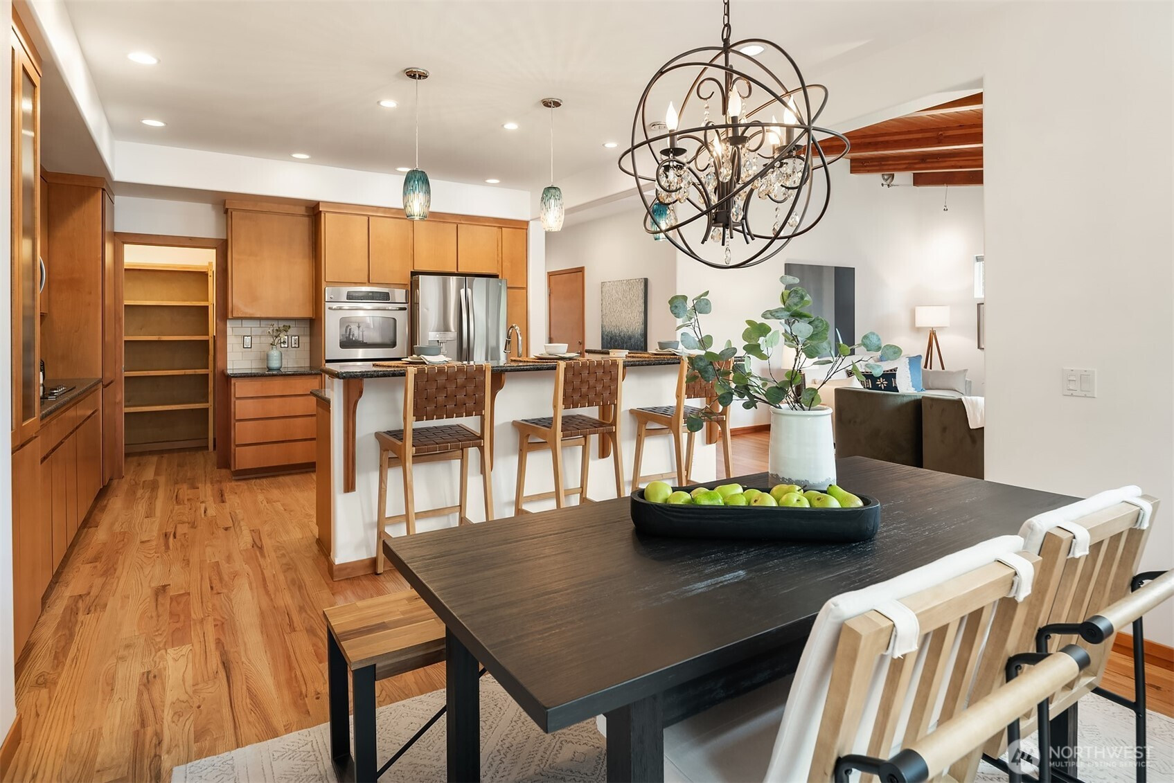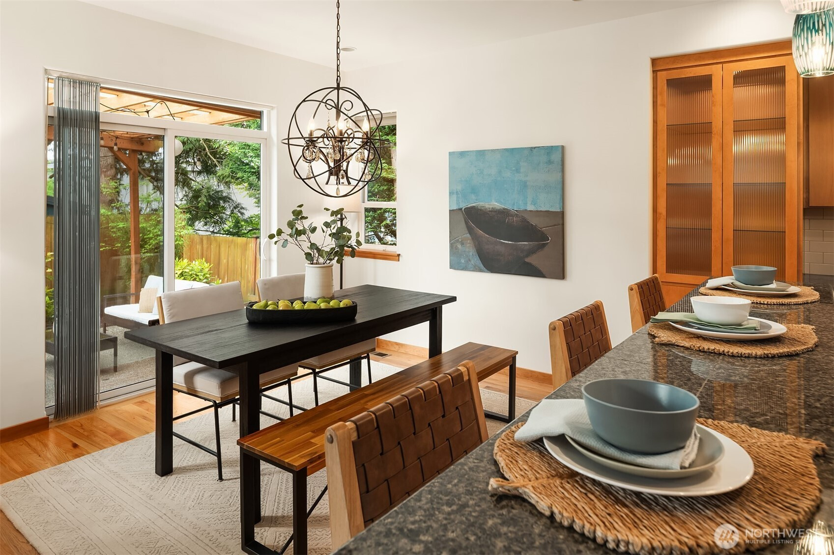Stunning Northwest Contemporary in the heart of Ballard, built in 2010 with exceptional craftsmanship, high-end finishes, and thoughtful energy-efficient design, including a durable TPO roof. The home blends modern comfort with timeless style—exposed beams, rich hardwood flooring, and a dramatic floor-to-ceiling stone fireplace anchor the light-filled living space. The open-concept main level is designed for effortless living and entertaining, featuring a well-appointed kitchen with stainless steel appliances, an induction stove, a dedicated dining area, and seamless indoor-outdoor flow. A main-level bedroom and powder room offer flexible use for guests, work-from-home needs, or additional living space. Upstairs, you’ll find three bedrooms, including a spacious primary suite with a private balcony and territorial views—an ideal spot to enjoy a quiet morning coffee or unwind at the end of the day. Additional highlights include central A/C for year-round comfort, a convenient pantry, and an attached two-car garage. The serene backyard patio is designed for low-maintenance living, perfect for relaxing or hosting. Ideally located with close proximity to top-rated West Woodland Elementary and just minutes from Ballard’s vibrant shops, dining, and everyday amenities. Well-built, well-located, and move-in ready.