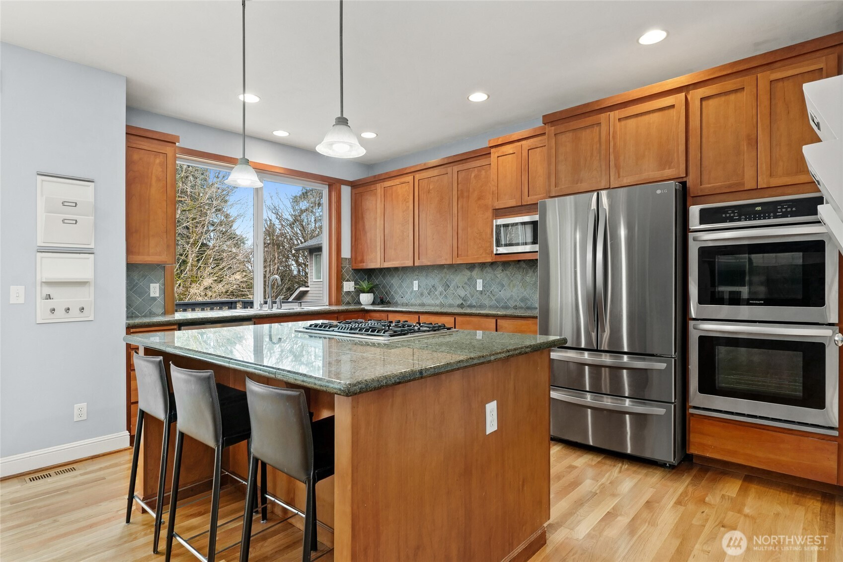 Comfort, space, and privacy come together in this home on a quiet cul-de-sac that backs to a peaceful greenbelt. The main floor opens to a large kitchen and living area with a warm, welcoming hearth ideal for gathering. A brand-new deck expands outdoor living, while the finished basement offers flexible space for guests, work, or play. Upstairs, the spacious primary suite features a five-piece ensuite bath and convenient upstairs laundry room. Generous walk-in closets provide ample storage throughout the house. Brand new hot water tank and furnace installed February 2026. Surrounded by quiet streets, natural beauty, and highly regarded Northshore schools, this home offers an exceptionally desirable place to live.