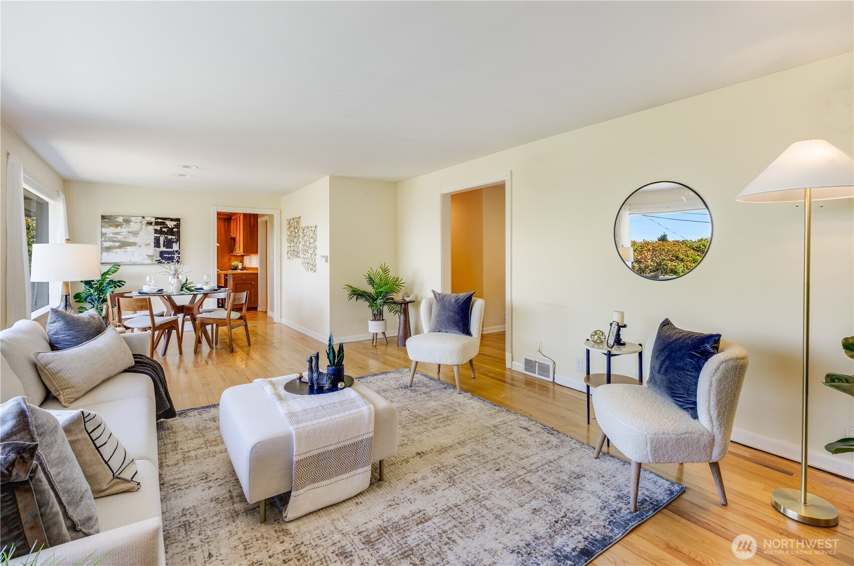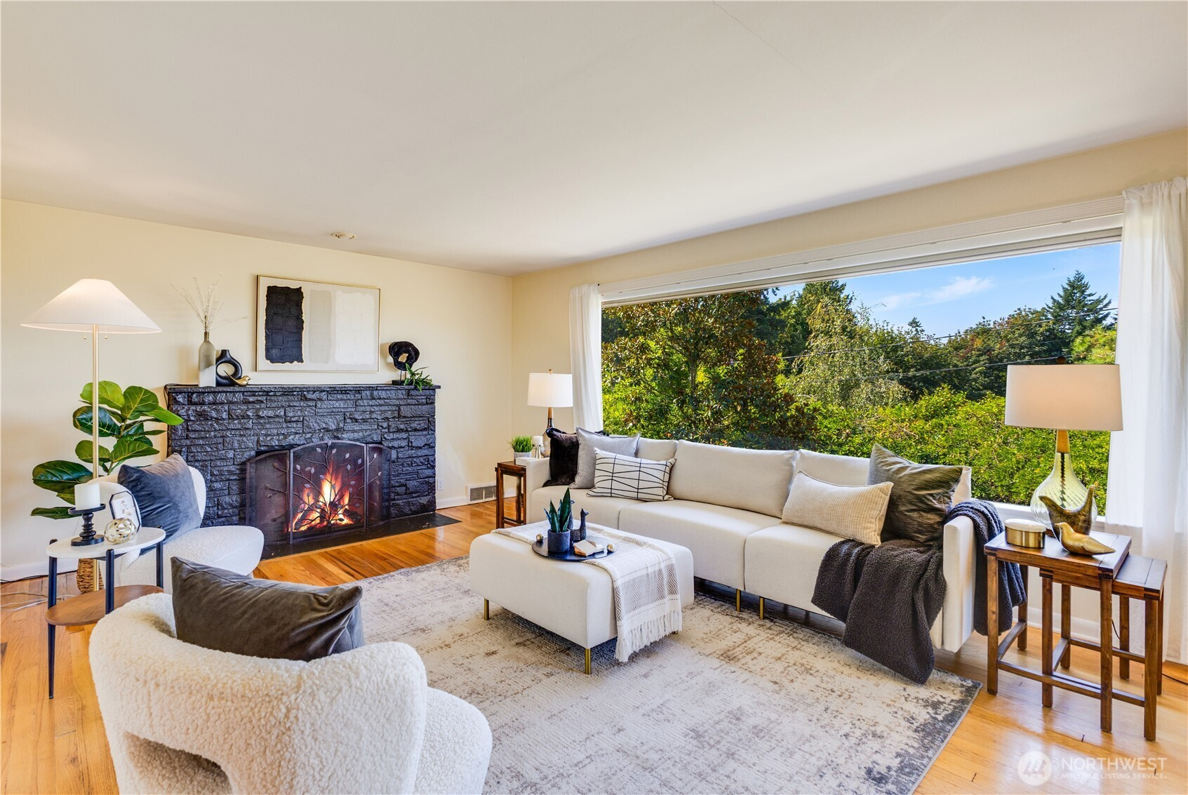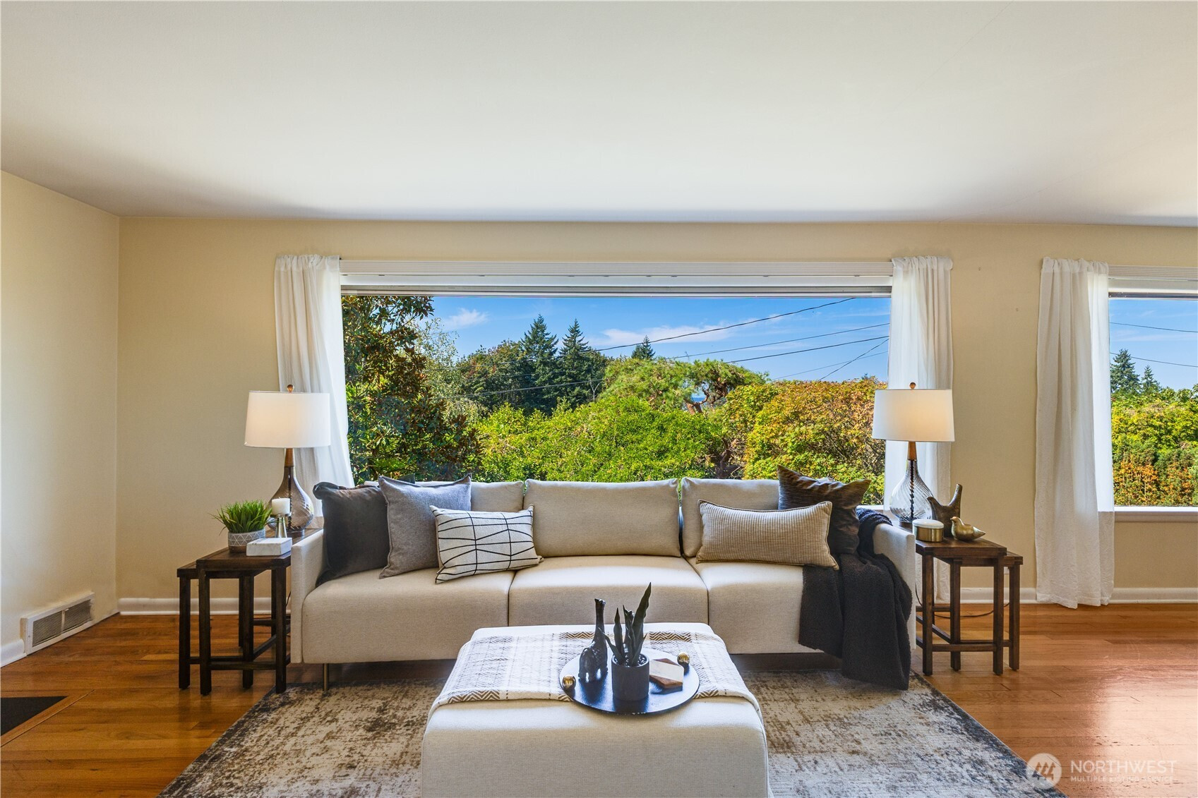 Rare opportunity! The only home in coveted Fauntlee Hills with a view of the Sound and Olympics under $1M. This sought-after community offers the best of West Seattle. Sea breezes. Epic sunsets. Fabulous parks, waterfront walks, ferry rides, and local eateries. It’s easy to fall in love with this generous brick home, with hardwoods, abundant natural light, lovely views, and flexible spaces for the urban lifestyle. The backyard is a peaceful setting, surrounded by greenery for year-round privacy. Bring design ideas to modernize and upgrade to your taste, creating equity and value. Some repairs are needed; inspection reports available. See add’l photos in the virtual tour links. Renovated comps range from $1.4M to $2.2M. Come make it yours!
